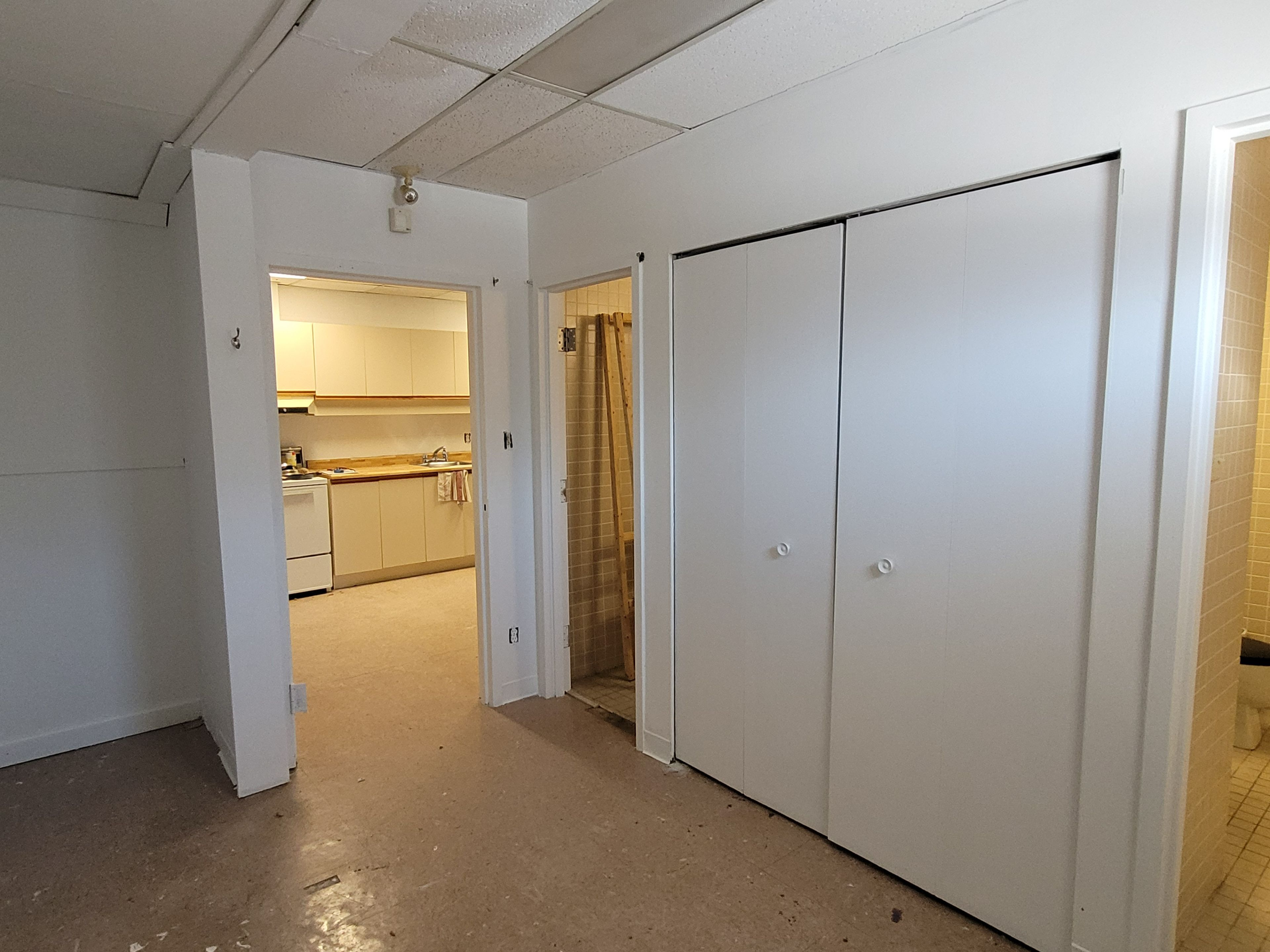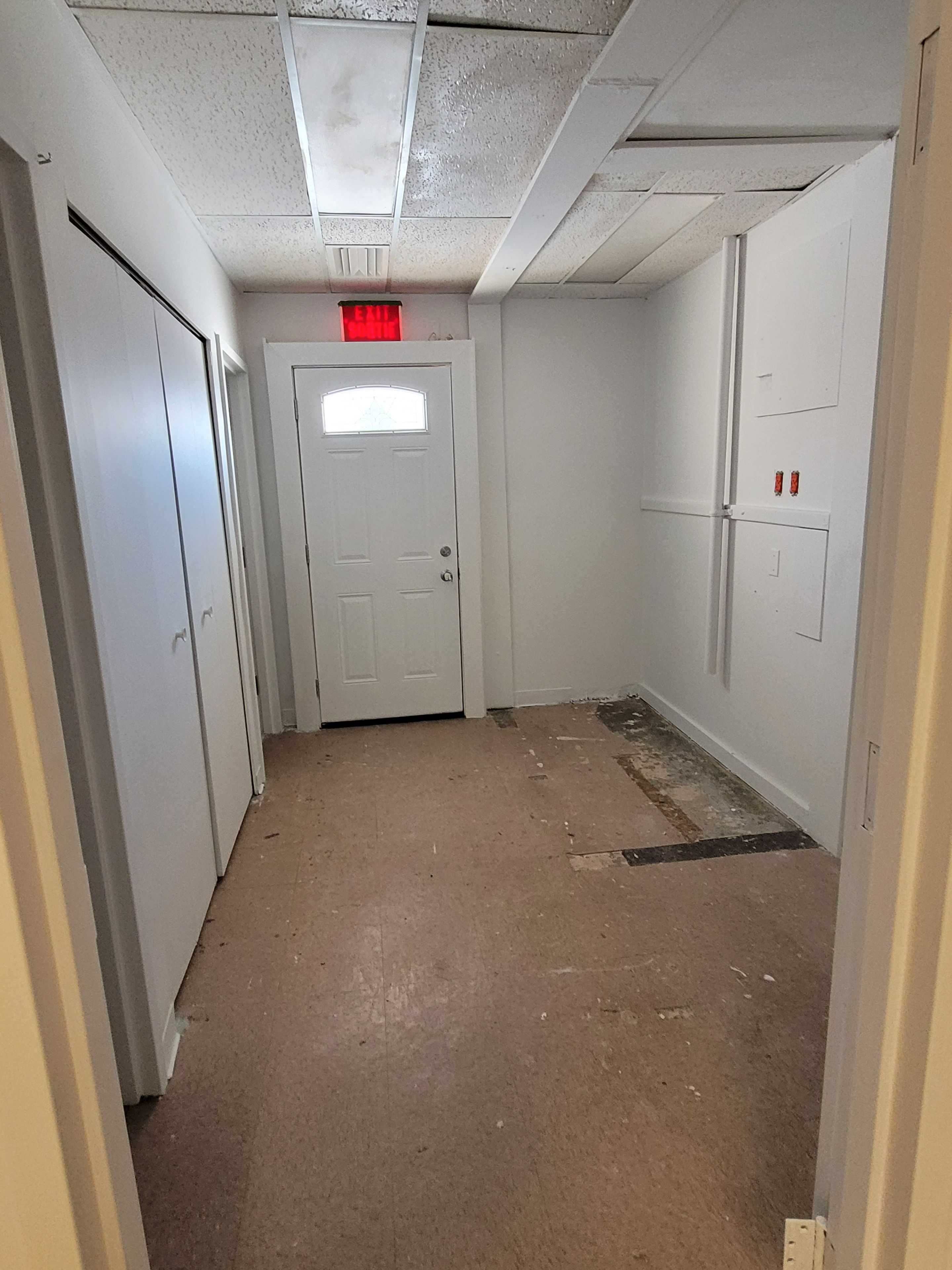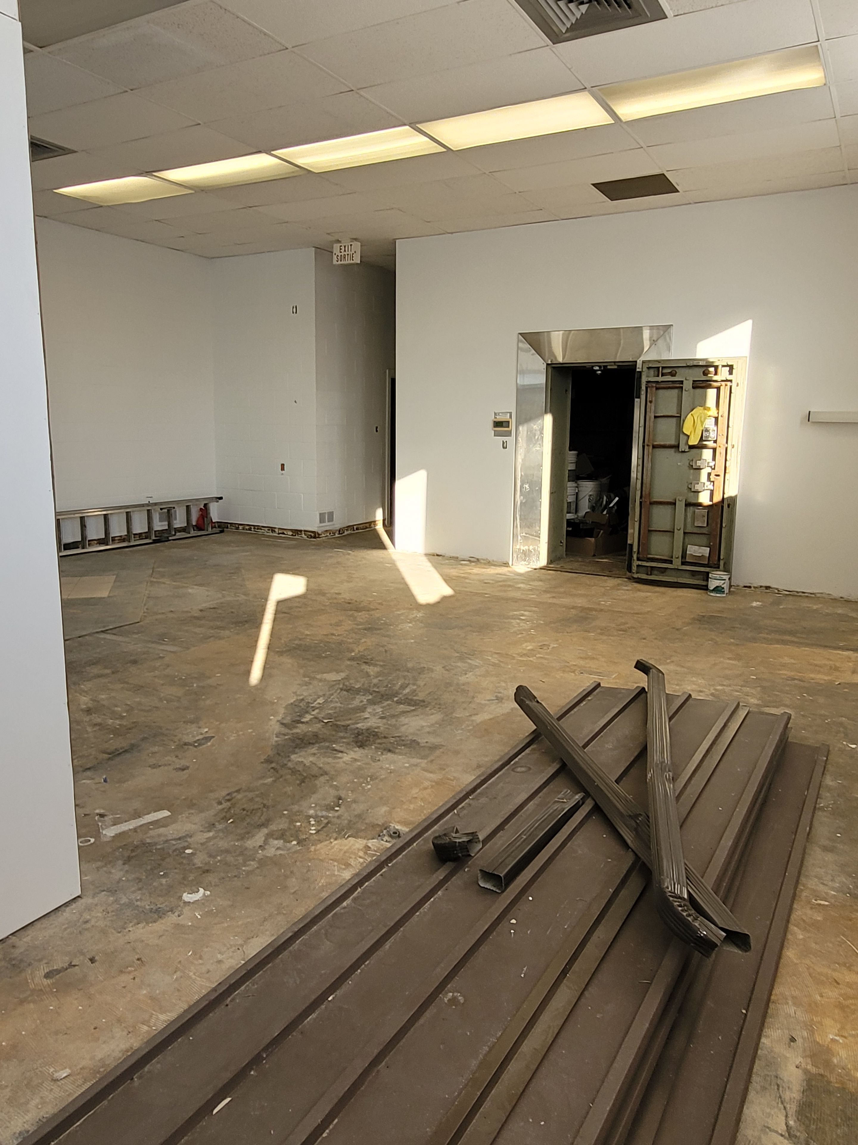 A rare commercial space is now available for lease in the center of bourget. What was once the national bank, this space is available for mixed use commercial rental. This could be a business office space or for a variety of other uses. It is being rented in an ''as is'' condition where the tenant can finish the space (mainly the floor) as they wish, with consultation with the landlord. The large windows let in a lot of natural light. The large vault can be used as a room or for storage. The 2 smaller vaults, located in the back hall and kitchen area are great for storage. All building materials currently located mainly in the vaults, will be removed and the area cleaned prior to occupancy. The total space is approximately 2500 sq ft and the useable area approximately 2200 sq ft. The parking area is located on the north side of the building with parking for 8. This location is a high traffic area, good for business.