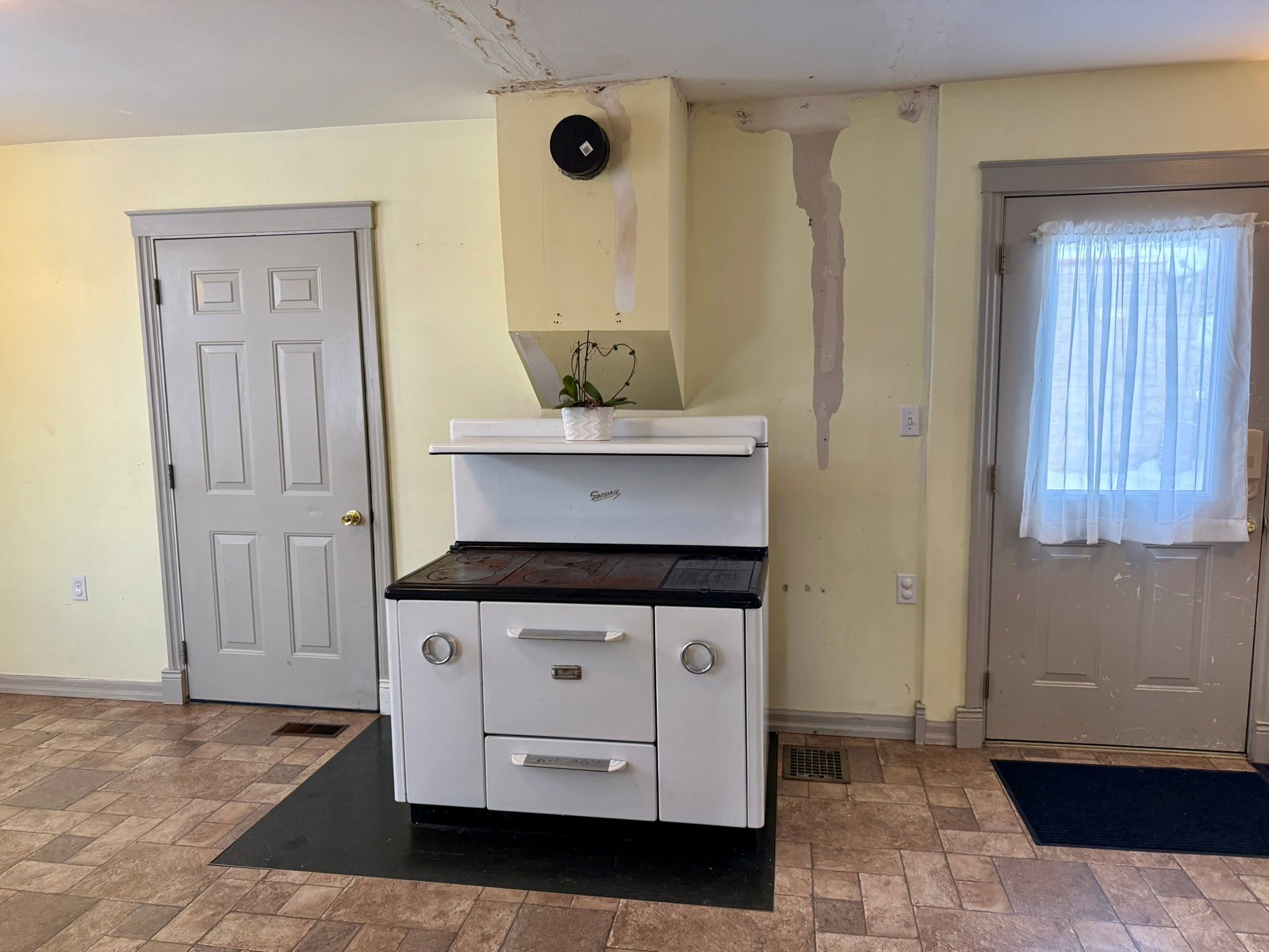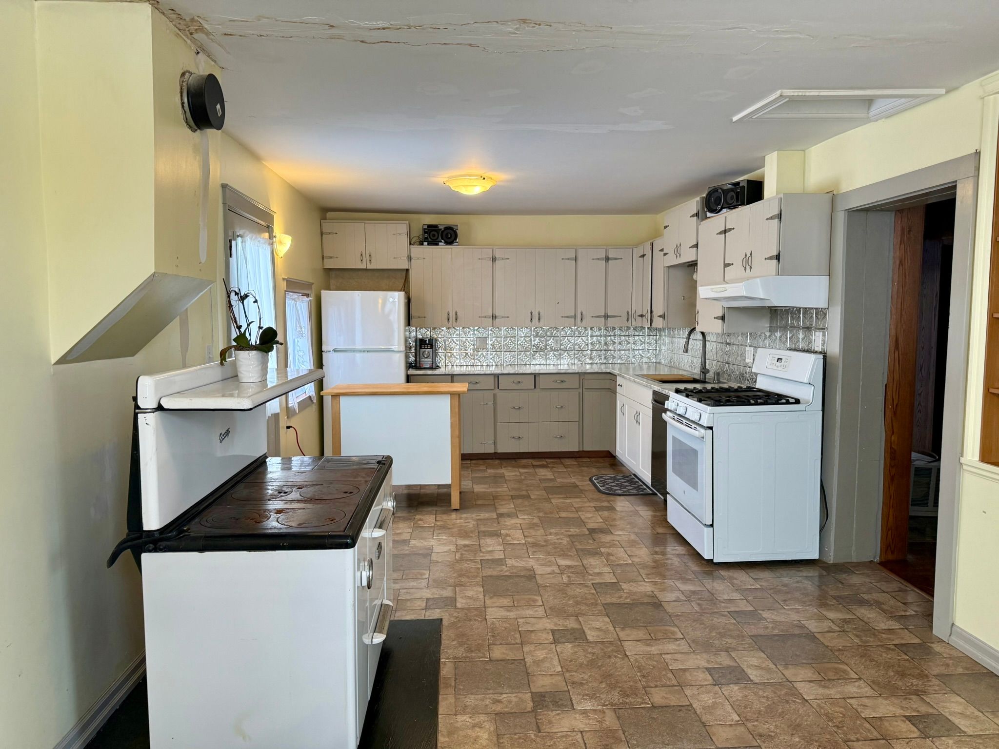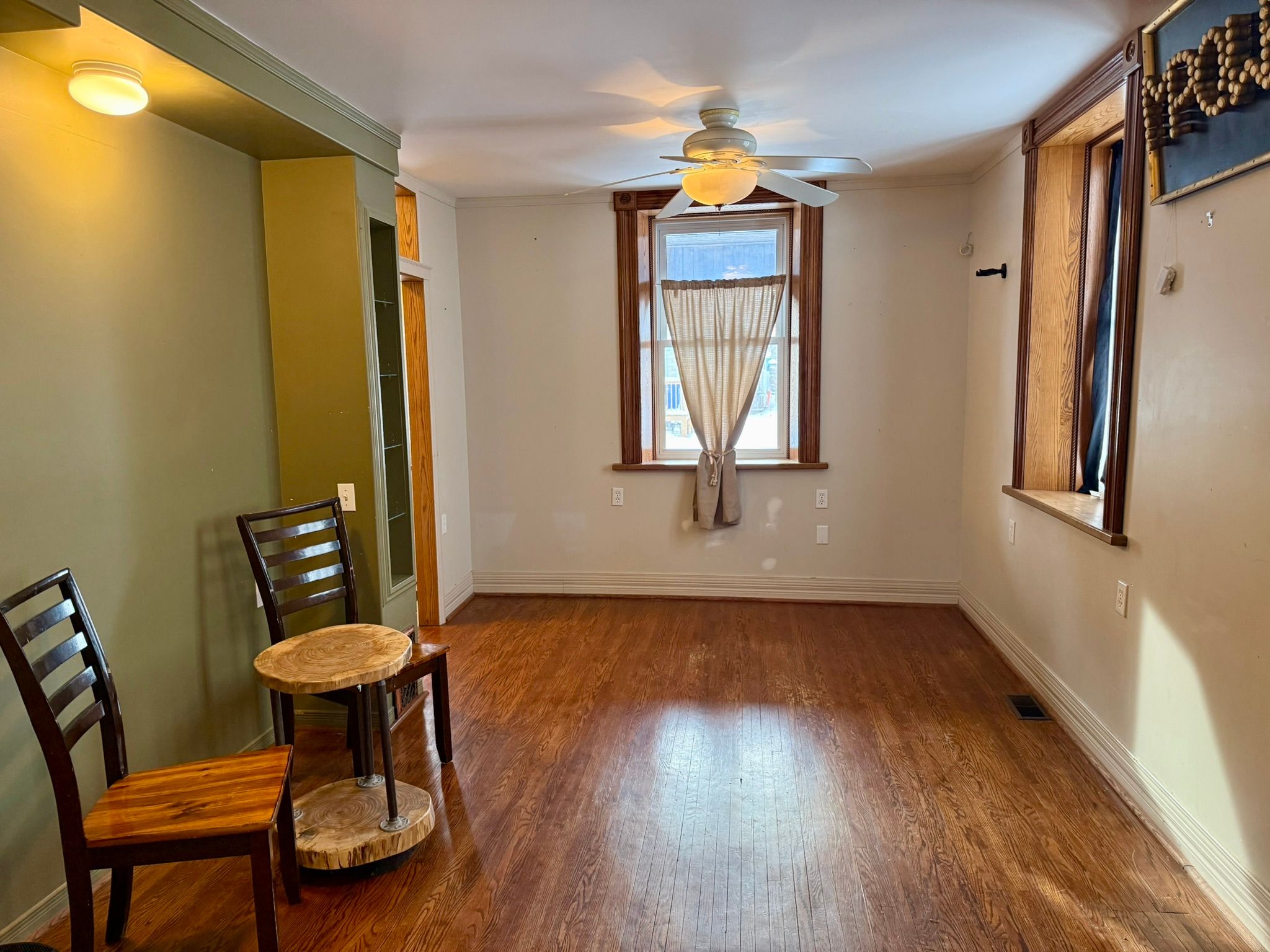 This 1. 5 storey home offers 3 bedrooms, and a 4pc bathroom on the upper level. Main level has a large eat in kitchen, spacious formal dining room and formal living room. Bonus, the rear section of the home that measures 10'6" x 10'5" irreg. With a 2pc bath is zoned commercial. This allows for an in house business or rent it out to generate additional income. Home has a full basement which houses the laundry and 1pc bath. This area offers plenty of storage space. Forced air gas heat and central vac. Cook stove in kitchen is for decorative use only. The exposed brick wall in the living room and dining room, add character, along with the beautiful wood trim and floors. Seller has not lived in the home for some time so will not give any guarantees or warranties.