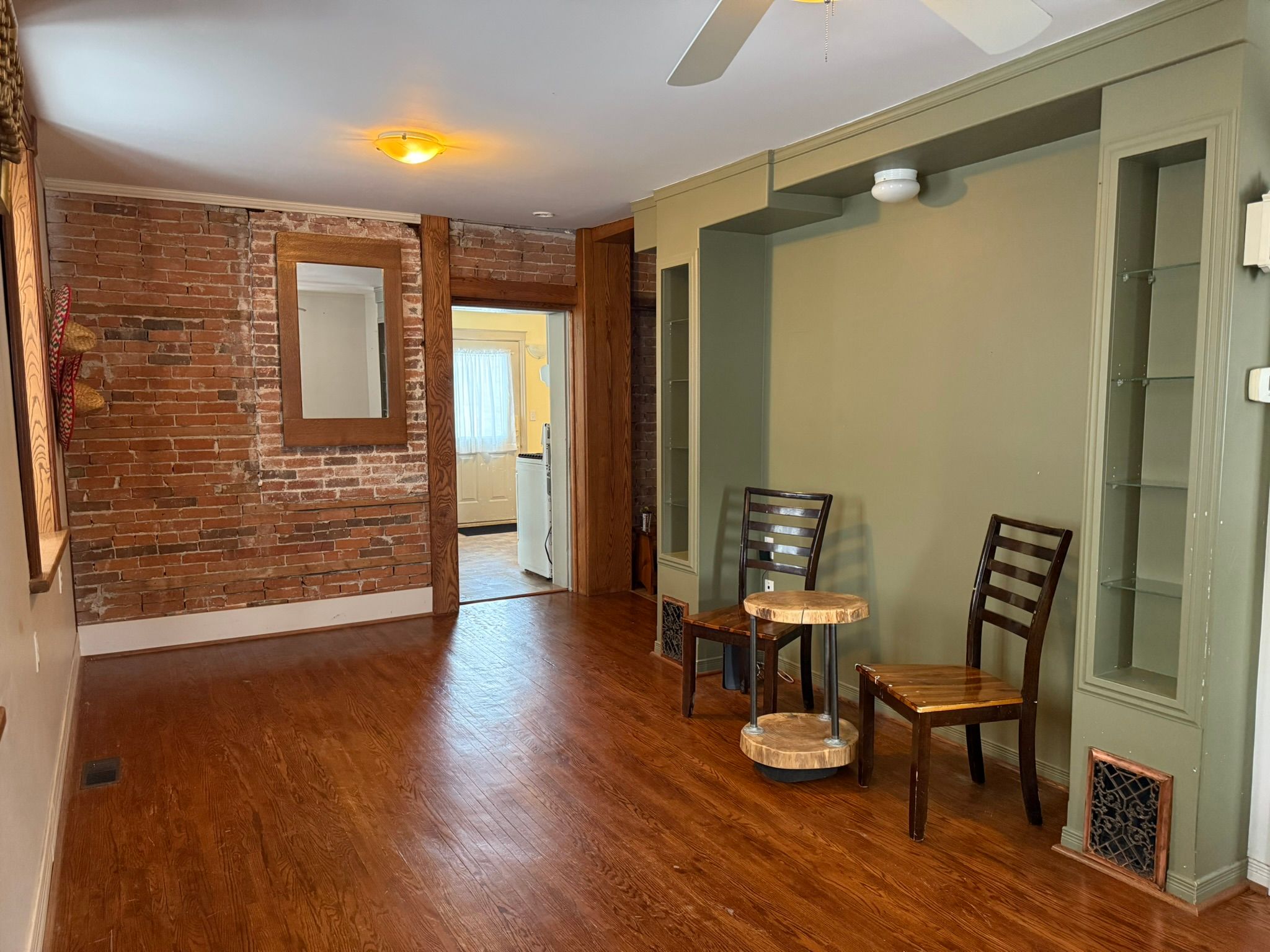 • Character features like exposed brick walls and beautiful wood trim throughout.