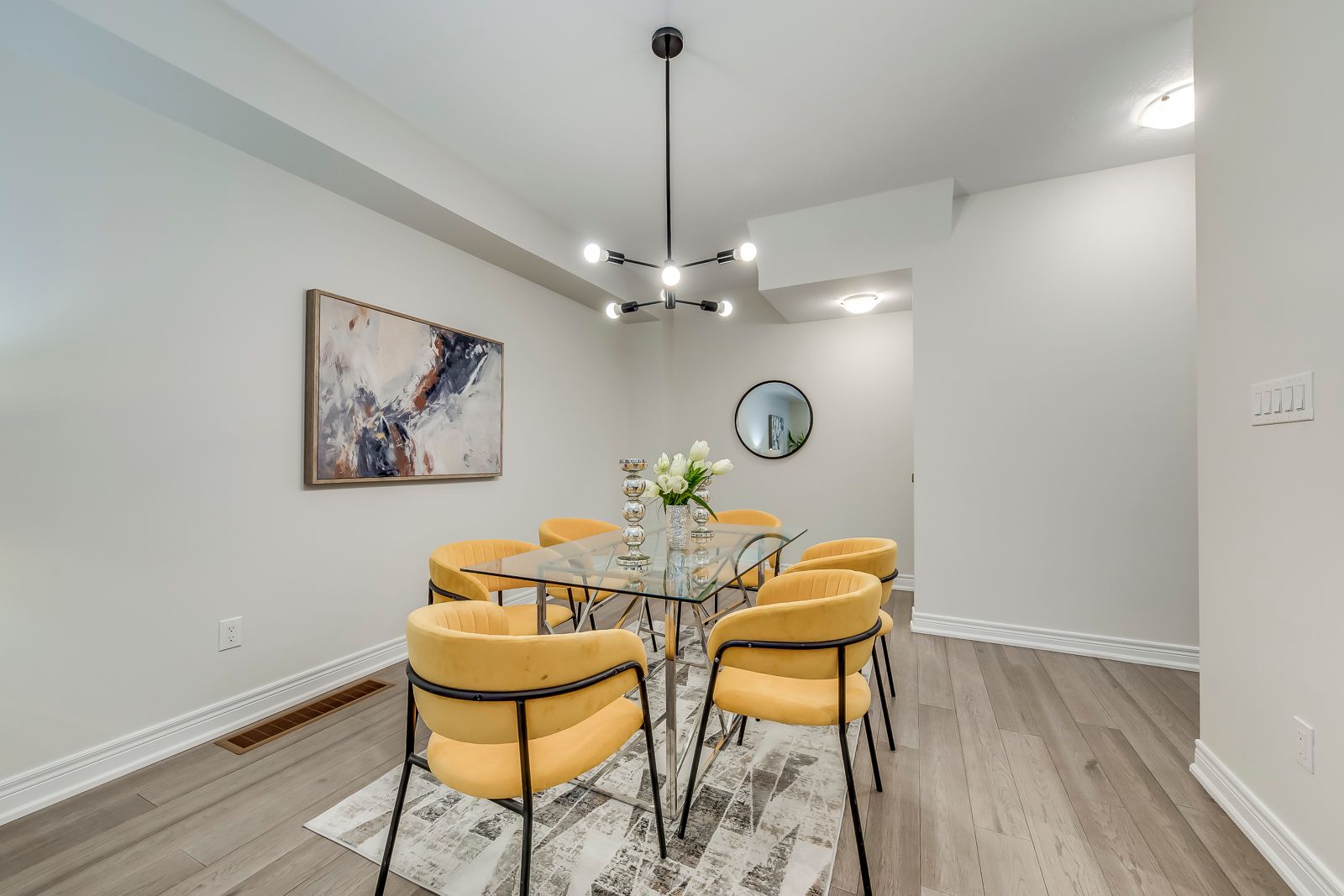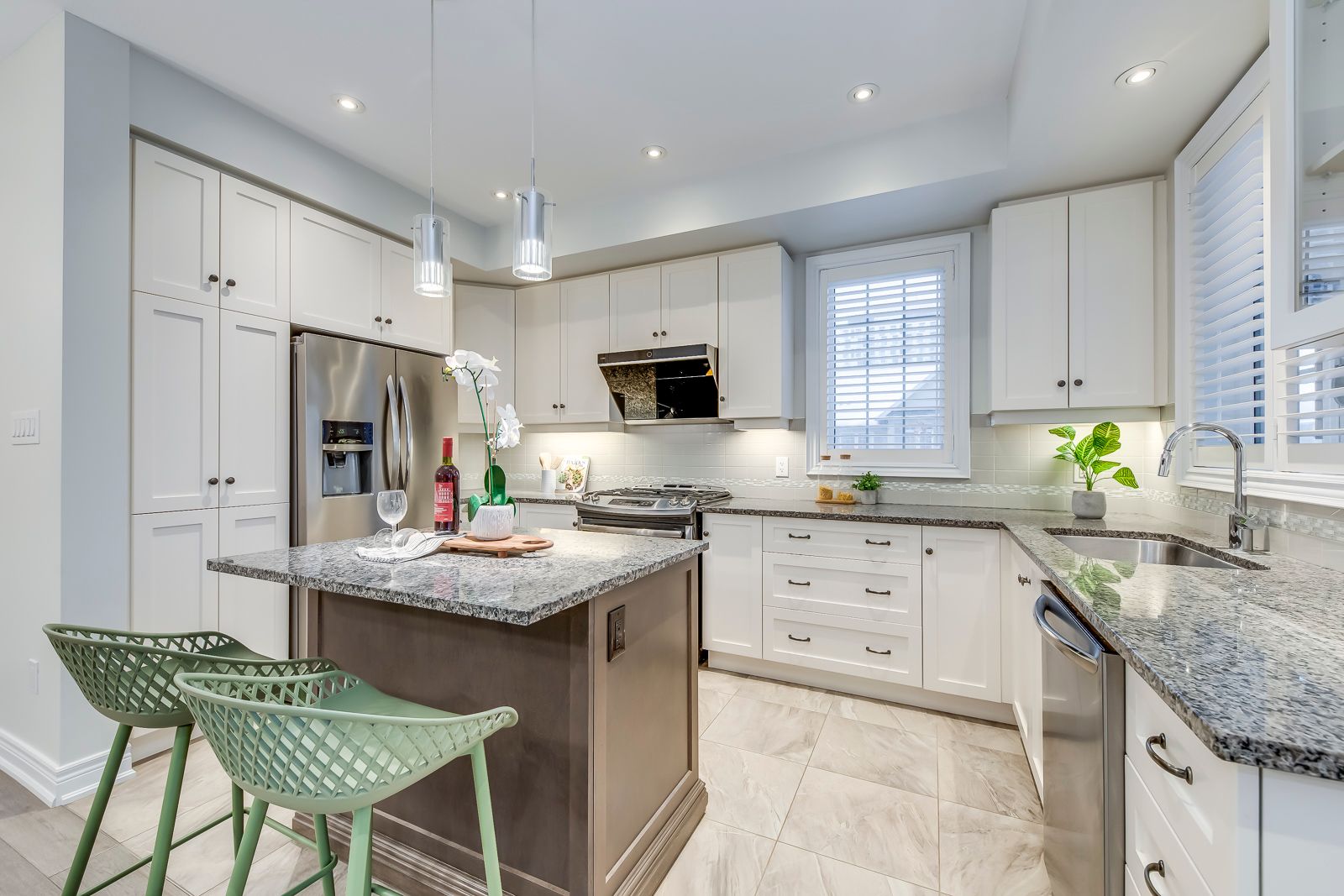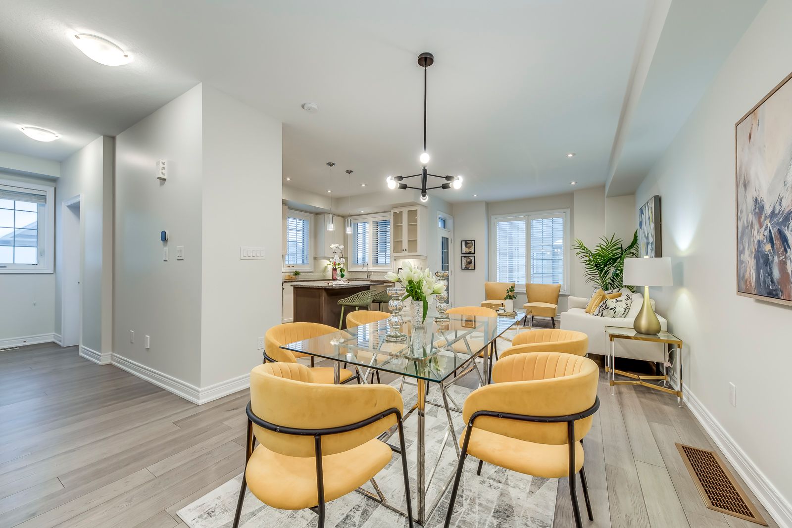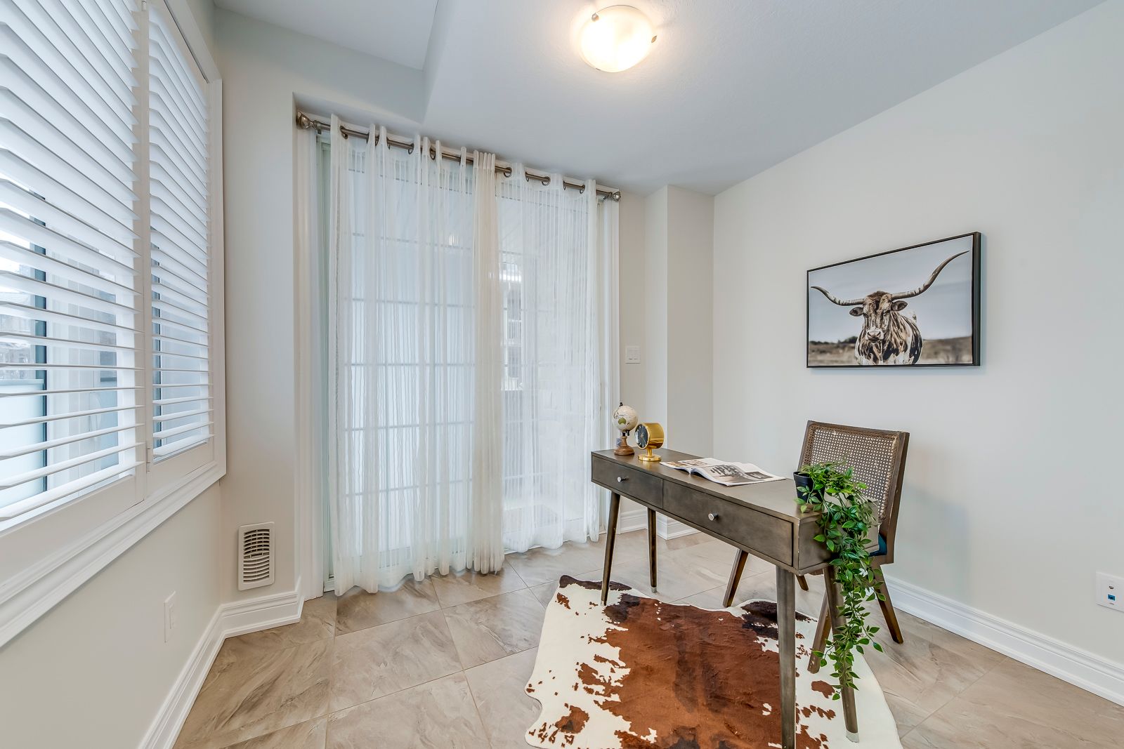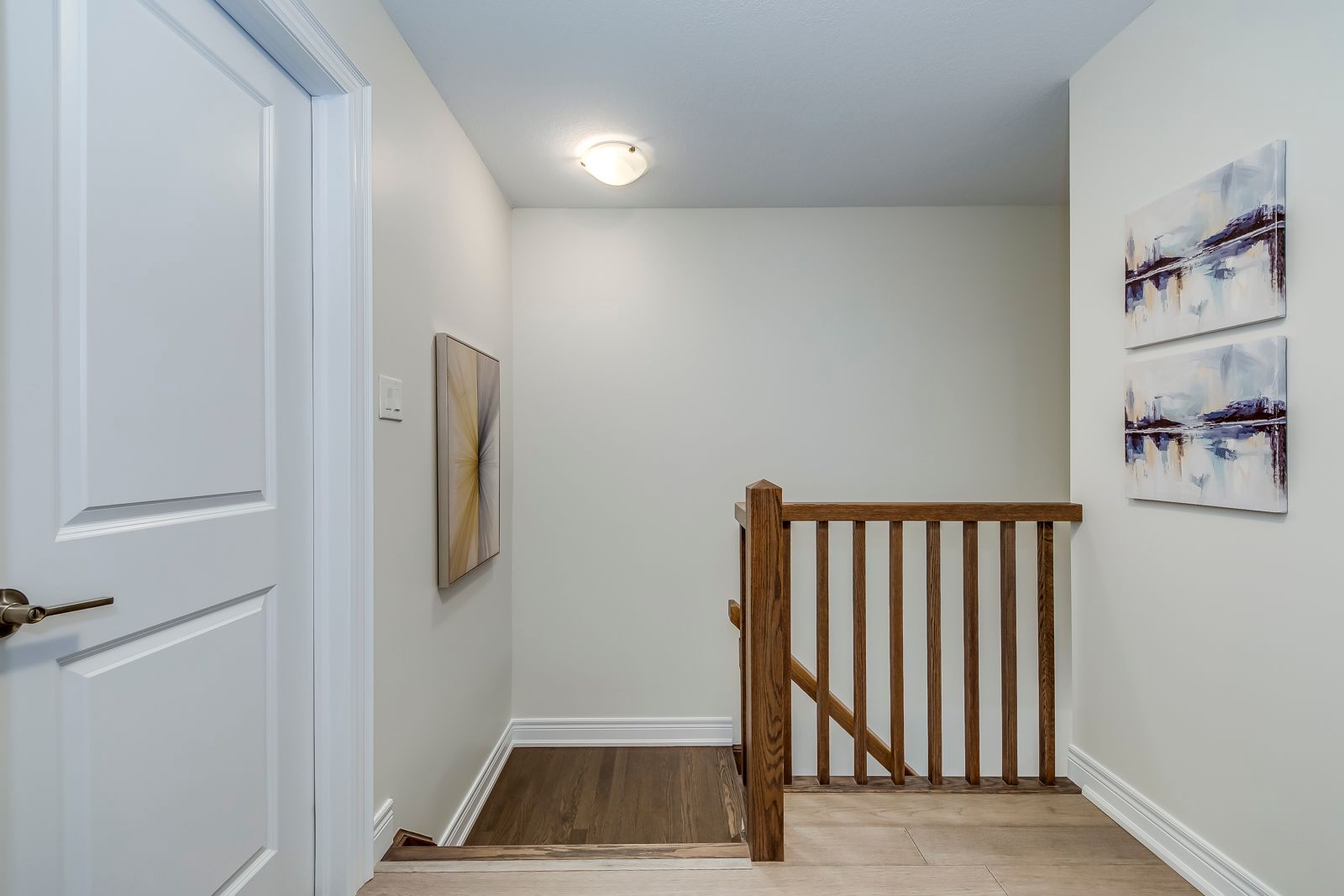 5 elite picks! Here are 5 reasons to make this home your own: 1. Spacious, well-maintained 3 bedroom + den/office & 2 bath end unit townhouse in thriving joshua meadows location with great space on 3 above-ground levels! 2. Stunning kitchen boasting centre island, ample cabinet space, granite countertops, custom backsplash & stainless steel appliances. 3. Spacious open concept dining & living area with pot lights, large window & w/o to cozy enclosed balcony. 4. 3 bedrooms & upgraded 5pc bath on 3rd level, with primary bedroom featuring w/i closet. 5. Upgraded enclosed portico entry to ground level with convenient access to garage, plus lovely office/den (or 4th bedroom) with large window & w/o to covered porch. All this & more! Convenient main level laundry & 2pc powder room complete the main (2nd) level. Smooth 9' ceilings thru main level. Engineered hdwd flooring ('19) thruout. Freshly painted & move in ready! Updated led lights '26, new sod '25, new concrete driveway & walkway '25, enclosed porch & balcony '22, california shutters '21, aluminum railings '20. Fantastic location in thriving joshua meadows neighbourhood just minutes from parks & trails, top-rated schools, hospital & oakville's thriving uptown core with shopping, restaurants & many amenities!