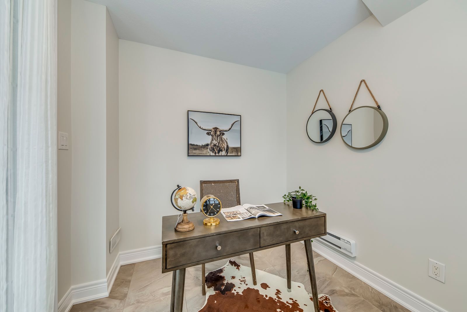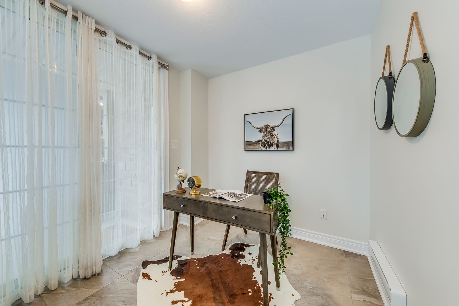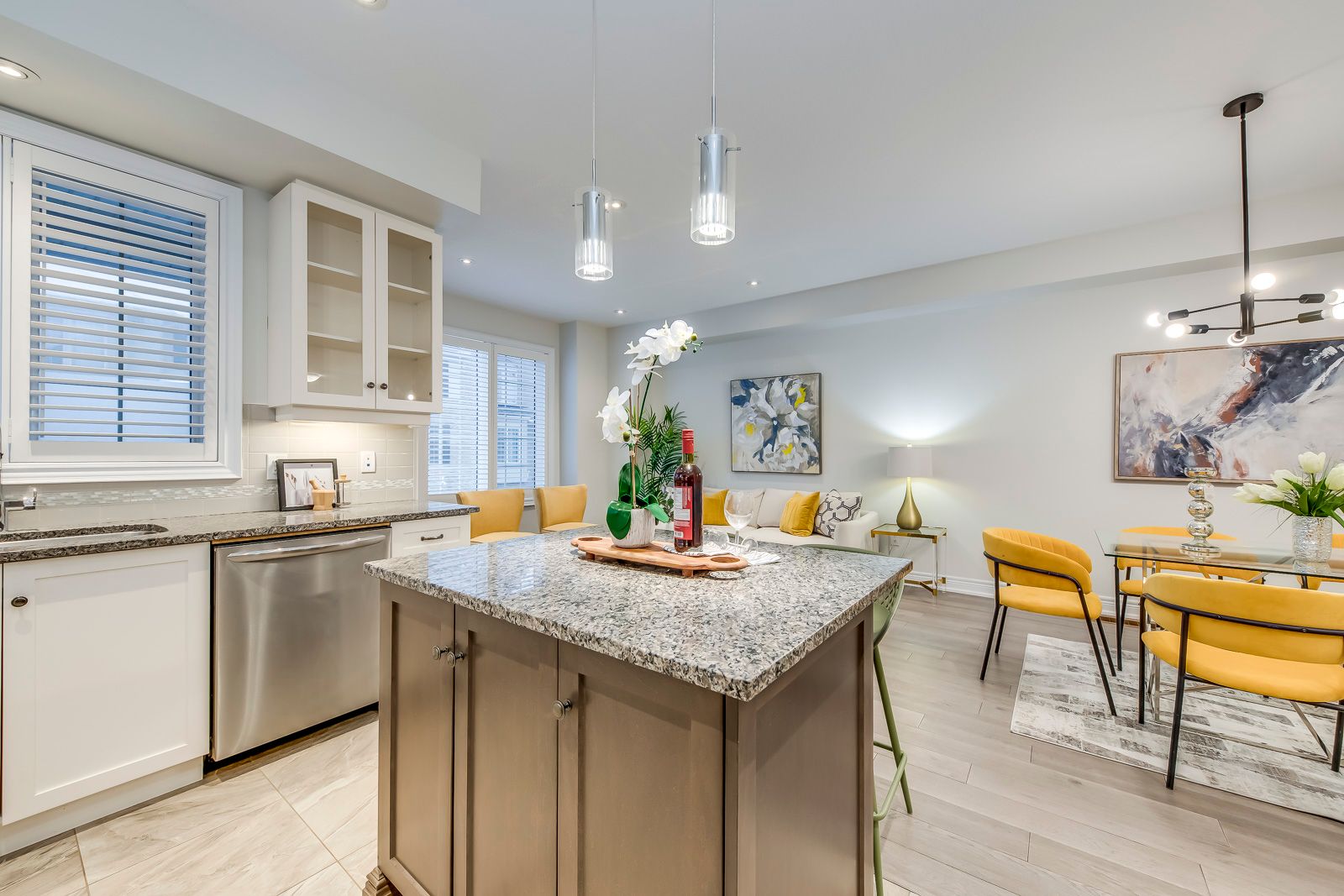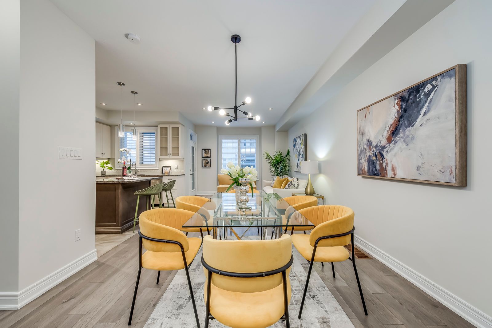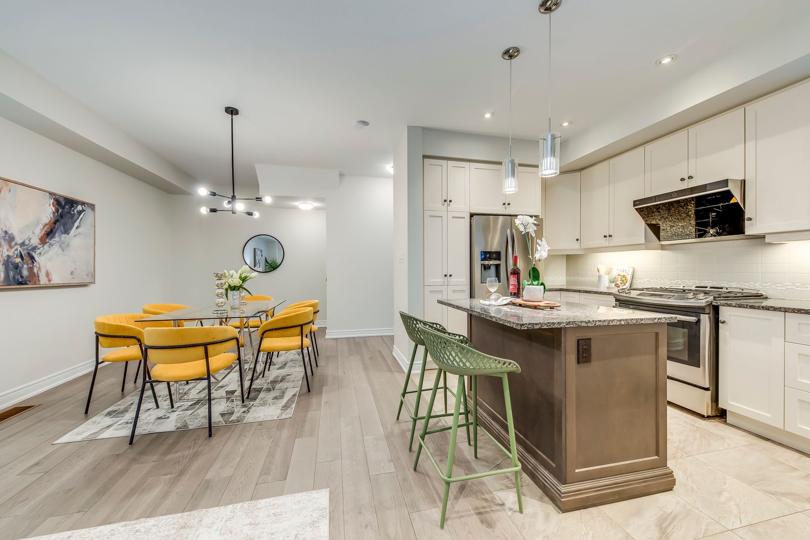 5 elite picks! Here are 5 reasons to make this home your own: 1. Spacious, well-maintained 3 bedroom + den/office & 2 bath end unit townhouse in thriving joshua meadows location with great space on 3 above-ground levels! 2. Stunning kitchen boasting centre island, ample cabinet space, granite countertops, custom backsplash & stainless steel appliances. 3. Spacious open concept dining & living area with pot lights, large window & w/o to cozy enclosed balcony. 4. 3 bedrooms & upgraded 5pc bath on 3rd level, with primary bedroom featuring w/i closet. 5. Upgraded enclosed portico entry to ground level with convenient access to garage, plus lovely office/den (or 4th bedroom) with large window & w/o to covered porch. All this & more! Convenient main level laundry & 2pc powder room complete the main (2nd) level. Smooth 9' ceilings thru main level. Engineered hdwd flooring ('19) thruout. Freshly painted & move in ready! Updated led lights '26, new sod '25, new concrete driveway & walkway '25, enclosed porch & balcony '22, california shutters '21, aluminum railings '20. Fantastic location in thriving joshua meadows neighbourhood just minutes from parks & trails, top-rated schools, hospital & oakville's thriving uptown core with shopping, restaurants & many amenities!