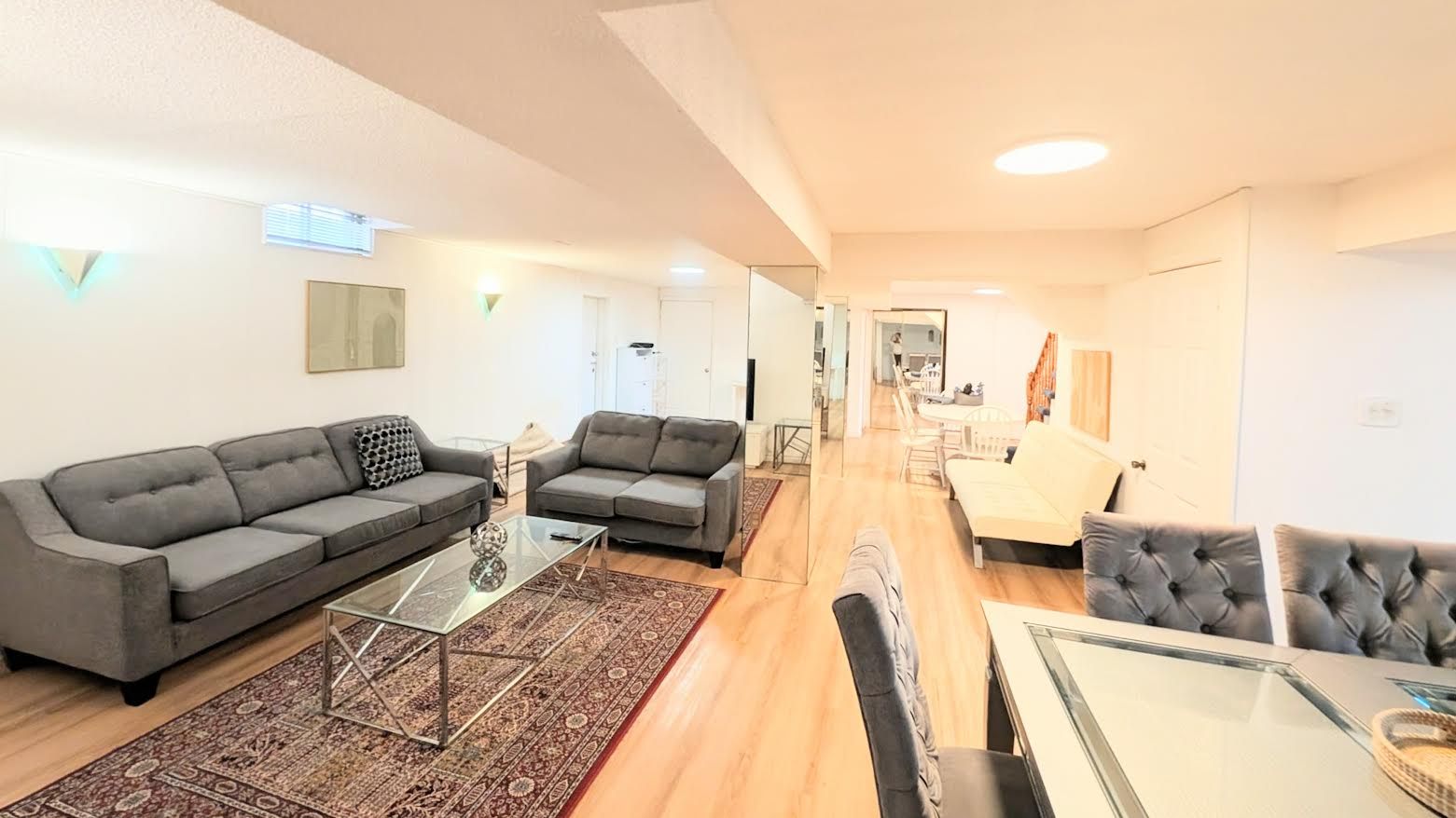 Oversized furnished 1-bedroom basement suite! The space:experience incredible scale in this massive 1-bedroom basement apartment. Key features; privacy: private separate entrance. Laundry: convenient ensuite laundry (not shared!) parking: includes one dedicated parking spot on the driveway. Prime location:ideally situated within walking distance to local high schools and primary schools. You are seconds away from major shopping centers, restaurants, and all essential amenities, making this the perfect hub for convenience. Lease details: tenant is responsible for 1/3 of total household utilities. No smoking/no pets preferred. Available immediately. Fully furnished.