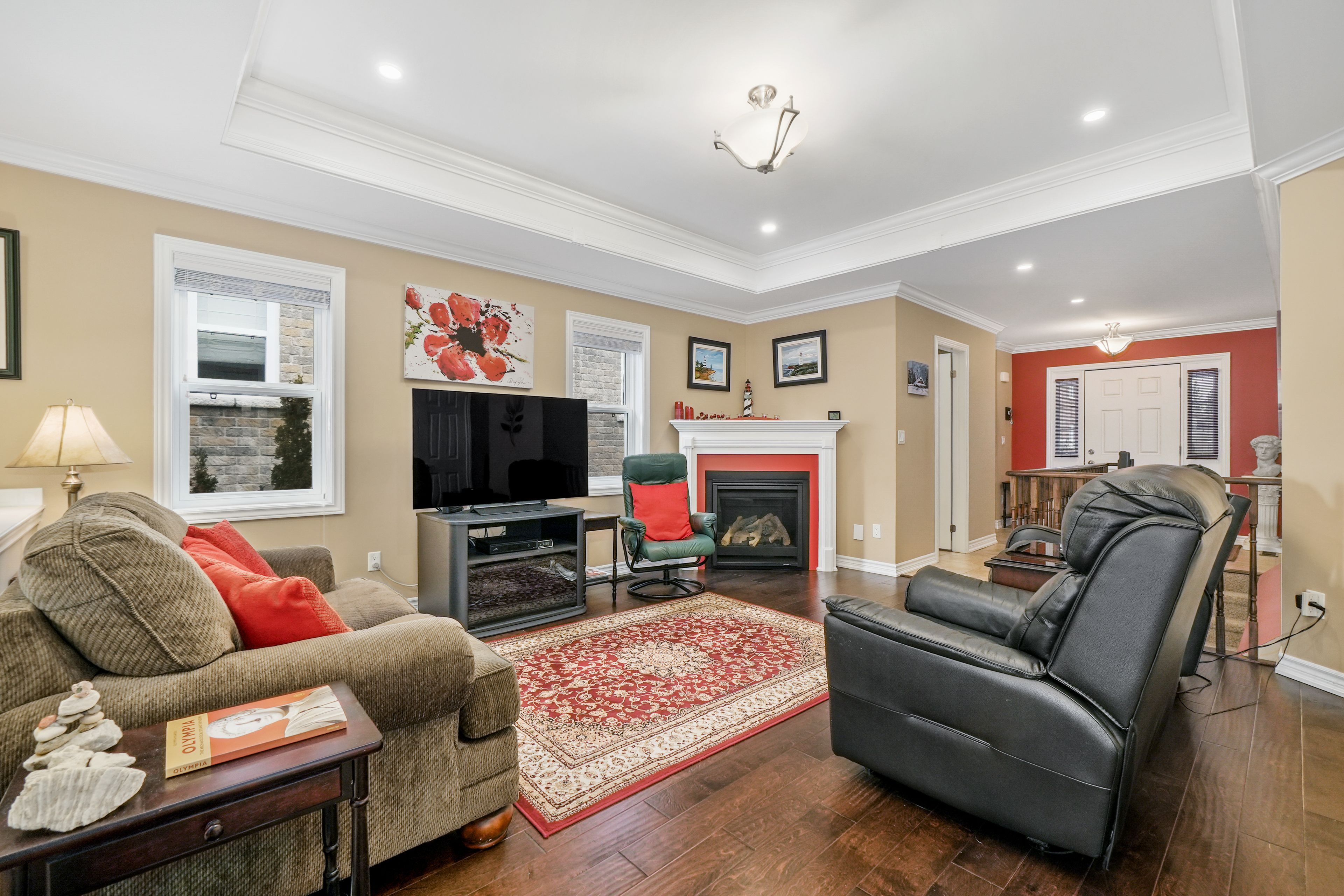 Huge value, pristinely kept, and perfectly located! 378 lonsberry drive offers the best of cobourg's east village: a low-maintenance lifestyle in a home that feels brand new. Built by local award-winning builder stalwood homes, this classic bungalow is tucked away on a quiet street just minutes from all the amenities cobourg has to offer. The curb appeal starts at the delightful covered porch with views of distant pine trees and professional landscaping. Inside, the home is designed for easy and refined one-level living. The main living area features beautiful hardwood flooring, a gas fireplace, and an elegant coffered ceiling that brings a sense of warmth and tradition to the space. For those who love to host, the formal dining room offers plenty of room for a large table and your favourite art pieces. The kitchen is both beautiful and practical, finished with statement granite countertops and a suite of like-new appliances. The pride of ownership continues outside to the back deck and patio, overlooking a private, low-maintenance backyard. Downstairs, the finished basement adds significant living space with a large rec room, two additional bedrooms, and a full 4-piecebathroom-ideal for guests or a hobby setup. Key highlights include an oversized primary bedroom with dual closets, a double car garage with built-in shelving, an owned water softener and filtration system, and a spacious entryway with plenty of storage. It is rare to find a home this meticulously cared for in such a prime location.