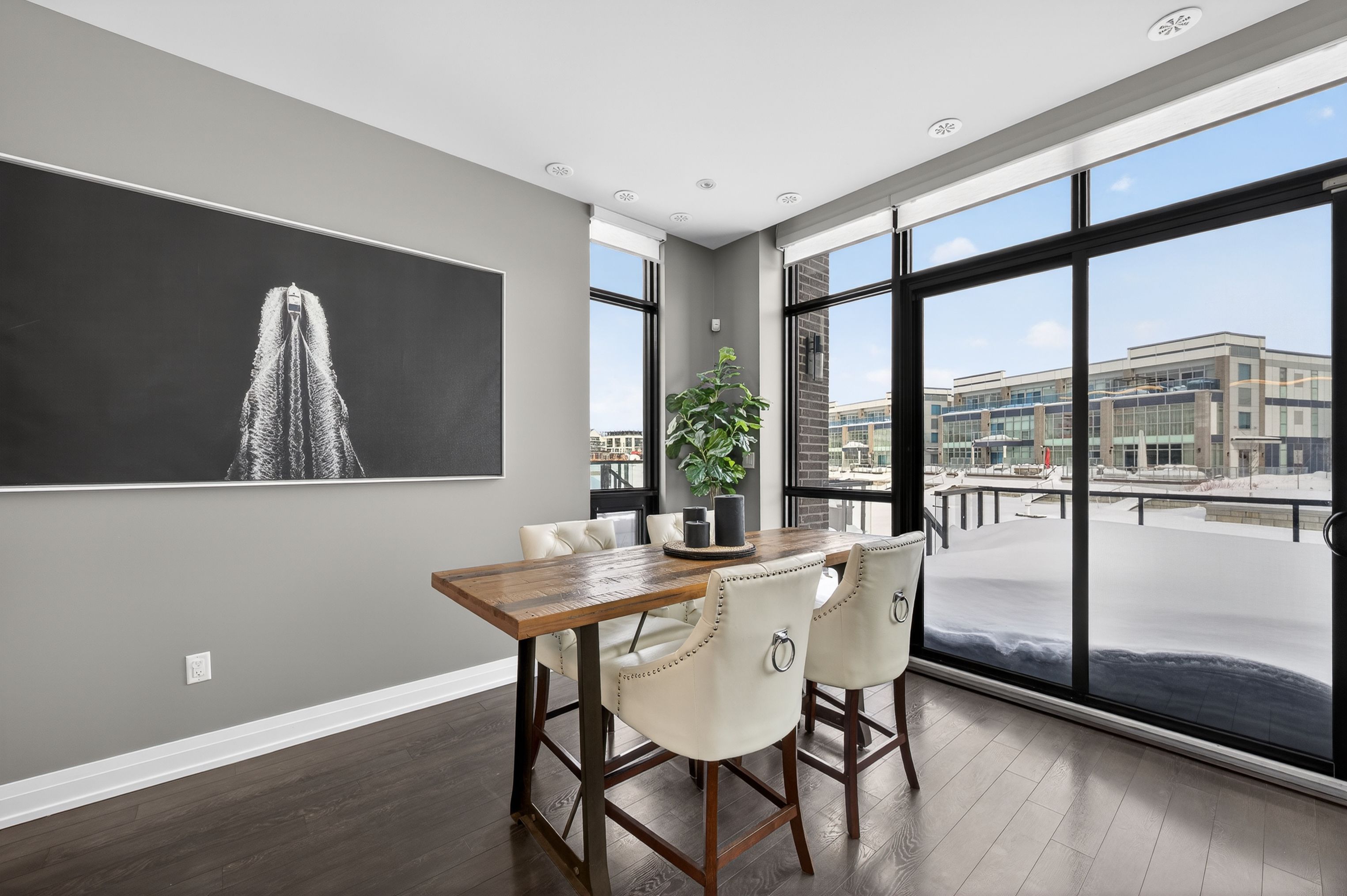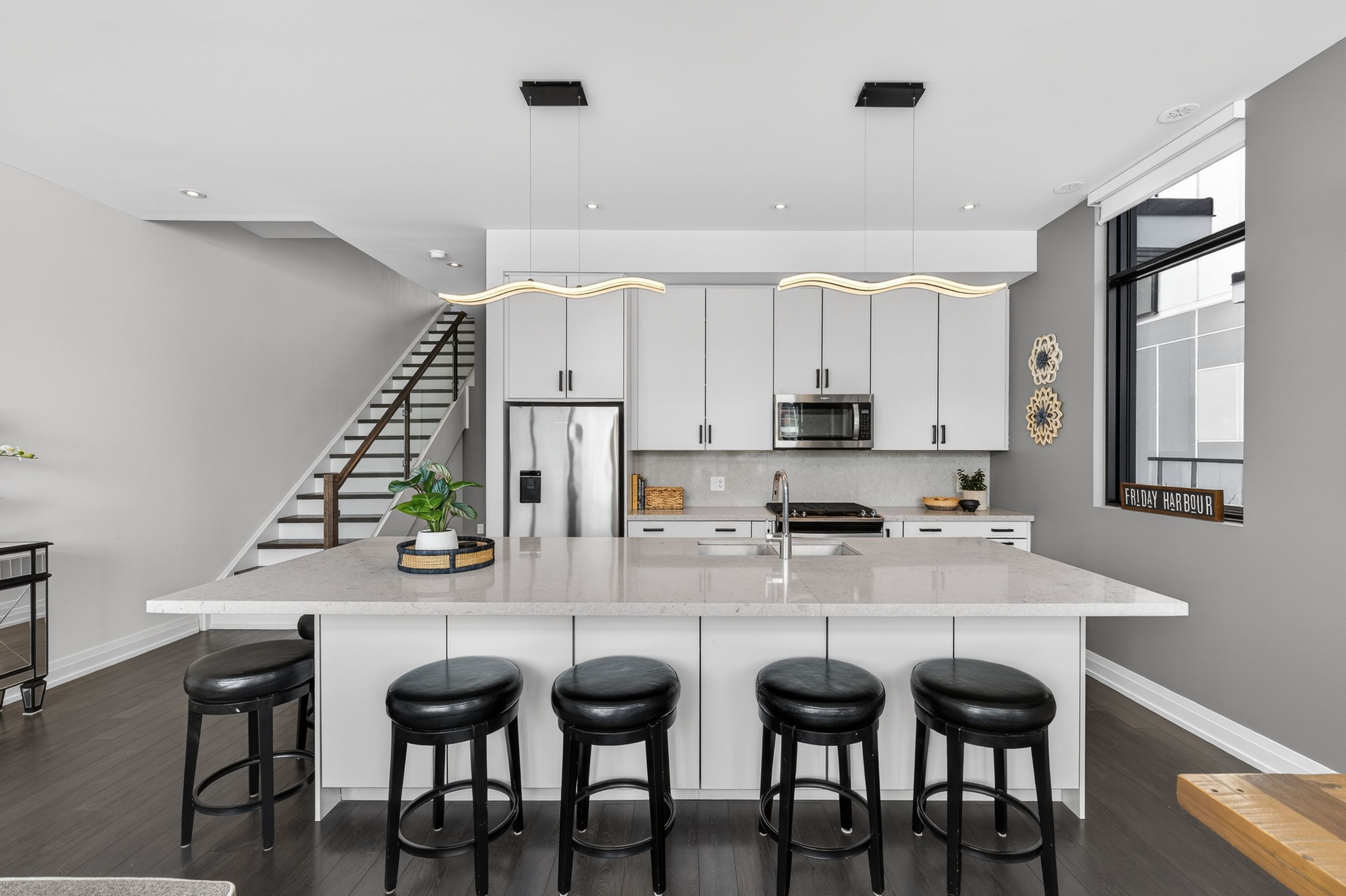 ***end-unit riva townhome | steps to the boardwalk*** end-unit riva townhomes in this location are limited-and rarely offered. Set just steps from the boardwalk promenade and lake club, this home combines what many buyers look for but rarely find together: an end unit in a true walkable position to the core of friday harbour. What sets this unit apart is how it lives day to day. Riva avenue has many interior units that are accessed primarily through the garage. Here, as an end unit, you have both garage access and a proper side-door main entrance, making coming and going far more practical and it is in a sought-after location. The home is oriented to the north-east, with open views toward the marina and boardwalk. Large windows bring in strong natural light, including morning sun across the main living areas. The main floor is open concept with floor-to-ceiling windows and walkout to a full-width deck facing the marina. The kitchen is centered around an oversized island, designed for everyday use and entertaining. The property includes a private dock and boat slip, with a pedestal providing power, water, and lighting. Upstairs, the primary bedroom faces the water, opens to a private balcony, and includes ample closet space. Two additional bedrooms provide flexibility for guests, family, or workspace. Parking includes two garage spaces and two driveway spots. Ownership also includes eight lake club member cards, with access to the pool, fitness facilities, dining, and more . For buyers focused on end-unit livability in a prime boardwalk location, opportunities like this are limited. Fee structure: lake club fee: $291. 48/month; basic resort fee: $3,774. 48/year; one-time entry fee: 2% of purchase price + hst