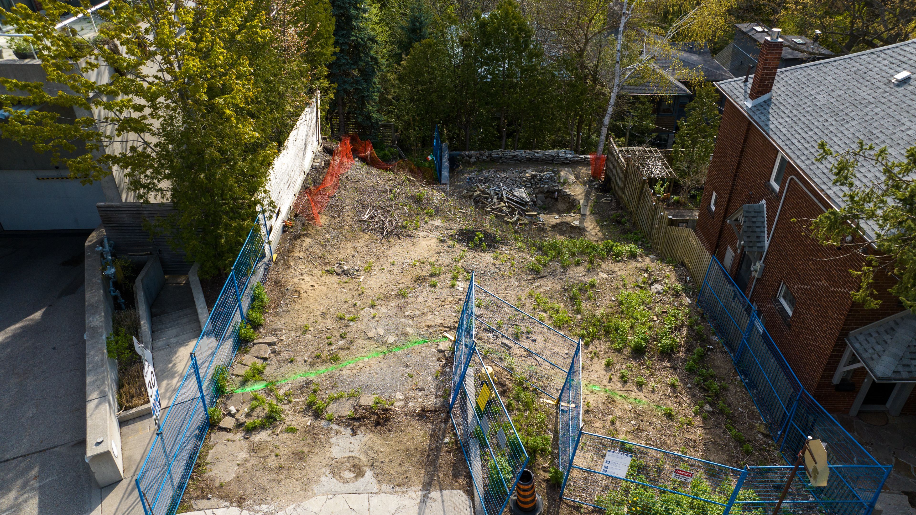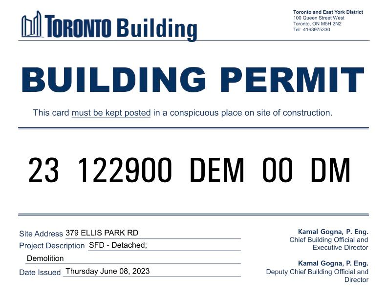 Incredible vacant lot with approved building permits! This is a rare and remarkable chance for you to build a brand new detached home on a 48 foot tiered lot perched at the peak of a prime address with picturesque vista views overlooking high park and the city skyline. All necessary building permits, plans and approvals have been obtained to commence construction of a 4 level home with approximately 3,568 square feet, 3 bedrooms, 4 bathrooms, an elevator, amazing outdoor spaces which include a rooftop terrace with a green roof plus a ground level walk-out to a covered loggia, and a private driveway leading to the built-in garage. The demolition of the old home is done. Trees within the building envelope have been removed by permit. The location is outstanding and set amongst a well established and wonderful family oriented neighbourhood with renowned schools, and is steps to the fabulous restaurants, cafes and shops of bloor west village, the ttc subway station, high park walking trails & facilities, grenadier pond, and rennie park. Easy access to sunnyside beach, lake ontario, the boulevard club, the union pearson express train, and the gardiner expressway for the downtown, billy bishop airport & pearson airport commute. This is the perfect backdrop to start building your dream home in a spectacular setting surrounded by canopies of mature trees which creates an idyllic sense of country living, yet located centre stage of city living.