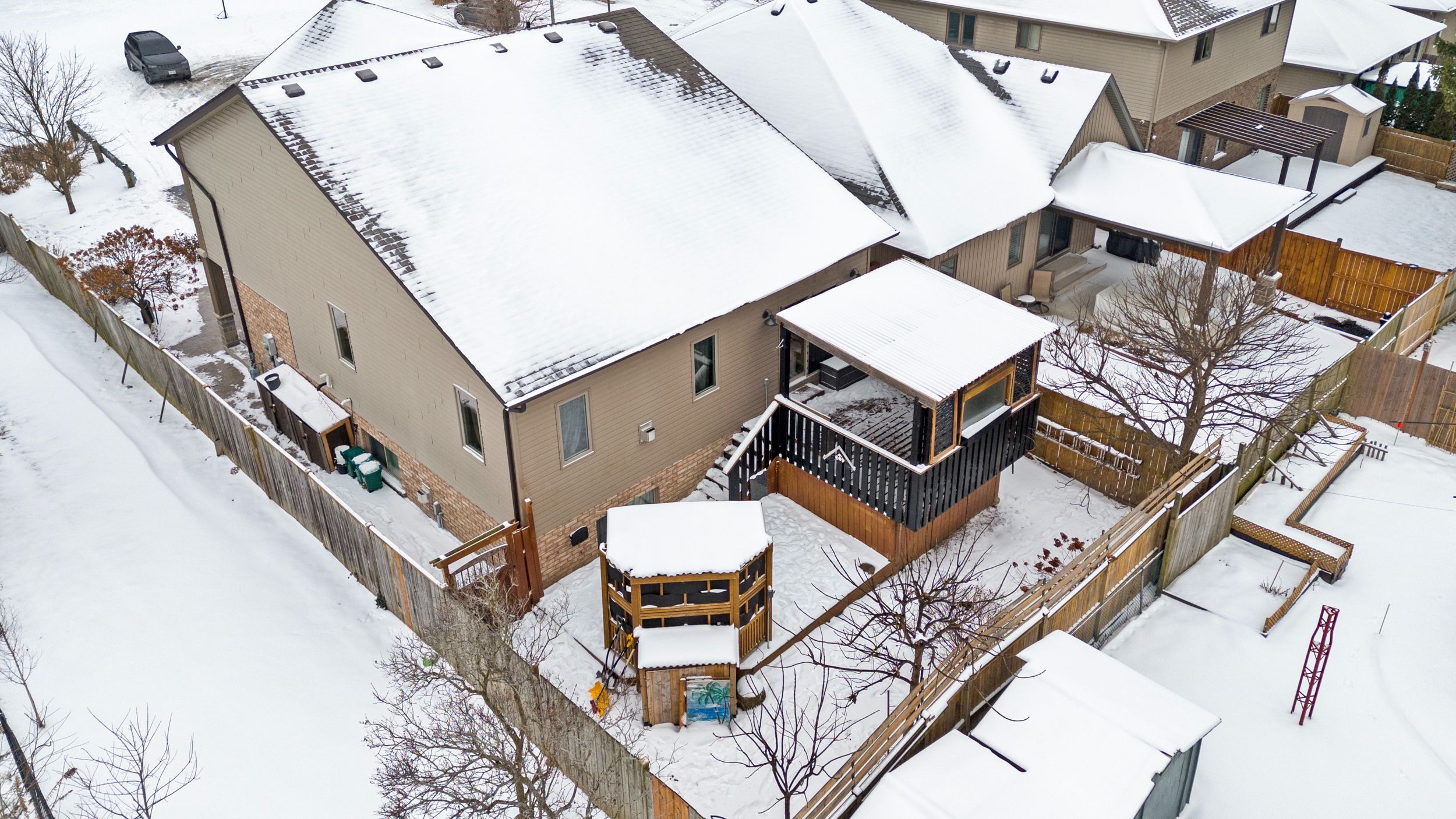 Tucked at the end of a quiet cul-de-sac, this lovely, custom built raised bungalow with lofted bedroom level is ready for a new family to enjoy! Constructed in 2014, in one of welland's most desirable neighbourhoods, it offers a modern look with its stone and acrylic stucco exterior along with a premium, stamped concrete double wide driveway that leads to an extended double car garage perfect for car enthusiasts or extra storage. Step inside to a spacious foyer where a few steps will take you up to the open concept main floor where natural light highlights the scratch resistant quality laminate flooring. The spacious kitchen features granite counters, high-end appliances, a centre island and plenty of cabinetry. It overlooks the dining and living areas warmed up for cozy winter nights with its gas fireplace. The well-designed layout offers 4 spacious bedrooms and 3 full bathrooms. The upper level provides privacy with two large bedrooms, including a primary suite with a 3-piece ensuite, plus an additional 4-piece main bath. The lower level adds versatility with the two additional bedrooms, a second 4-piece bath, and a large recreation room with another gas fireplace. A functional laundry room includes a separate walk-up entrance to the garage, offering excellent in-law suite potential. For the hobbyist or tech-forward buyer, the home features a 200-amp electrical service and a 240v plug in the garage for heavy equipment or a future ev charging port. Outdoor living shines with a multi-tier deck with waterfall feature, enclosed pergola with gas lines, and a lower pergola wired for an outdoor kitchen. Storage is exceptional, with a 10x14 dry space under the deck, a 4x9 shed, and a separate bbq shed. Close and convenient to seaway mall, maple park, and top schools, this home blends luxury, function, and location. Excellent value!
