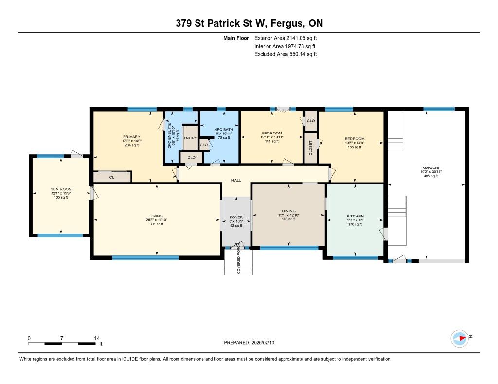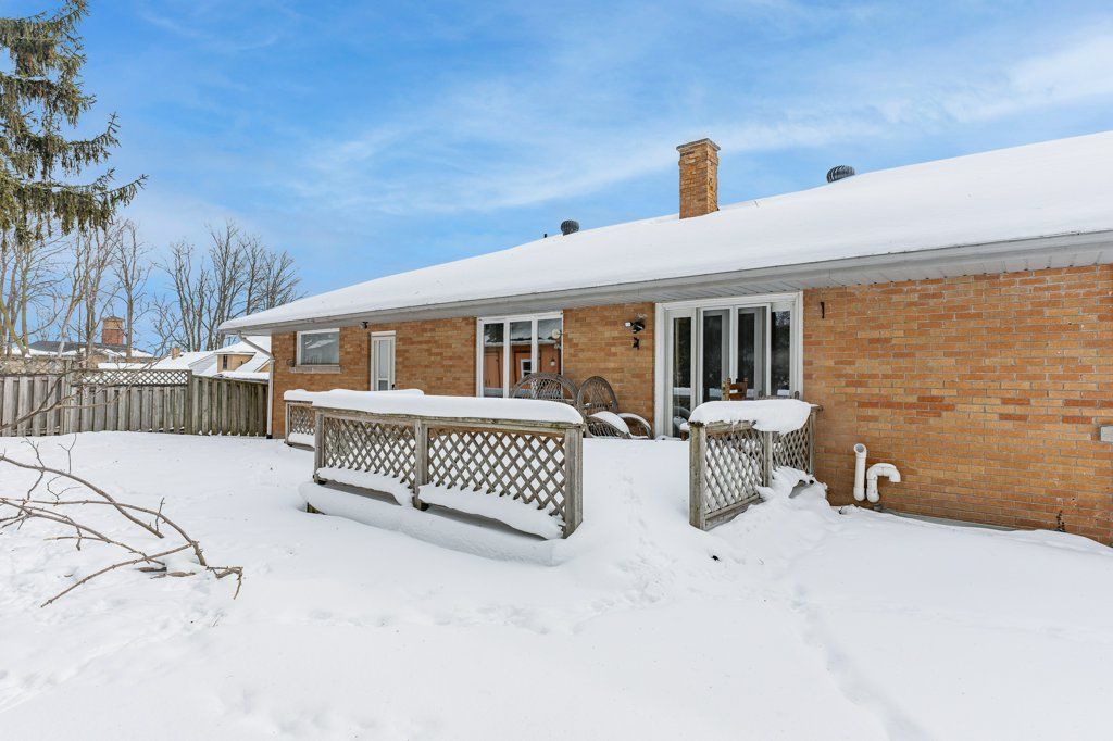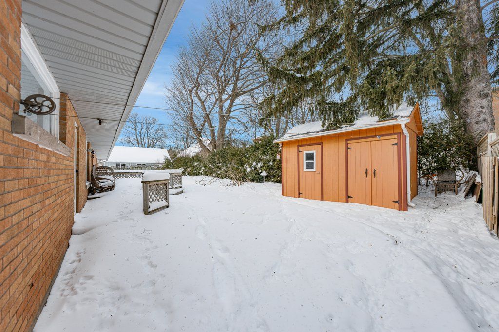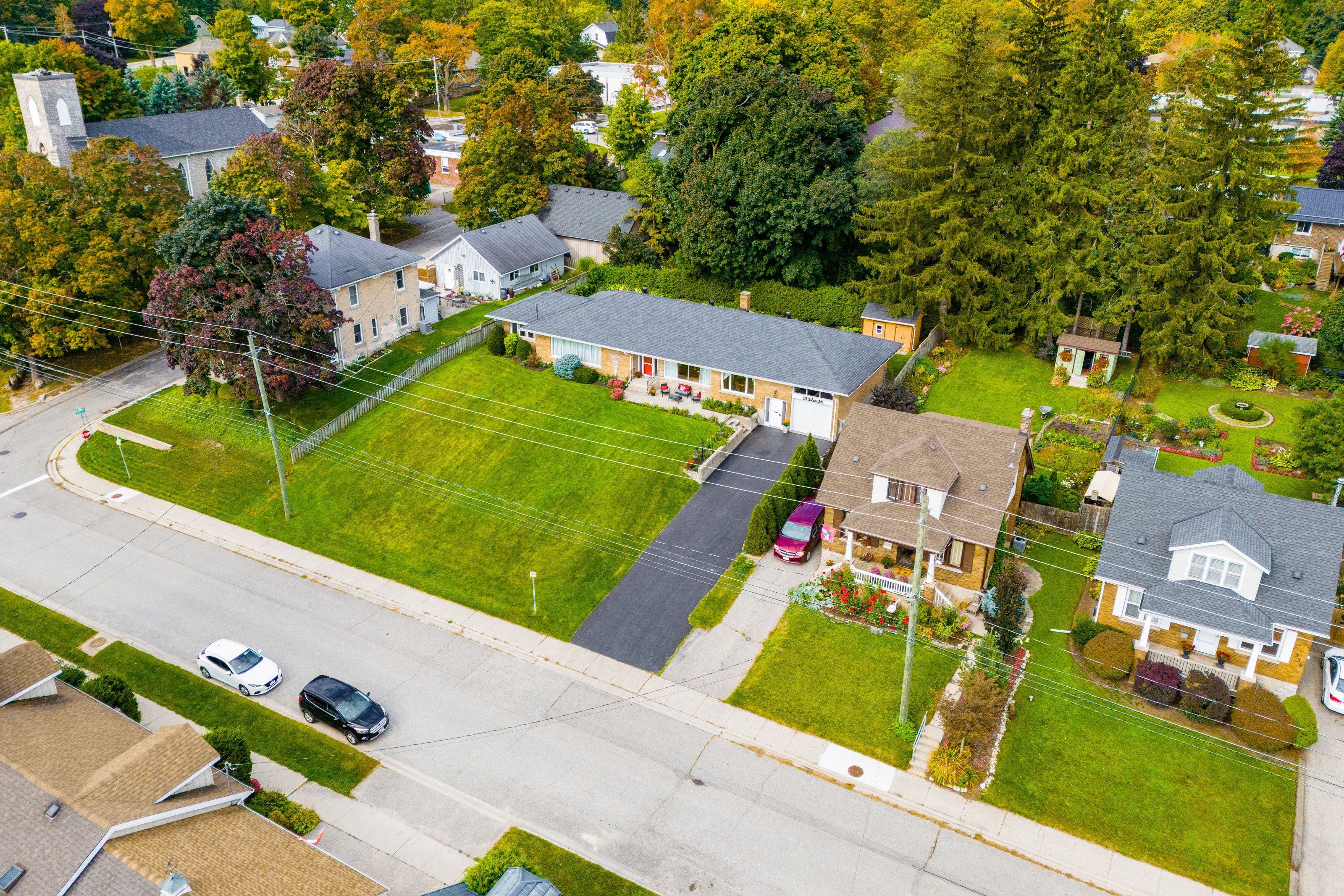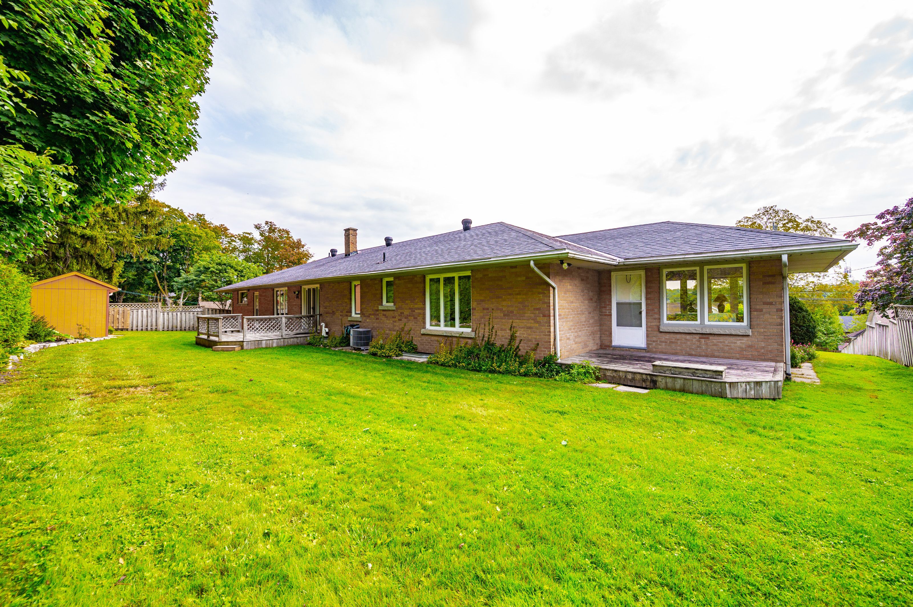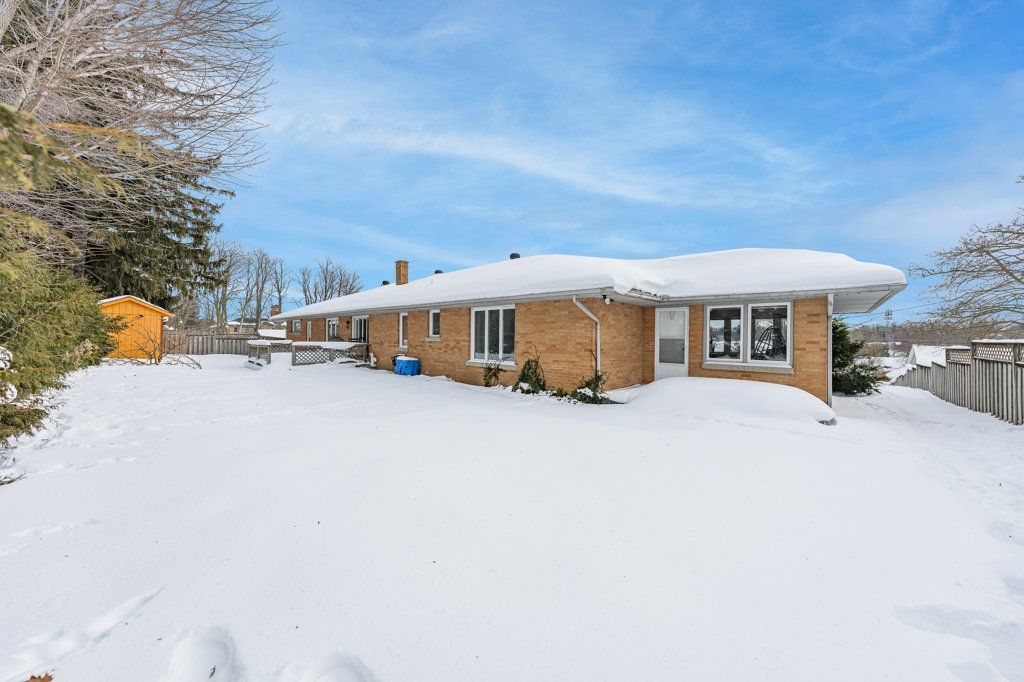 Welcome home to 379 st patrick st w in fergus! This grand estate home is set on a large, treed . 3 acre lot. Boasting massive principal rooms, this 2200+ sq ft all brick bungalow is situated perfectly, a short walk from beautiful downtown fergus and all it has to offer located along the banks of the grand river. From the oversized driveway and tandem 2 car garage, walk up the pathway to the front patio overlooking the neighbourhood. Through the front door and into the large foyer that opens in the formal living room and dining room which span the front of the home. At one end enjoy the informal sunroom/office/den, with its own entrance (perfect for a home business). The other end of the house boasts a generous, bright kitchen which flows nicely through the formal dining room and conveniently located off the garage. At the back of the home, you'll be pleasantly surprised at the size of the bedrooms, the primary bedroom with 3 piece bathroom and laundry closet and the main 4 piece bathroom. An unfinished basement with seperate entrance has tons of potential for extending the main home or as an in-law suite. Homes of this size and quality in this sought-after locations, are very hard to find; don't let this one get away!