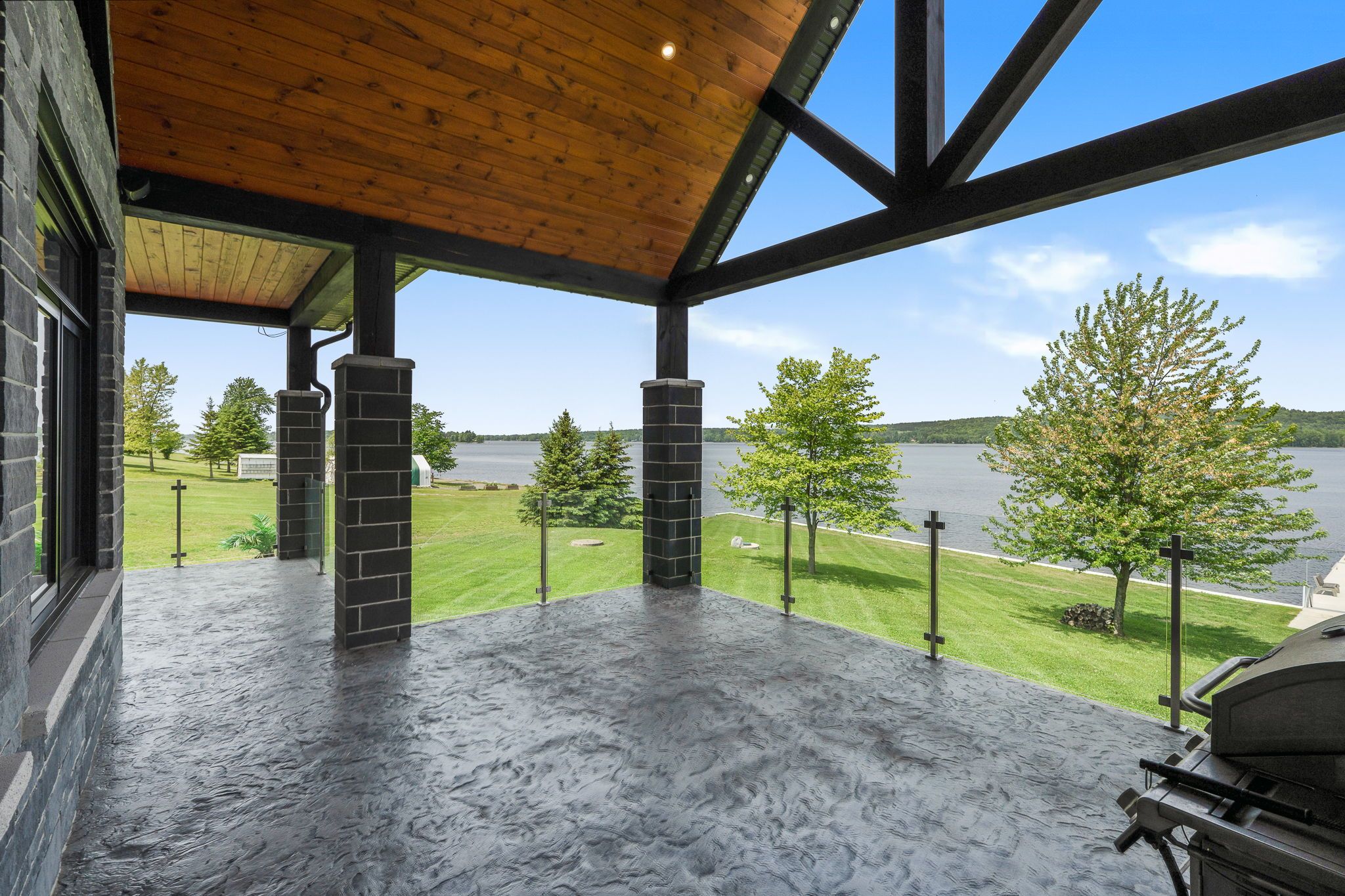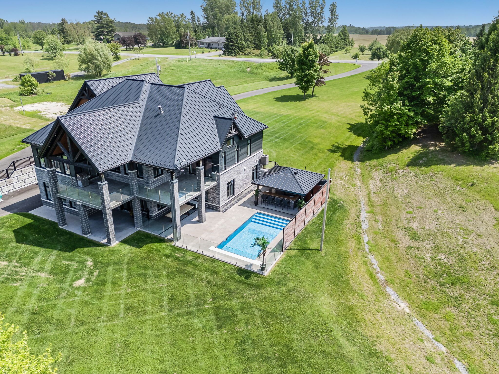 Welcome to 3795 concession 1 road; built in 2017, this immaculate 5 bedroom, 3 bathroom custom waterfront bungalow with radiant heated triple car garage & walkout basement is located on 1. 35 of an acre of lifestyle. Over 199ft of water frontage!!! The main floor features radiant flooring throughout; an open concept grand entrance & family room with 19ft cathedral ceilings; an open concept gourmet kitchen & dining room with plenty of windows offering a breath taking view of the ottawa river with large patio doors leading to over 610 sqft of a covered stamp concrete balcony with glass railing; custom gourmet kitchen with plenty of cabinets, high end appliances and 10ft quartz island/breakfast bar. Oversize primary bedroom has an open concept custom 5 piece bathroom separated by a gas fireplace; huge formal 10x7 walking closet; huge patio doors leading to the upper level stamp concrete balcony where an hot tub connections & gas bbq hookup are already in place. Fully finished walkout basement featuring radiant flooring throughout, a huge recreational room, 4 good size bedroom & a modern 4 pce bathroom. Backyard featuring a glass railing fenced-in area with a 24x12 heated in-ground pool with automatic pool cover; outdoor kitchen with bar sink, industrial cook plate with grill, ice machine & toilet. Pool area surrounded with poured concrete throughout. Other features include: top quality & high end seamless metal roof; approx. 200ft of concrete blocks retaining wall; asphalt water descent with concrete boat ramp; front & backyard sprinkler system; permanent outdoor lighting->gemstone lights; extensive landscaping; permanently installed 11ft x 54ft concrete floating dock with electricity & water; main double car garage with main floor access; upper level access *potential in law suite & lower level garage/ basement access. Book your private showing today