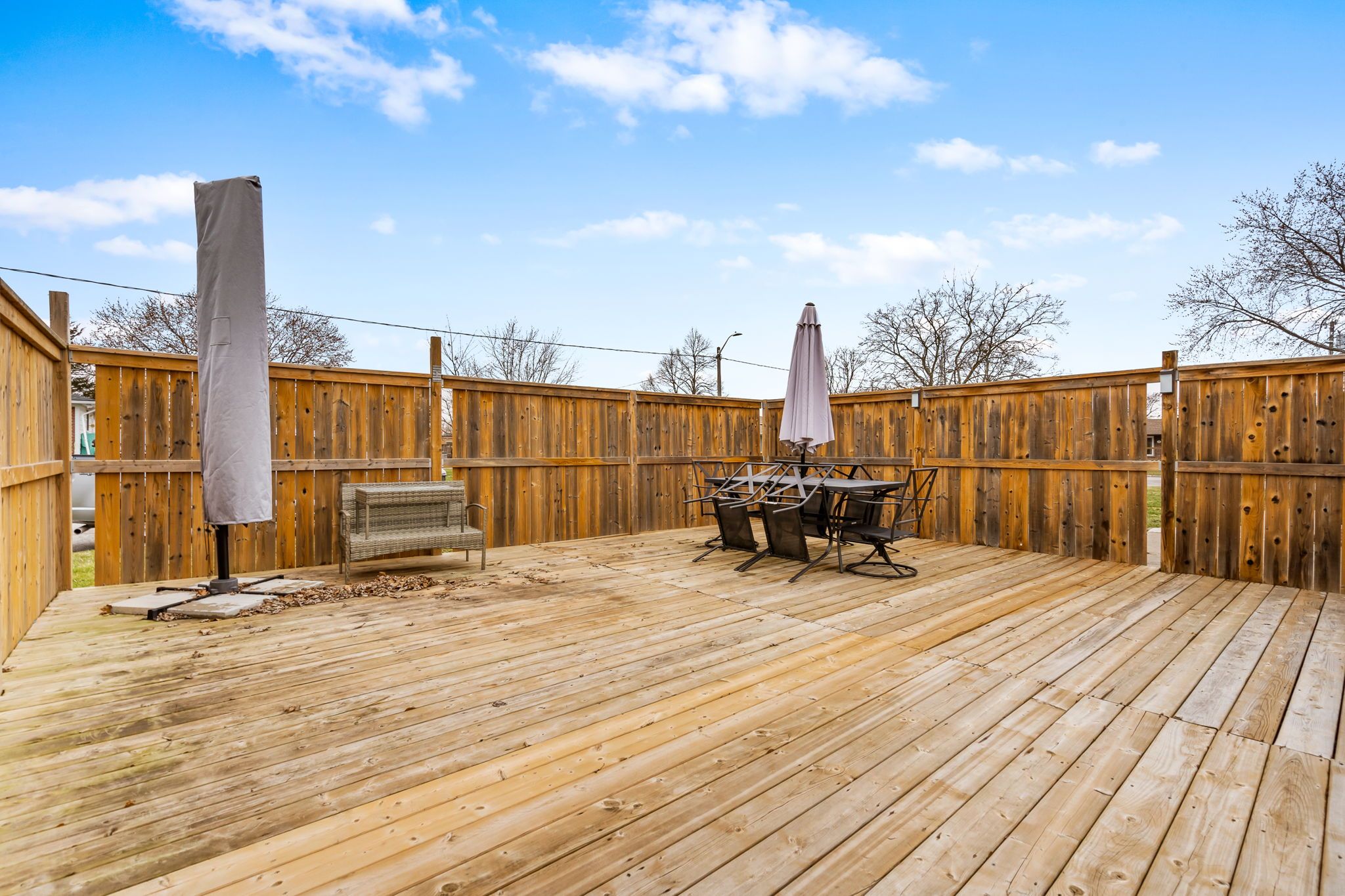 Welcome to this charming bungalow with pool ideally located on a quiet crescent just steps from a park and school-perfect for families or those seeking a peaceful, established neighbourhood. Set on a generous lot, this home offers a wonderful sense of space both inside and out, with a large front yard and a private backyard ready to enjoy. Inside, you'll find a thoughtfully updated home featuring a renovated kitchen (2023), updated flooring on the main level (2023) and basement (2021), and an updated bathroom (2021). Additional improvements include newer windows and doors, a sliding patio door (2022), kitchen appliances (2022), and a washer and dryer (2025). The roof has also been updated, with the back portion completed in 2019 and the front in 2025. Step outside to a spacious deck-perfect for relaxing or entertaining. The backyard offers excellent potential for outdoor living, with an inground pool (new liner and stairs in 2022) - an opportunity to create your own outdoor retreat, as illustrated in the virtually enhanced image. A fantastic opportunity to own in a family-friendly neighbourhood with space, updates, and future potential.