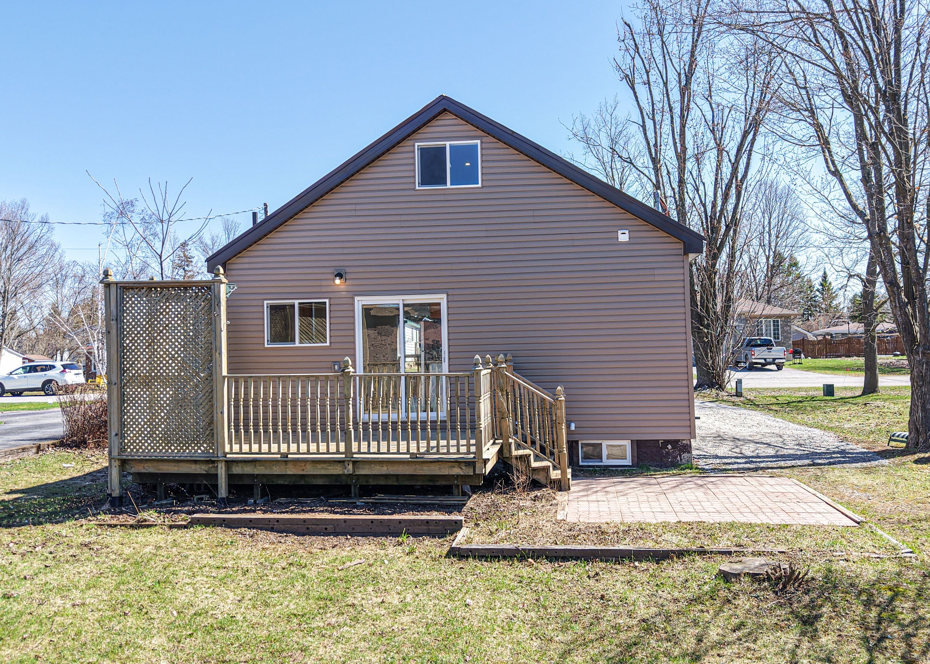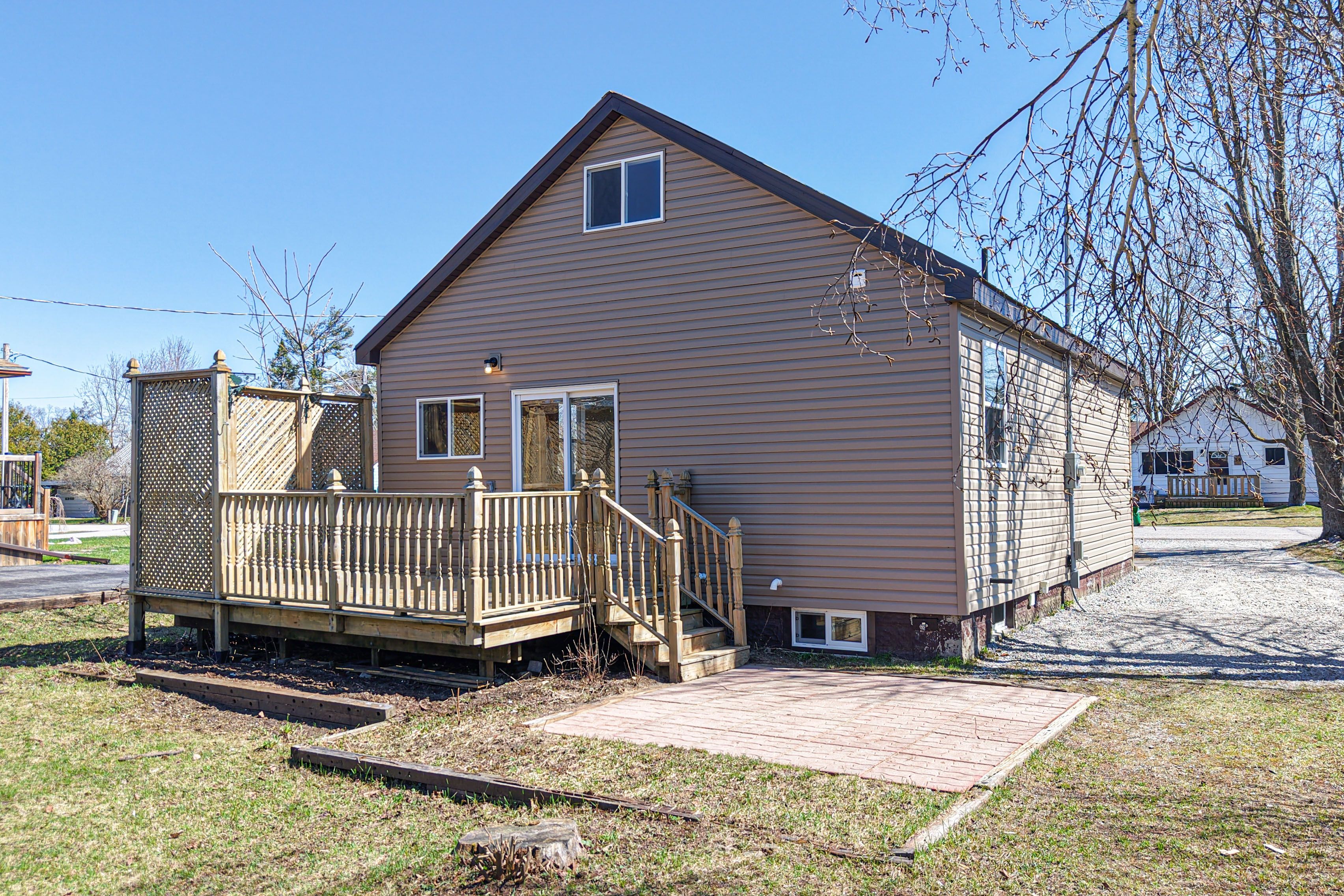 Welcome to this beautifully upgraded, move-in-ready home located in a peaceful, family-friendly neighbourhood. Just a two-minute stroll to lakeview park, this property offers the perfect balance of residential comfort and urban convenience, situated minutes from downtown orillia, lake couchiching, recreational trails, and only a few blocks from both elementary and secondary schools. The residence has been meticulously updated for maximum energy efficiency and low-maintenance living. Key infrastructure improvements include new spray foam insulation (attic and crawl space), a 200-amp electrical panel with all-new wiring, and brand-new windows and doors. The main floor features an inviting open-concept living and kitchen area illuminated by modern pot lights, alongside two sun-filled bedrooms and a freshly renovated bathroom with classic white tile and stylish finishes. The updated kitchen comes complete with new appliances and seamless luxury vinyl flooring that flows throughout the home. Upstairs, a versatile loft offers an airy, open-concept retreat-ideal as a primary bedroom, sun-drenched home office, or a creative combination of both, complete with ample built-in storage. The lower level serves as a high-efficiency utility hub, featuring a laundry area, gas furnace, hot water on demand, and a whole-home water filtration system. The exterior is designed for longevity with low-maintenance vinyl siding and a durable metal roof. Step outside to an expansive, fenced backyard oasis boasting a large wooden deck for bbqs, a custom stone patio perfectly suited for a hot tub, and immense potential for a future pool. This turnkey property is a rare find, offering a perfect blend of low-maintenance living and affordability within a quiet, established neighbourhood.
