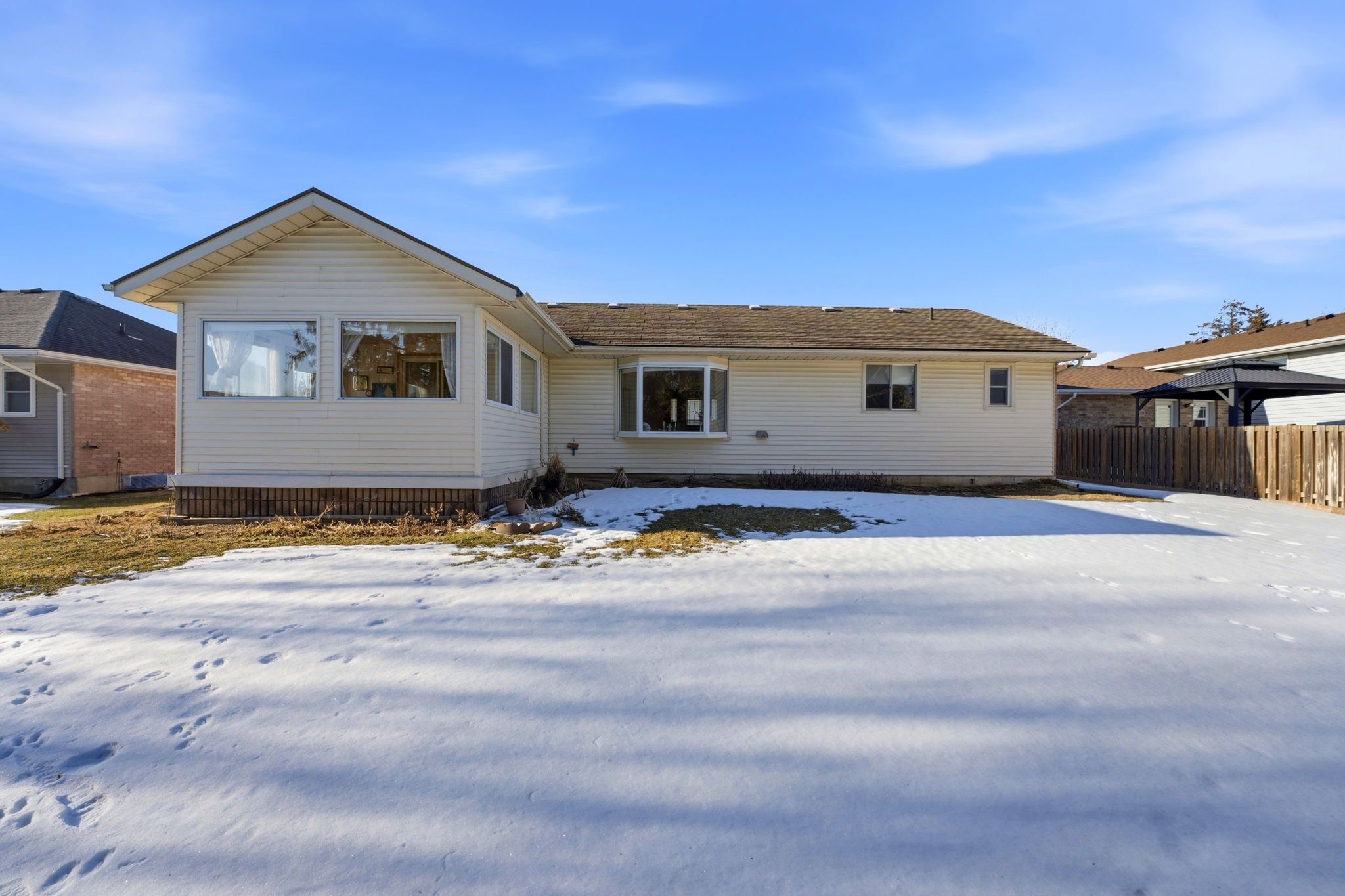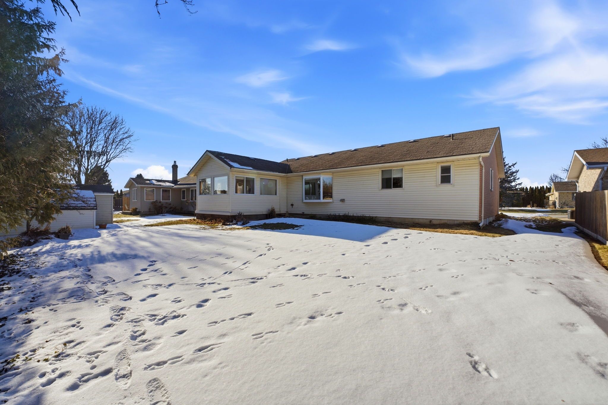 Welcome to this charming bungalow nestled in a quiet, mature neighbourhood-perfect for those seeking comfort, privacy, and convenience. This well-maintained home offers 3 bedrooms and 2 bathrooms, including a primary ensuite, all thoughtfully laid out on one level for easy living. Step into the spacious open-concept living room, where an unexpected cathedral ceiling creates an airy, inviting atmosphere ideal for both relaxing and entertaining. Just beyond the dining room, a bright sunroom provides the perfect spot to enjoy your morning coffee while overlooking the peaceful, private backyard. Practical features abound, including a durable metal roof and an attached 2-car garage for added convenience and peace of mind. The unfinished basement presents a blank canvas with excellent potential-whether you envision additional living space, a recreation area, or a future in-law suite. Ideally located close to shopping, services, and everyday amenities, this home combines tranquil neighbourhood living with easy access to everything you need. Flexible closing available to suit your timeline. Don't miss this opportunity to make a solid, lovingly cared-for bungalow your own.