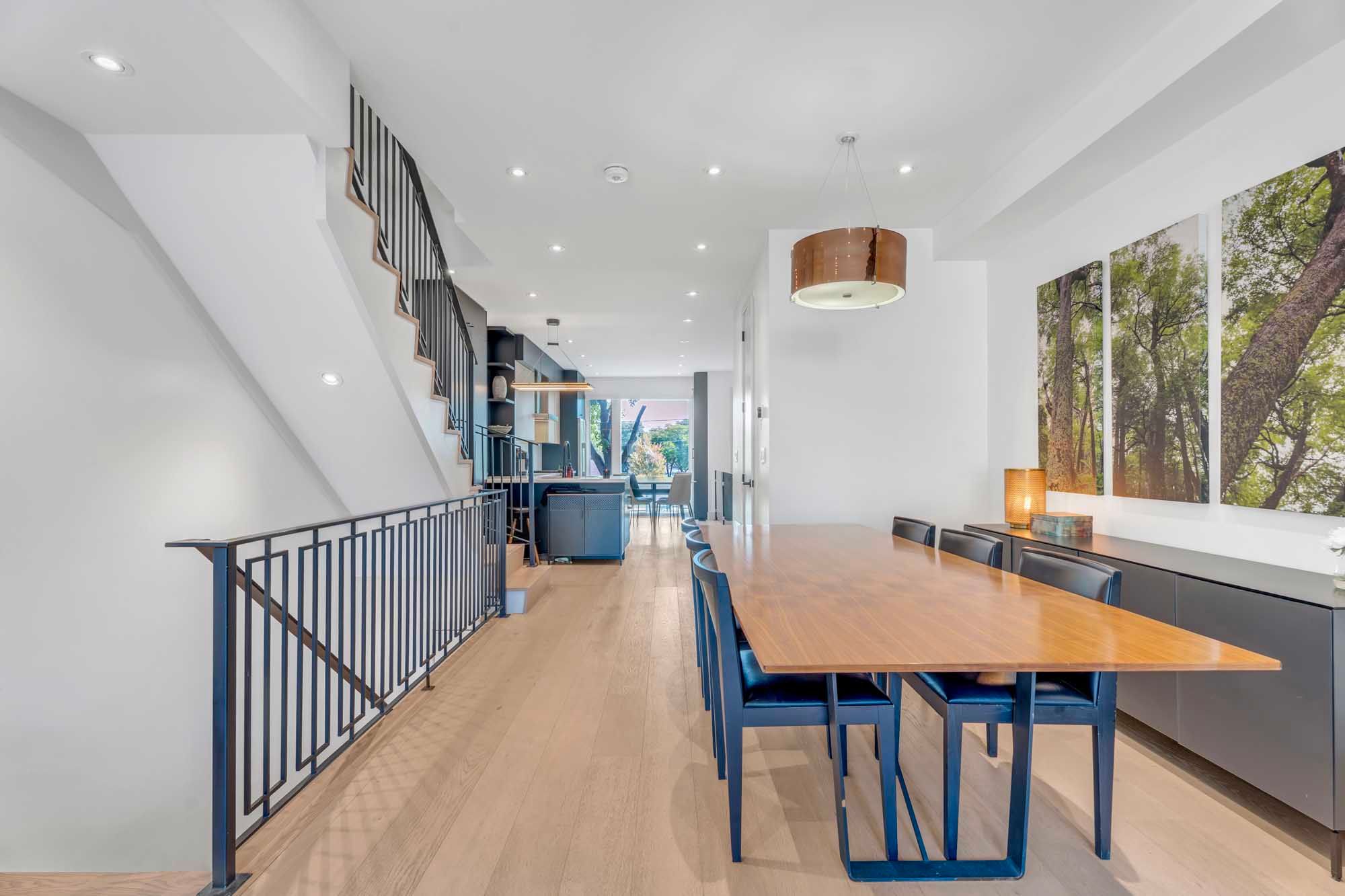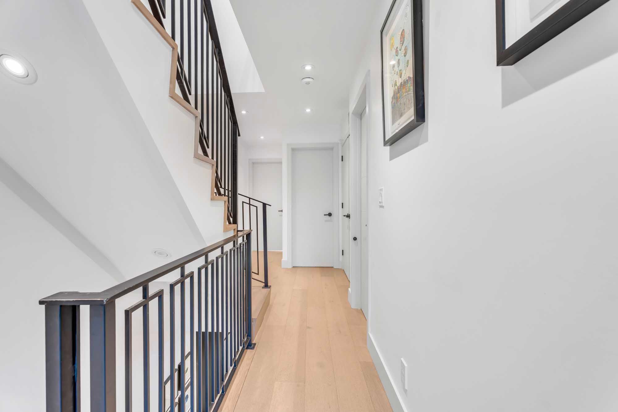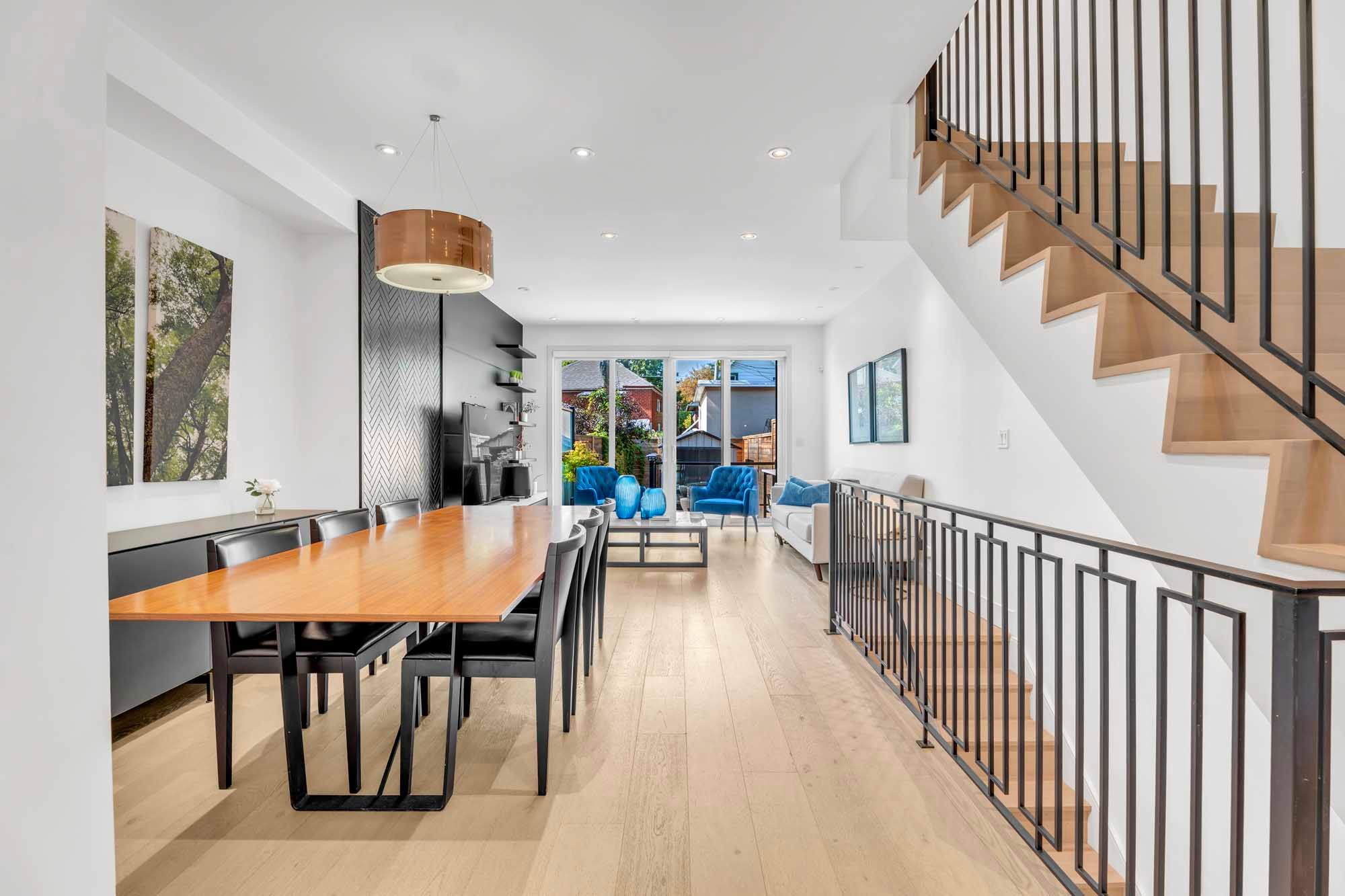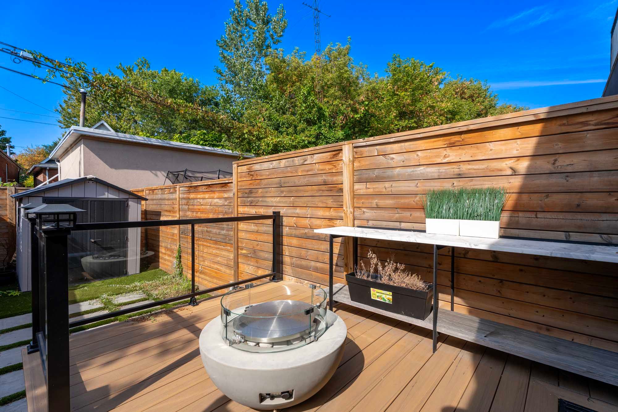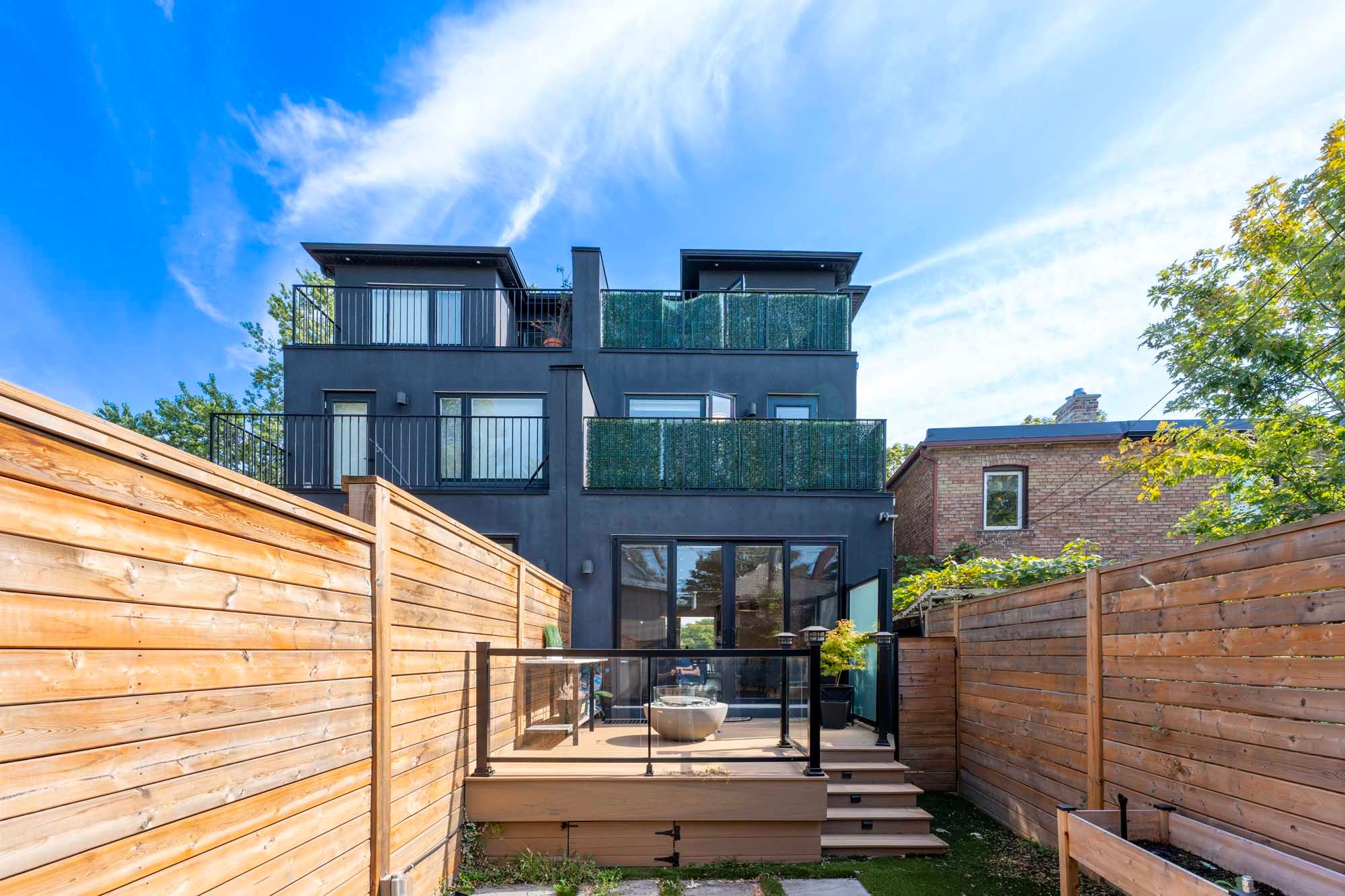 Welcome to 38 alameda avenue, a stunning three-storey home in the heart of cedarvale offering nearly 2,500 square feet of luxurious living space. The main floor features soaring 9-foot ceilings, engineered hardwood floors, and an open concept design that seamlessly connects the spacious living and dining areas. A sleek open fireplace and custom built-ins add warmth and style, while the modern kitchen is equipped with wolf and fisher & paykel appliances, quartz countertops with lots of storage. A striking custom waterfall staircase with elegant railings anchors the home, creating a dramatic design statement. Oversized windows fill the home with natural light and walk out to a deck and fenced backyard with low-maintenance composite decking, perfect for entertaining. The second floor offers three bright bedrooms and a convenient laundry room. The front bedroom overlooks the park, while the rear bedroom enjoys a private balcony, with each room designed to maximize space and light. The third floor is devoted to the primary retreat, complete with extensive built-ins, a spa-inspired ensuite, a massive walk-in closet, and a walkout balcony with park views. This level also provides access to a rooftop patio, creating the ultimate private escape. The finished lower level boasts 10-foot ceilings, a spacious recreation room with built-ins, a full bathroom, and direct access to the built-in garage, plus a private driveway that accommodates two additional cars. All of this is set in one of toronto's most desirable neighbourhoods, just steps from cedarvale park, top-ranked schools, the new lrt transit, and an array of vibrant shops & restaurants. With thoughtful design, high-end finishes, and an unbeatable location, this home is the perfect blend of luxury and convenience.