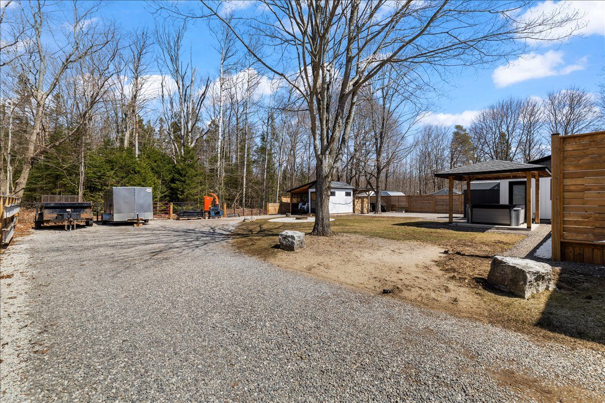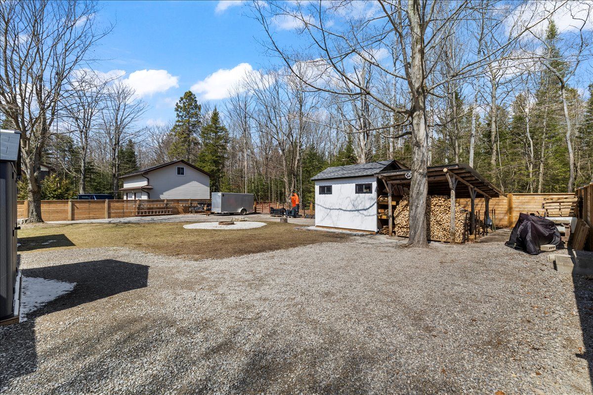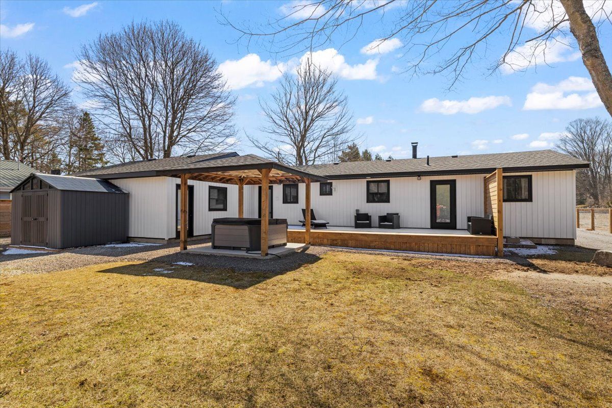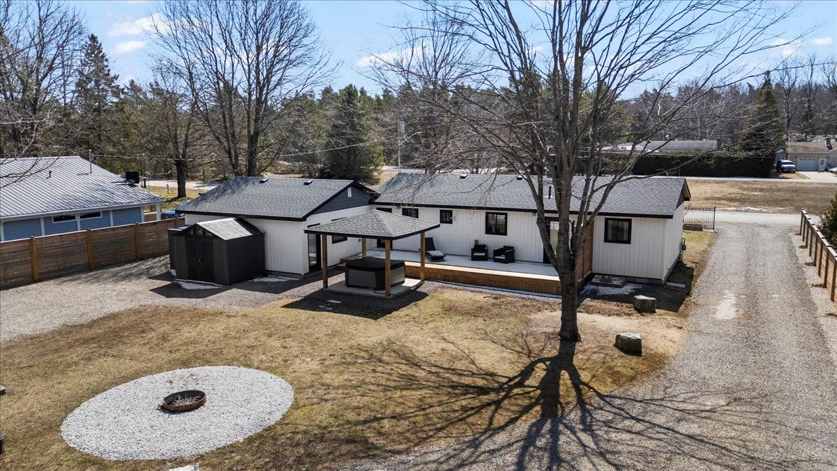 Welcome to 38 allister place - your move-in ready sauble beach retreat! Nestled on a quiet cul-de-sac, this beautifully renovated 2-bedroom, 1. 5-bath bungalow w/double garage sits on a nicely landscaped 100 x 150 ft lot that backs onto county land with no rear neighbours, creating a peaceful setting. You are just a leisurely stroll or short bike ride to the 6th street beach access and sauble's famous sandy shoreline and unforgettable sunsets. Stepping inside, the bright, open interior welcomes you with luxury vinyl plank floors, a generous sized eat-in kitchen, spacious yet cozy living room w/wood stove, and sliding doors to the expansive south facing front deck. The thoughtful layout is completed by two bedrooms, a gorgeous four-piece spa like bath w/deep soaker tub, tiled shower and live-edge vanity, a vestibule w/back deck access, and laundry/mudroom w/handy half bath adding convenience to everyday life. Stepping outside you'll appreciate the large rear deck, covered hot tub (included), fully fenced yard with landscape lighting and fire pit, storage shed with firewood lean-to, and the heated & insulated attached double garage. Parking is never an issue with a wide double driveway up front and a second laneway leading to a large rear parking pad with black quarry gravel - ideal for boat, rv, trailer and all the motorized toys. Major improvements over the past 5 years include; new vinyl siding, soffit/fascia, roof shingles (house, shed, and gazebo), new septic bed, gas furnace, all windows & doors, front and back decks, vinyl plank flooring, 4pc & 2pc bathrooms, 200 amp panel, hot water heater (owned), water pump, garage door, fencing all around, firepit area, and 2nd laneway to rear parking area. Bonus, all kitchen appliances (fridge, stove, washer & dryer) and hot tub included. Perfect as a year-round cottage, starter home or easy downsizing option, this move-in-ready gem offers privacy, modern comfort and the ultimate sauble beach lifestyle!