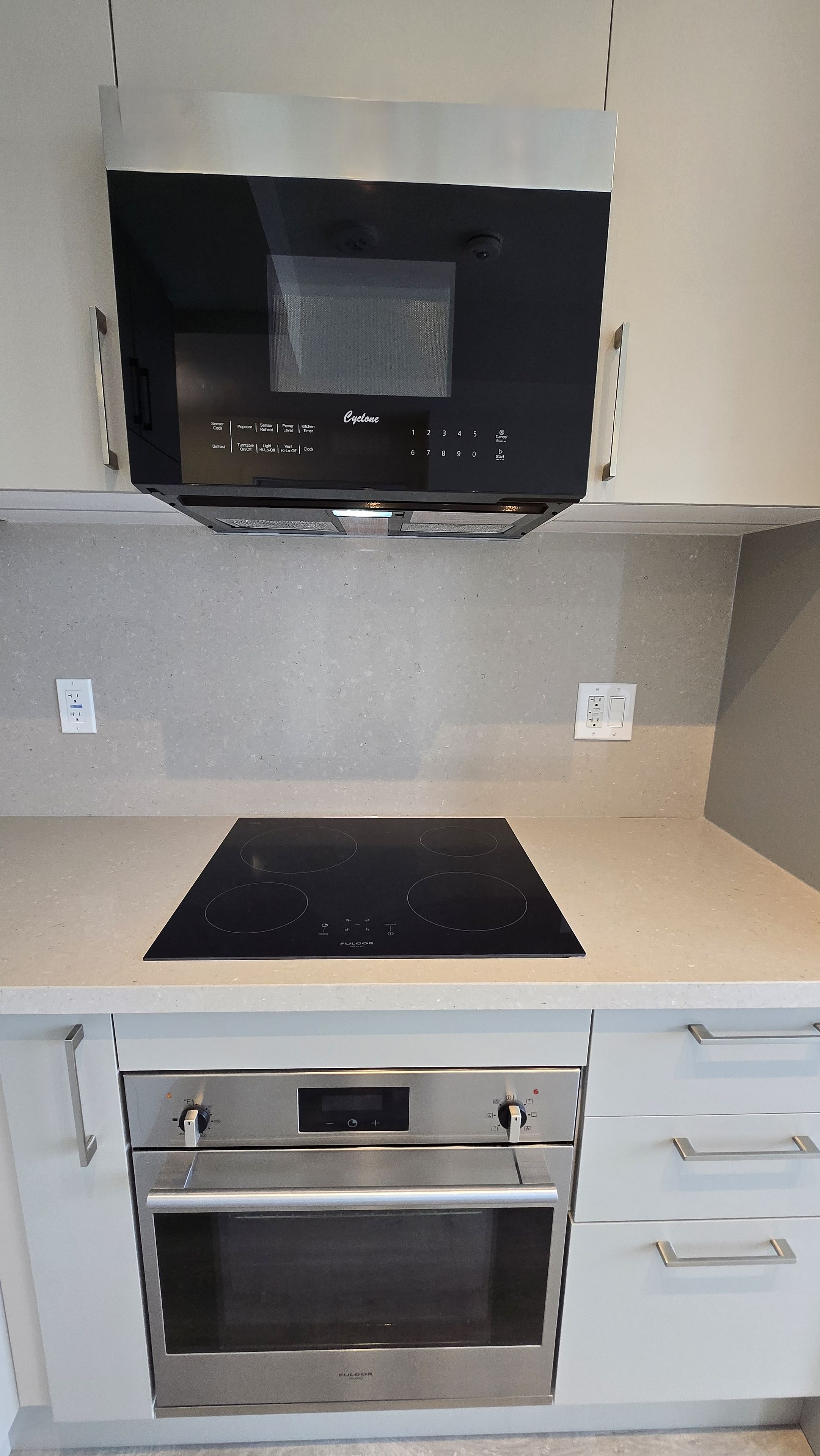 • Modern kitchen features built-in stainless-steel appliances.