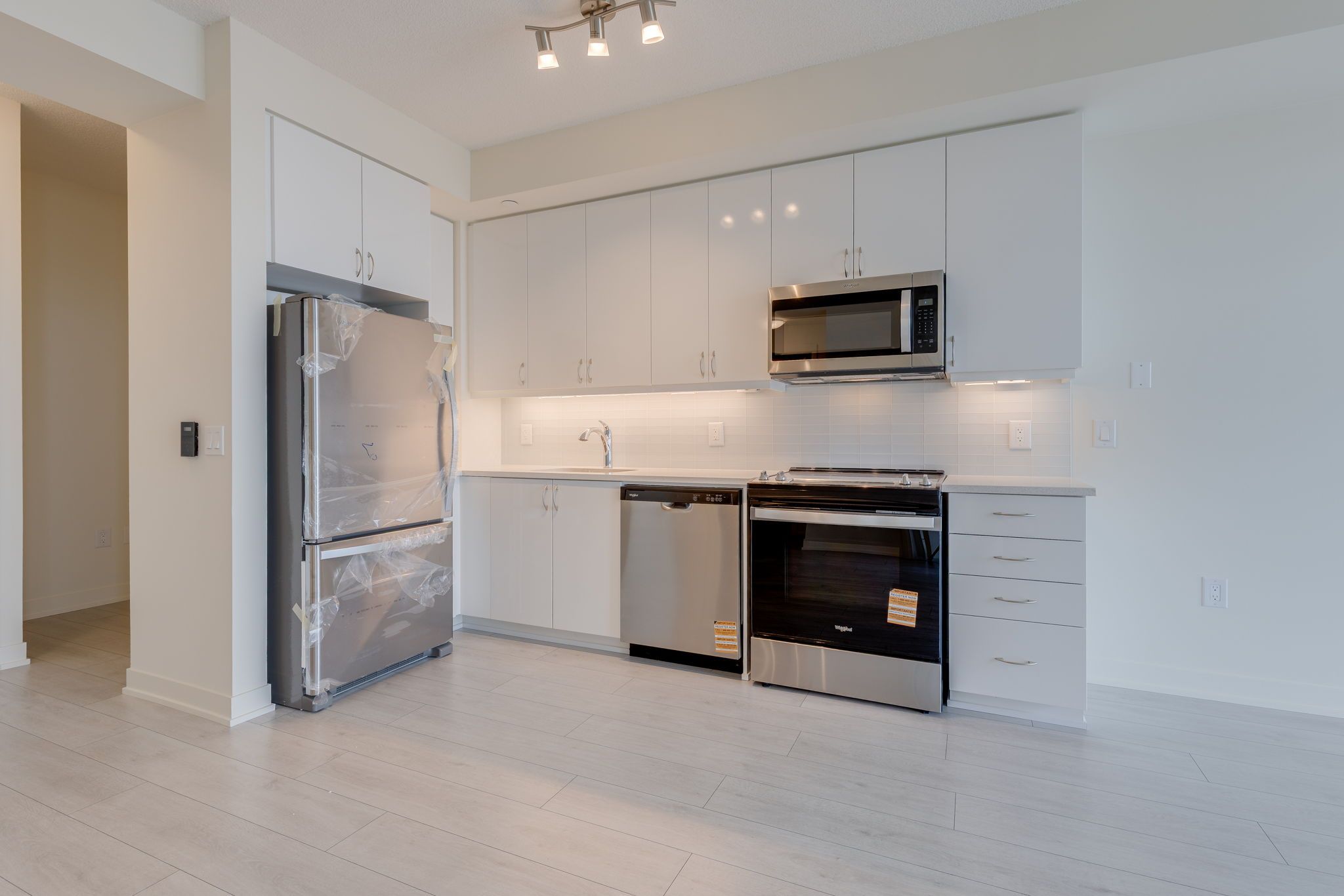 Experience luxury waterfront living in this brand-new 1-bedroom + den condo at waters edge, 38 annie craig drive, in toronto's vibrant humber bay shores. Situated on the 49th floor, this sun-drenched suite offers stunning panoramic views of lake ontario and the toronto skyline through floor-to-ceiling windows. The open-concept design features sleek laminate floors, a modern kitchen with stainless steel appliances, quartz countertops, and stylish cabinetry. The spacious bedroom and living room both lead to a private balcony, perfect for enjoying the lake's beauty. A versatile den provides an ideal space for a home office. Additional perks include in-suite laundry, underground parking, and a private locker. Waters edge offers future premium amenities like a fitness center, indoor pool, and 24-hour concierge. Steps from parks, trails, cafes, restaurants, and grocery stores, with easy access to public transit and major highways, this condo combines elegance, convenience, and an unbeatable location.