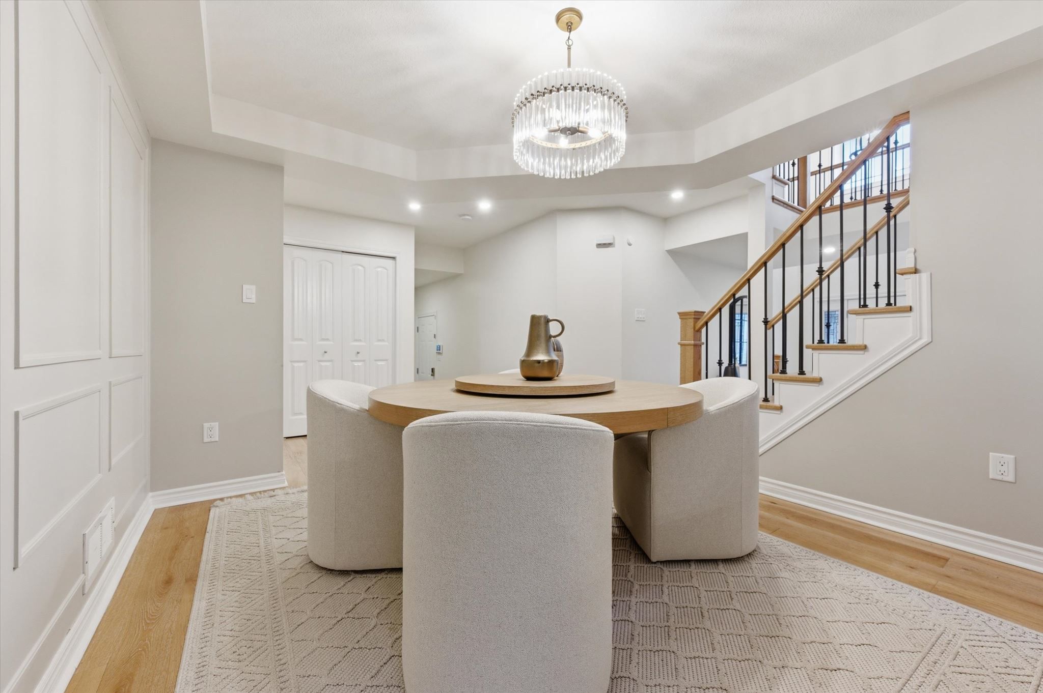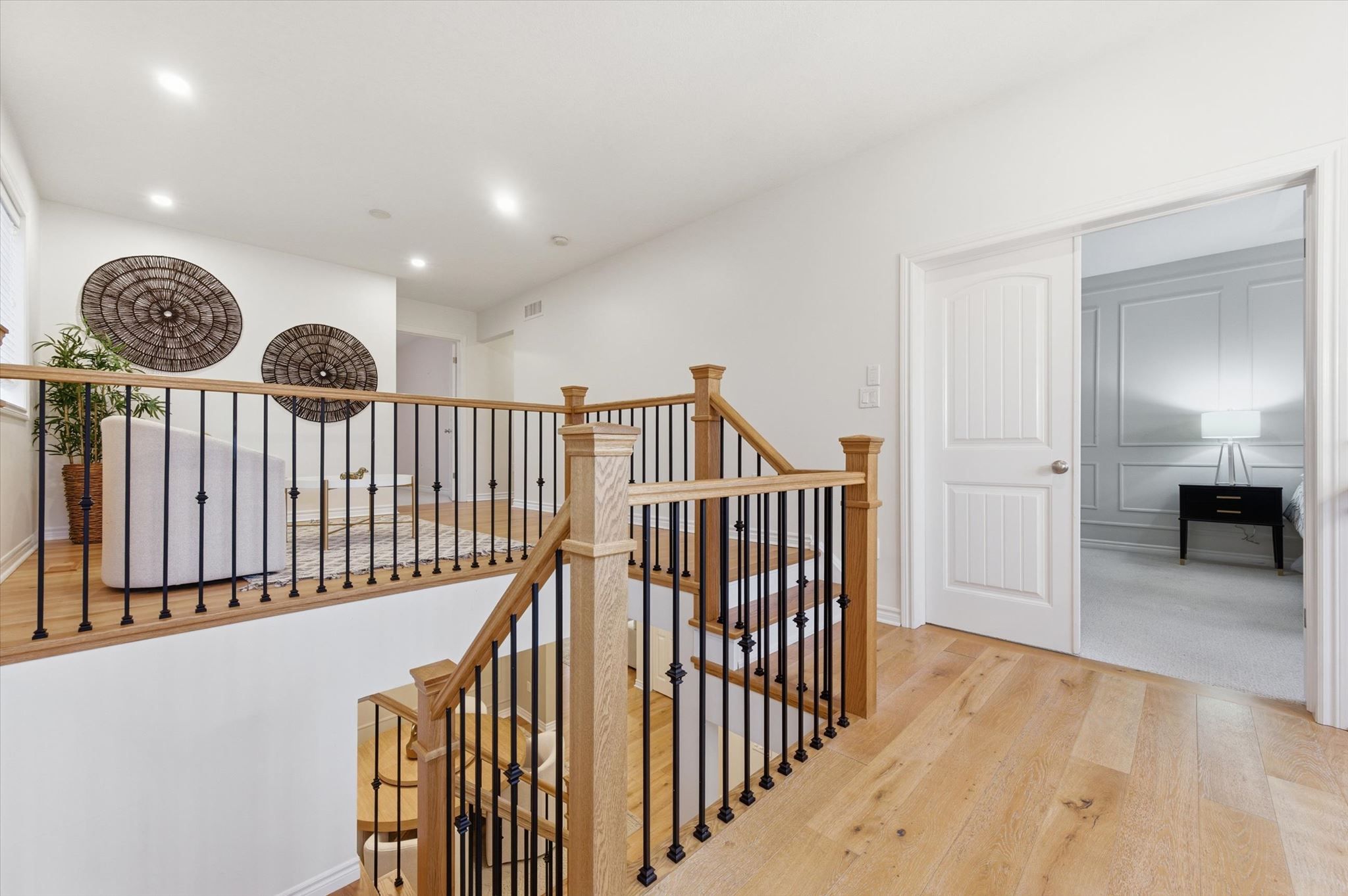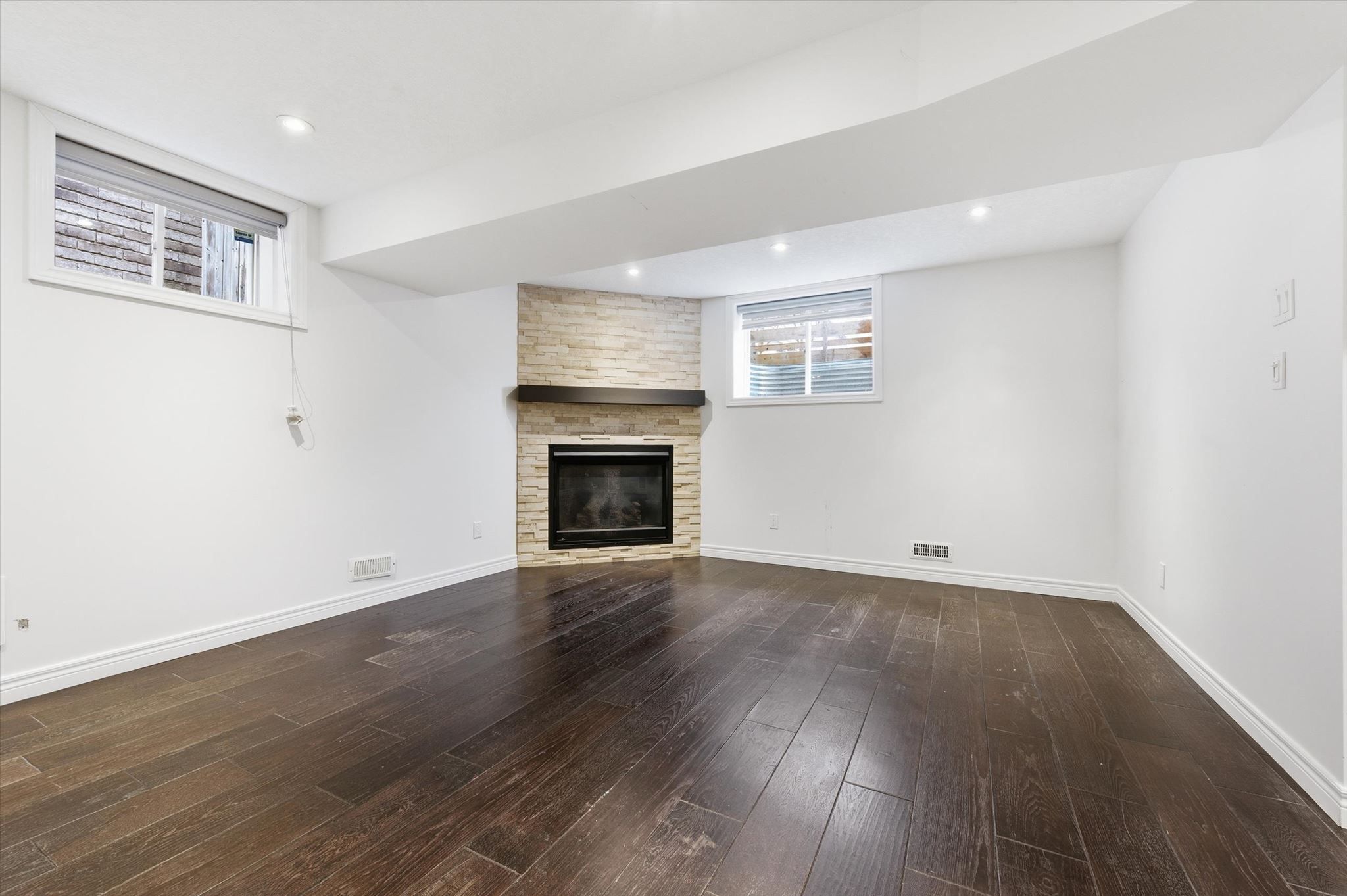 Quiet street, over 3,300 sq ft of beautifully finished living space, with a pool! This exceptional 3-bedroom, 4-bathroom home is ready for a new family to enjoy. From the moment you arrive, the striking brick-and-stucco exterior creates a lasting impression, while inside, gorgeous hardwood floors set the tone for the quality and craftsmanship found throughout. A formal dining room, complete with detailed wall mouldings and a statement chandelier, sets the stage for memorable gatherings. Just beyond, the warm and welcoming living room-anchored by a gas fireplace-flows effortlessly into the heart of the home: a stunning, updated kitchen. Here, you'll find stainless steel appliances, sleek quartz counter tops with a seamless back splash, under-cabinet lighting, and an over sized island perfect for casual meals or entertaining. Step out to the rear deck and enjoy easy indoor-outdoor living all season long. A chic powder room and convenient access to the double garage complete this thoughtfully designed level. Upstairs, a bright and versatile open-concept space offers endless possibilities-whether as a cozy family retreat, a productive home office, or a homework hub. Behind double doors, the serene primary suite awaits, featuring elegant wall detailing, a walk-in closet, and a luxurious 5-piece ensuite with a soaker tub and double vanity. Two additional generously sized bedrooms are complemented by a beautifully appointed 5-piece bathroom. The finished basement adds even more living space, with a spacious recreation room and fireplace-ideal for movie nights, entertaining, or simply unwinding. Outdoors, your private backyard oasis is ready to impress. A large deck overlooks the in-ground pool with tranquil waterfall features, for both relaxation and entertaining. Nestled in wonderful westminster woods, where scenic walking trails, great schools, and everyday conveniences are literally just steps away.