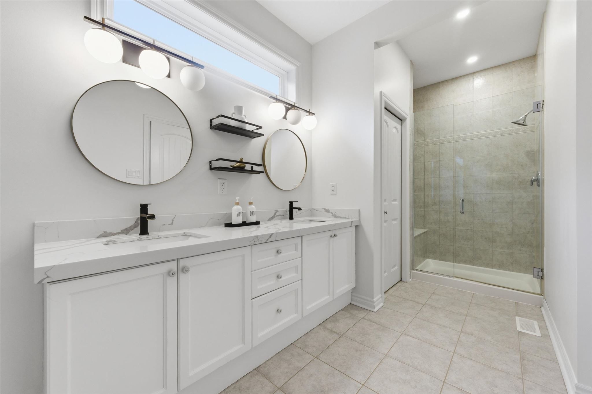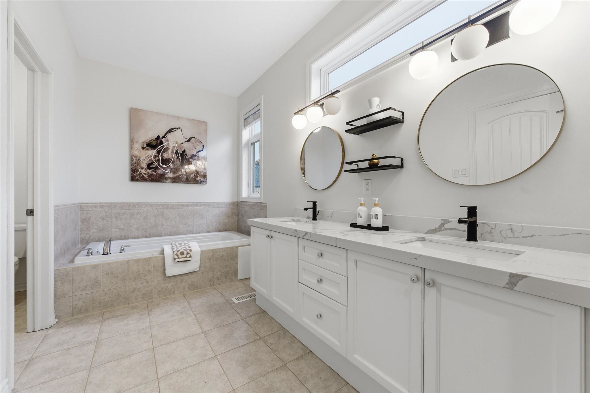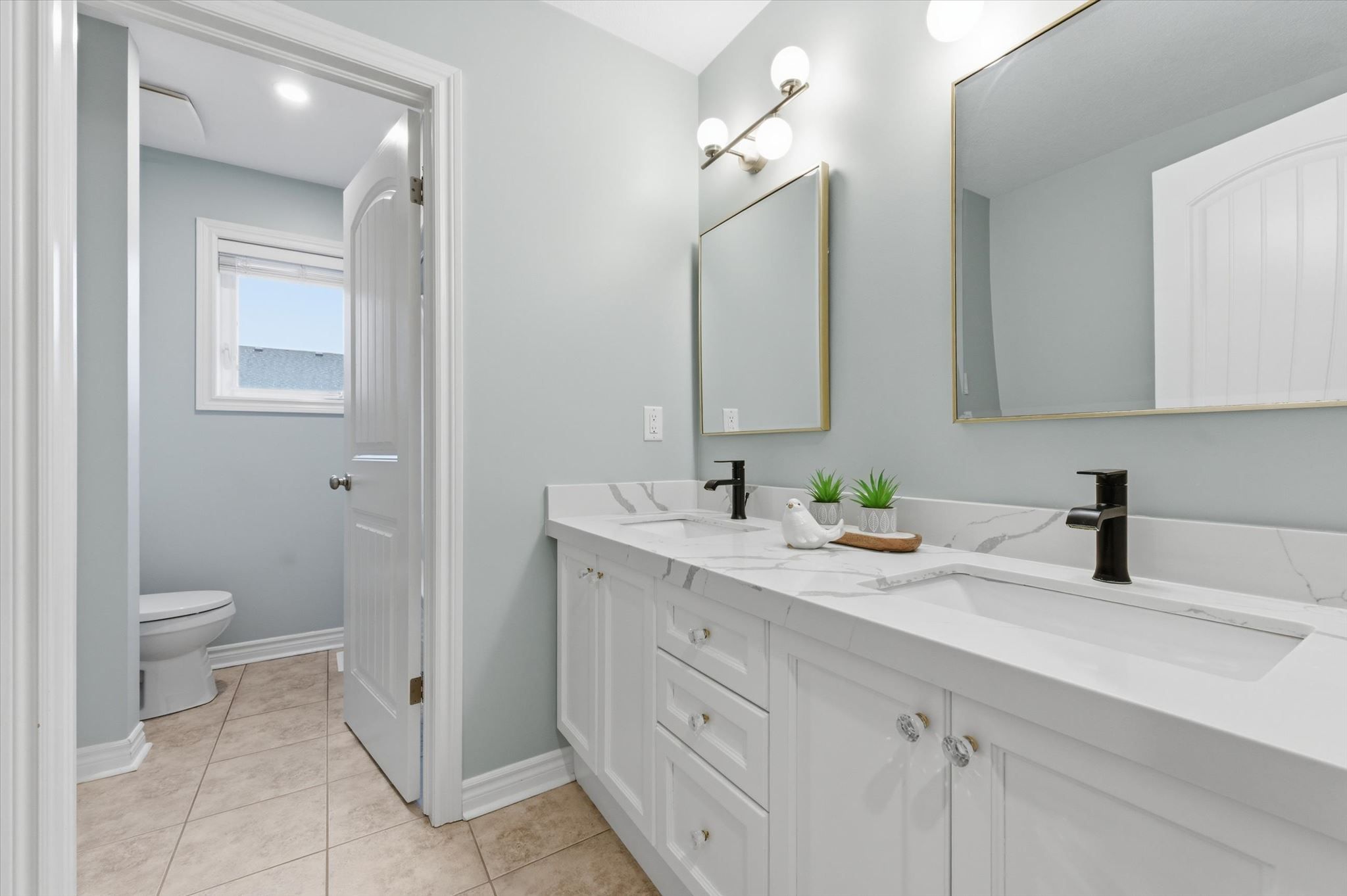Quiet street, over 3,300 sq ft of beautifully finished living space, with a pool! This exceptional 3-bedroom, 4-bathroom home is ready for a new family to enjoy. From the moment you arrive, the striking brick-and-stucco exterior creates a lasting impression, while inside, gorgeous hardwood floors set the tone for the quality and craftsmanship found throughout. A formal dining room, complete with detailed wall mouldings and a statement chandelier, sets the stage for memorable gatherings. Just beyond, the warm and welcoming living room-anchored by a gas fireplace-flows effortlessly into the heart of the home: a stunning, updated kitchen. Here, you'll find stainless steel appliances, sleek quartz counter tops with a seamless back splash, under-cabinet lighting, and an over sized island perfect for casual meals or entertaining. Step out to the rear deck and enjoy easy indoor-outdoor living all season long. A chic powder room and convenient access to the double garage complete this thoughtfully designed level. Upstairs, a bright and versatile open-concept space offers endless possibilities-whether as a cozy family retreat, a productive home office, or a homework hub. Behind double doors, the serene primary suite awaits, featuring elegant wall detailing, a walk-in closet, and a luxurious 5-piece ensuite with a soaker tub and double vanity. Two additional generously sized bedrooms are complemented by a beautifully appointed 5-piece bathroom. The finished basement adds even more living space, with a spacious recreation room and fireplace-ideal for movie nights, entertaining, or simply unwinding. Outdoors, your private backyard oasis is ready to impress. A large deck overlooks the in-ground pool with tranquil waterfall features, for both relaxation and entertaining. Nestled in wonderful westminster woods, where scenic walking trails, great schools, and everyday conveniences are literally just steps away.