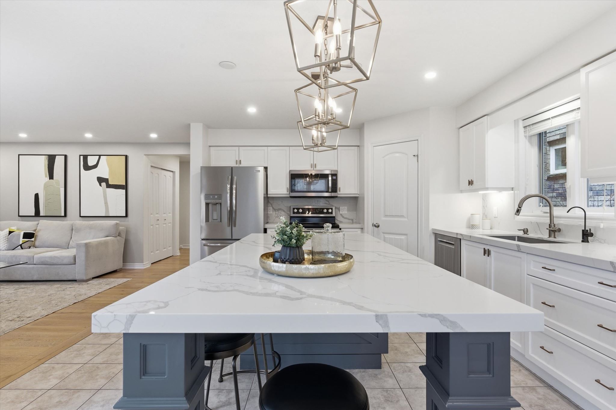 • Updated kitchen featuring stainless steel appliances and a large island.
