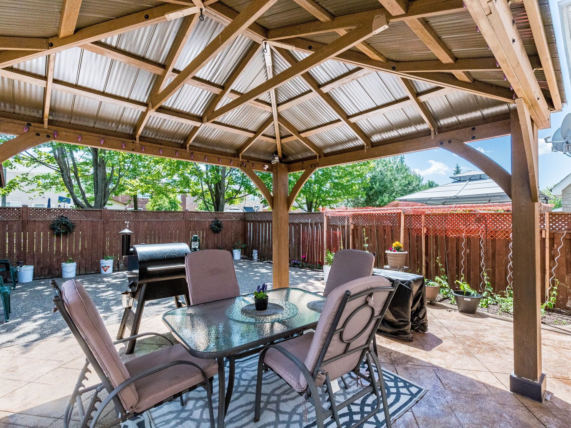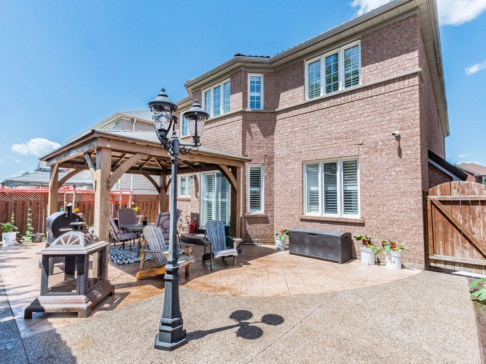Stunning house on a **trail lot** with upgraded detached home on a quiet street & carpet-free throughout. Welcome to this beautifully well-maintained 4-bedroom detached home with newly built legal 2-bedroom legal basement, offering separate entrances and two laundry rooms perfect for extended family or rental income potential. (2nd unit dewlling in 2024) situated on a spacious 40. 03 ft lot, this elegant residence boasts approximately 2,767 sqft, as per the builders floor plan. The property features aggregate-finished front & back, stamped concrete extending through the backyard and around the house, providing durability and style. Inside, the bright and well-kept interior showcases 9-ft ceilings on the main floor, ceramic tile flooring in the kitchen, and sleek quartz countertops with a stylish backsplash. The home is upgraded with california shutters on main & 2nd floor windows, offering both privacy and charm. The primary bedroom includes a walk-in closet and 4pc ensuite bathroom, while the generous- sized bedrooms ensure comfortable living space for the whole family. Second floor two rooms has shared 3-pc washroom. 4+car driveway parking, gazebo for outdoor relaxation, new custom made shed, metal roof installed, new garage doors replaced. Security cameras installed all around the house. This home is a true gem offering elegance, comfort, and functionality. Don't miss this incredible opportunity!