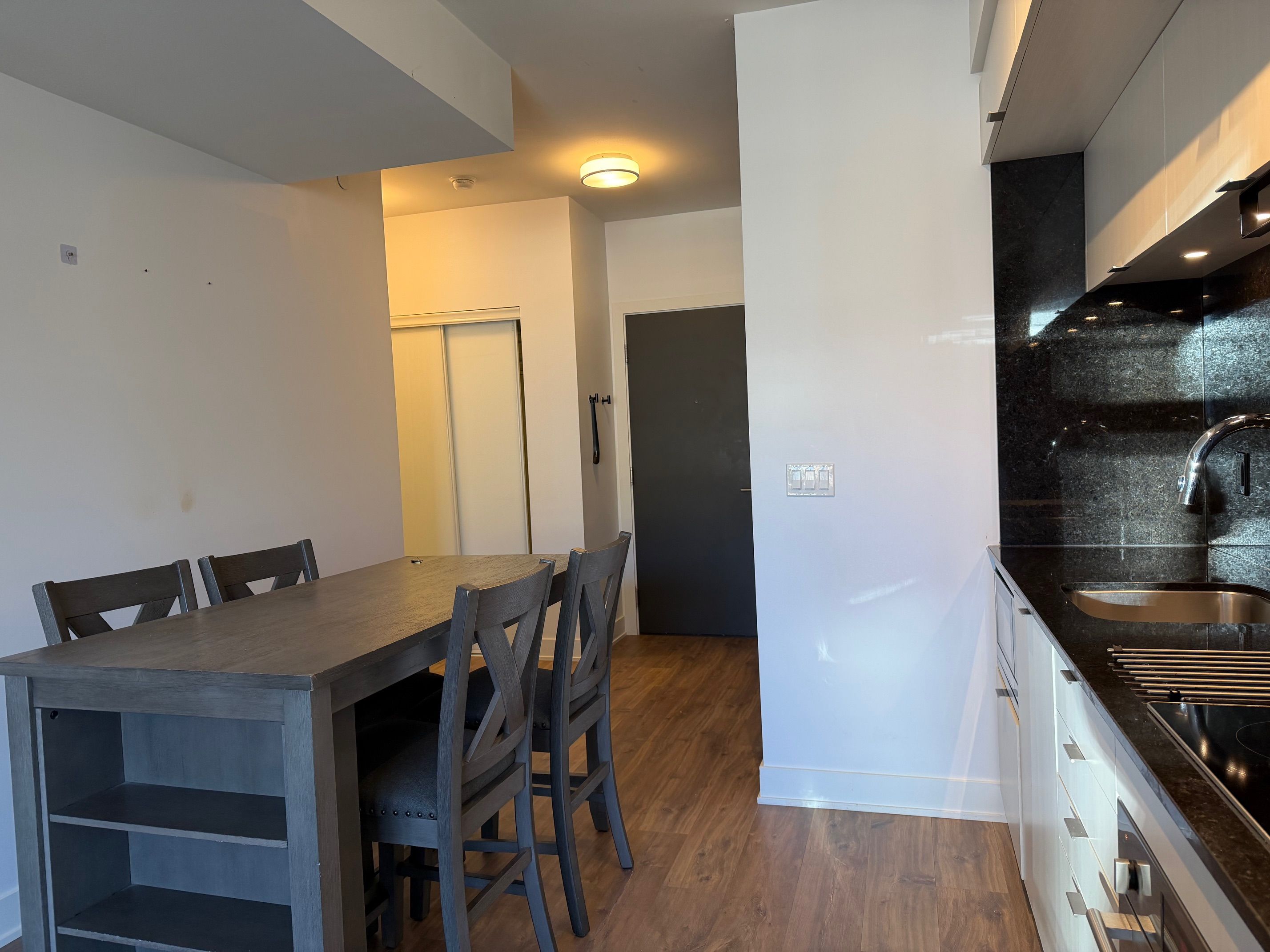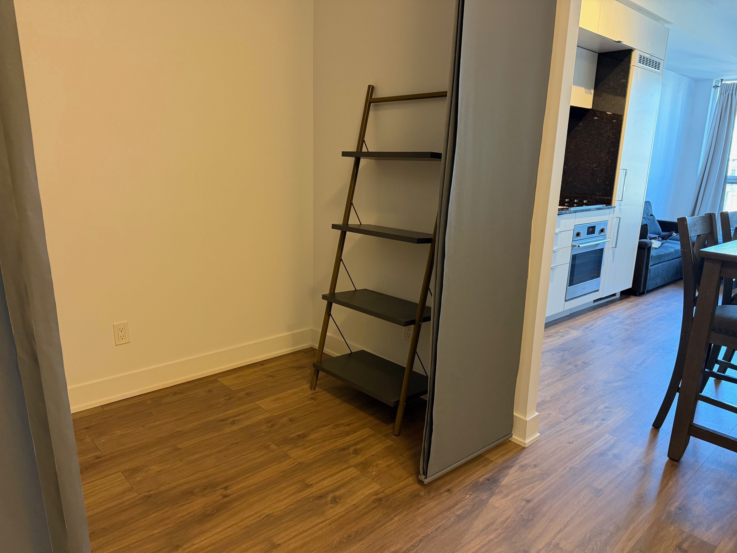 **tridel sq at alexandra park** great functional 1 bedroom plus den with 2 washrooms**laminate floor throughout master room w/walk-in closet & organizer**9'ceilings**beautiful modern kitchen with b/i appliances**balcony with beautiful cn tower view**queen & spadina street cars of your choice**step to queen street west-shops-restaurants-cafes-groceries-street art-festivals**minutes to nearby financial district**one direct ttc ride to u of t & ocad**perfect for young professionals-students-artists**internet is included in the rent**a beautiful couch & a dining set are included for the tenants to enjoy**