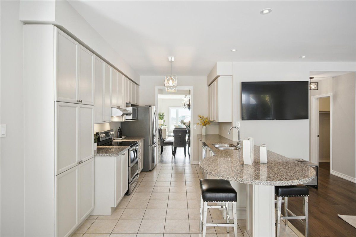 Welcome to 38 carriage house - a rare tribute communities end-unit on a quiet cul-de-sac in prestigious jefferson, surrounded by top-rated schools. Linked only at the garage, this sun-filled home offers 3 spacious bedrooms, 4 bathrooms, and a fully finished basement that provides exceptional flexibility for extended family, work-from-home or additional family space. Backing onto a tranquil conservation area, the private landscaped yard creates a beautiful setting for unwinding, entertaining, and enjoying the outdoors. Inside, newer hardwood flooring, fresh paint, high ceilings, and pot lights create a warm, inviting atmosphere. As an end-unit, the home enjoys exceptional natural light throughout, including an open-concept living/dining area with a cn tower view. The family room - complete with a cozy gas fireplace - flows seamlessly into the kitchen featuring granite counters, generous storage, and a walkout to the backyard. Upstairs, the primary suite offers a peaceful retreat with a 5-piece ensuite and walk-in closet. Two additional bedrooms feature crown moulding, wainscoting, and abundant natural light. The fully finished basement expands the home's versatility with new laminate flooring, a large recreation room with a built-in electric fireplace, a 3-piece bathroom, and a flexible room with a closet and windows. With direct access from the 2-car garage, this level is ideal for extended family, guest stays or work-from-home needs. This is a rare opportunity to enjoy luxury and privacy in one of richmond hill's most sought-after neighbourhoods.