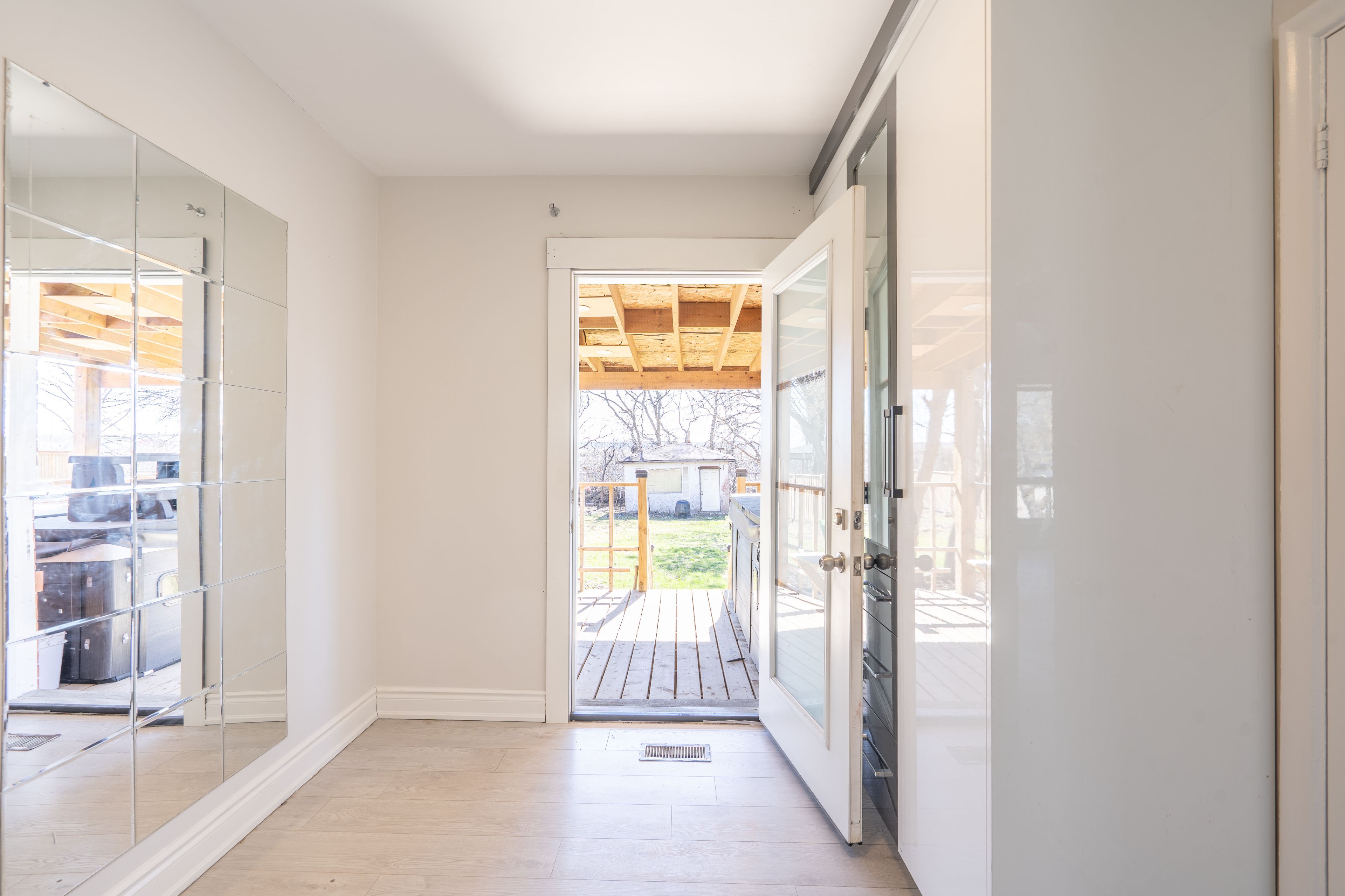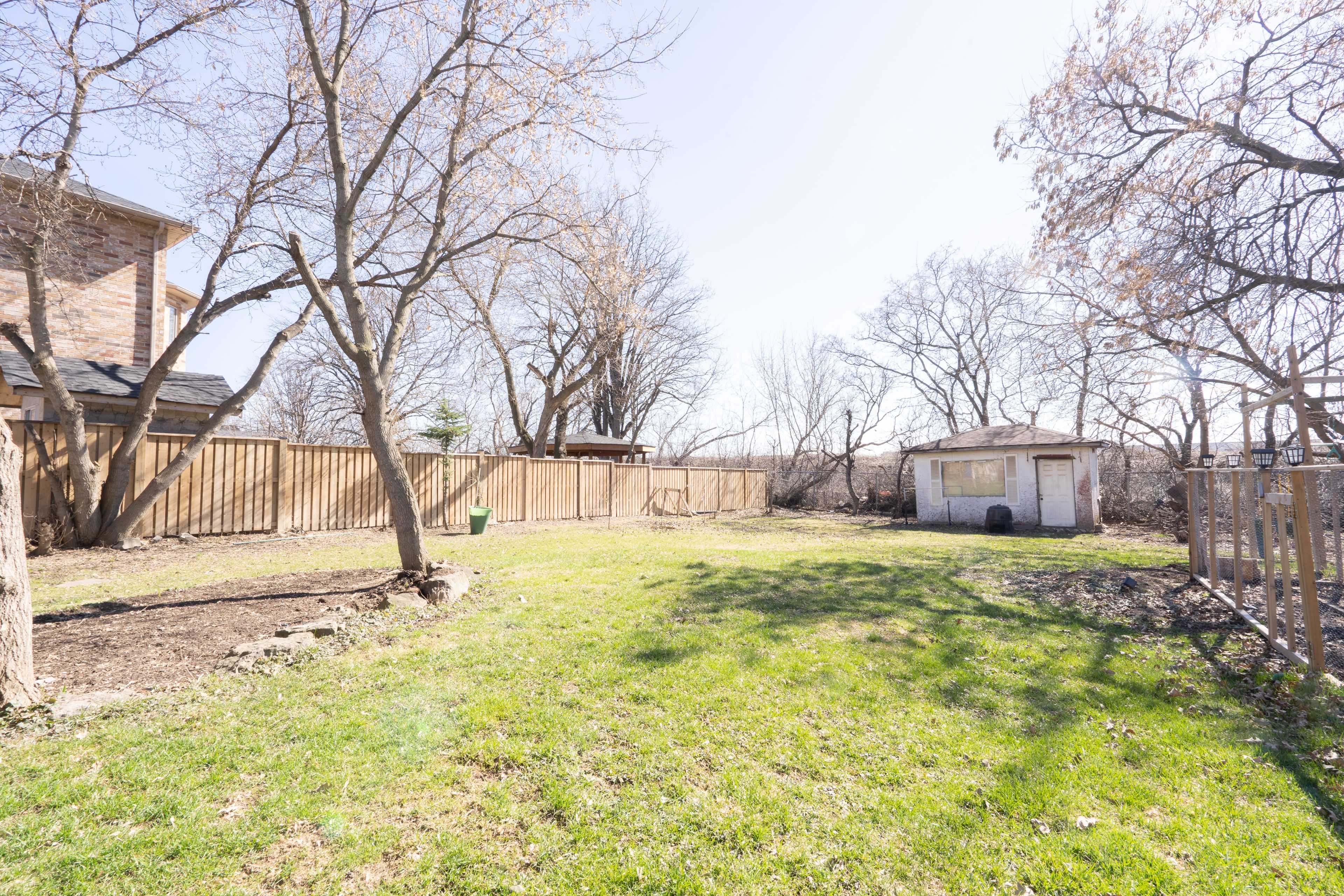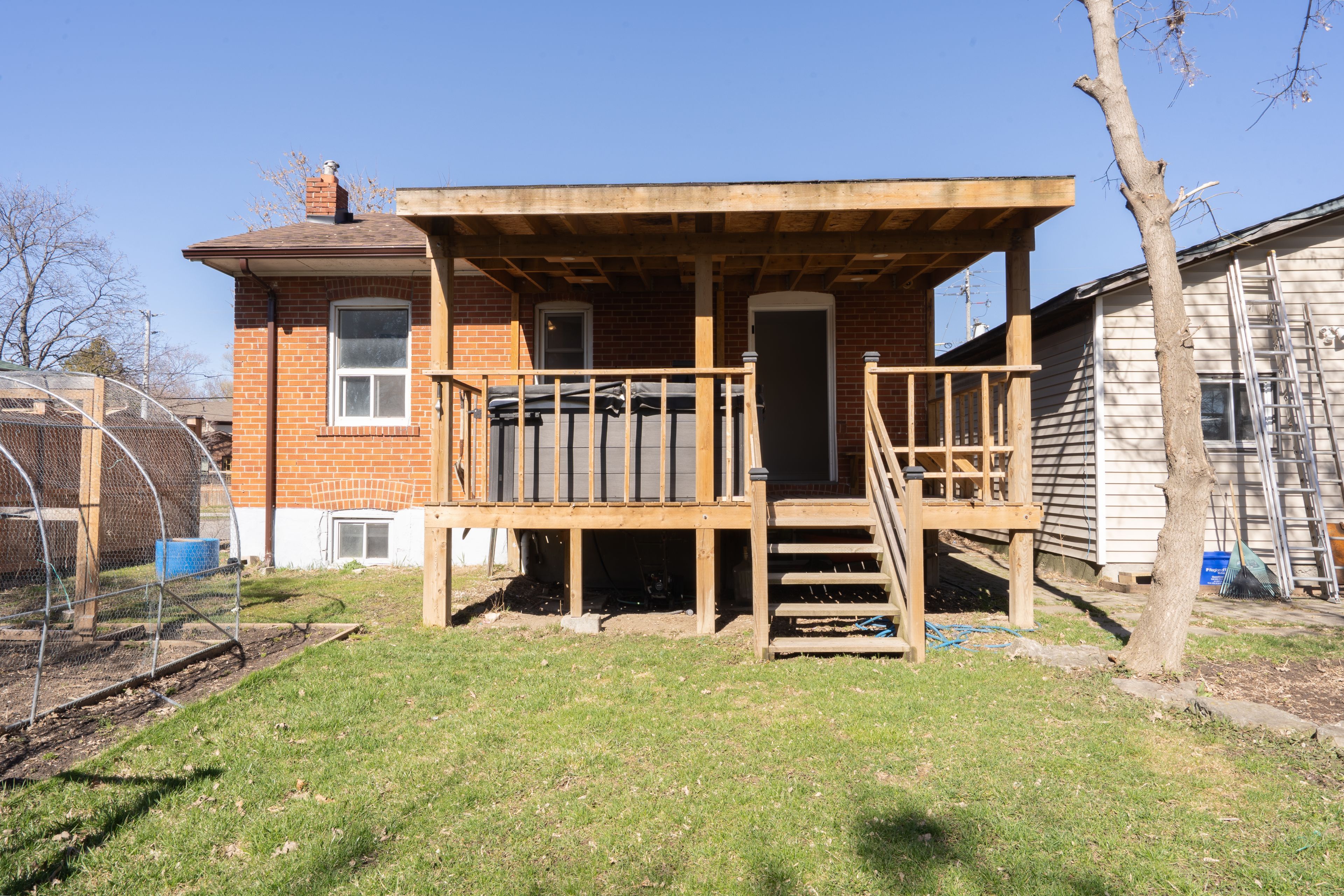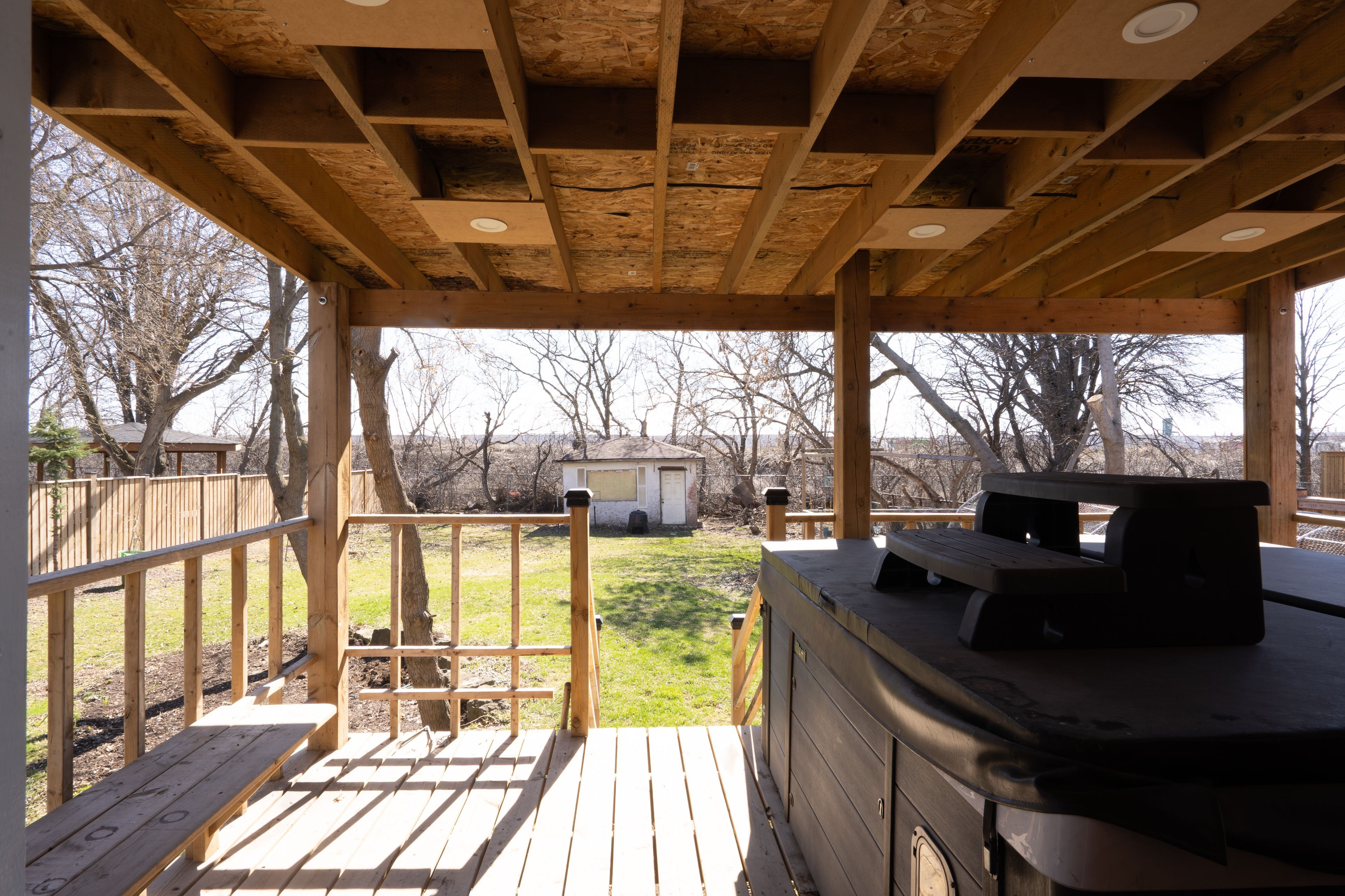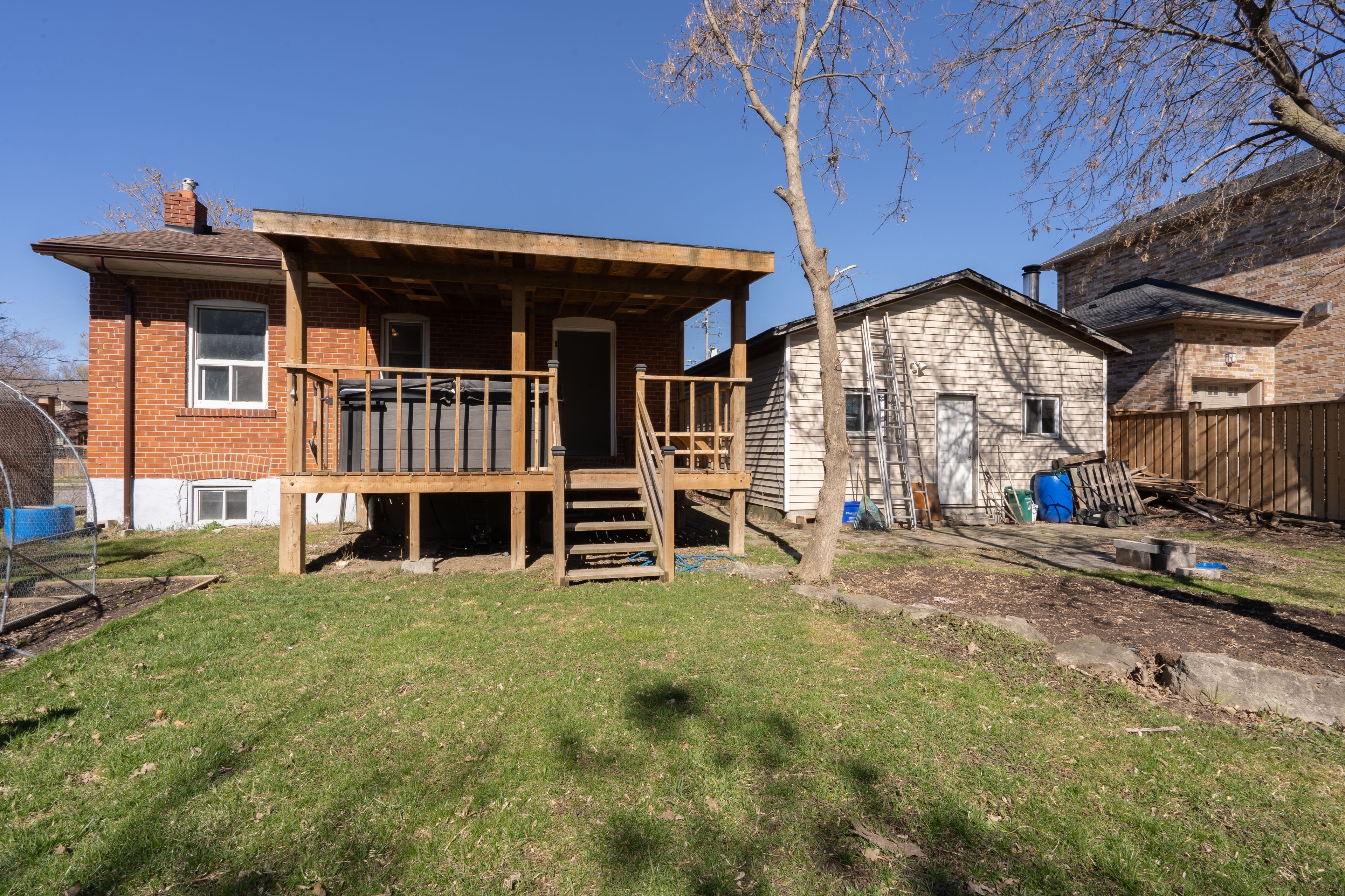 • Private backyard with a wooden deck and no neighbors behind.