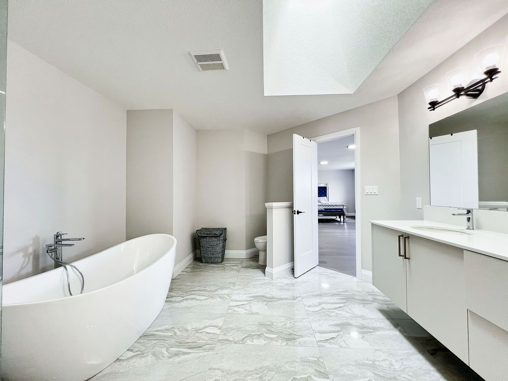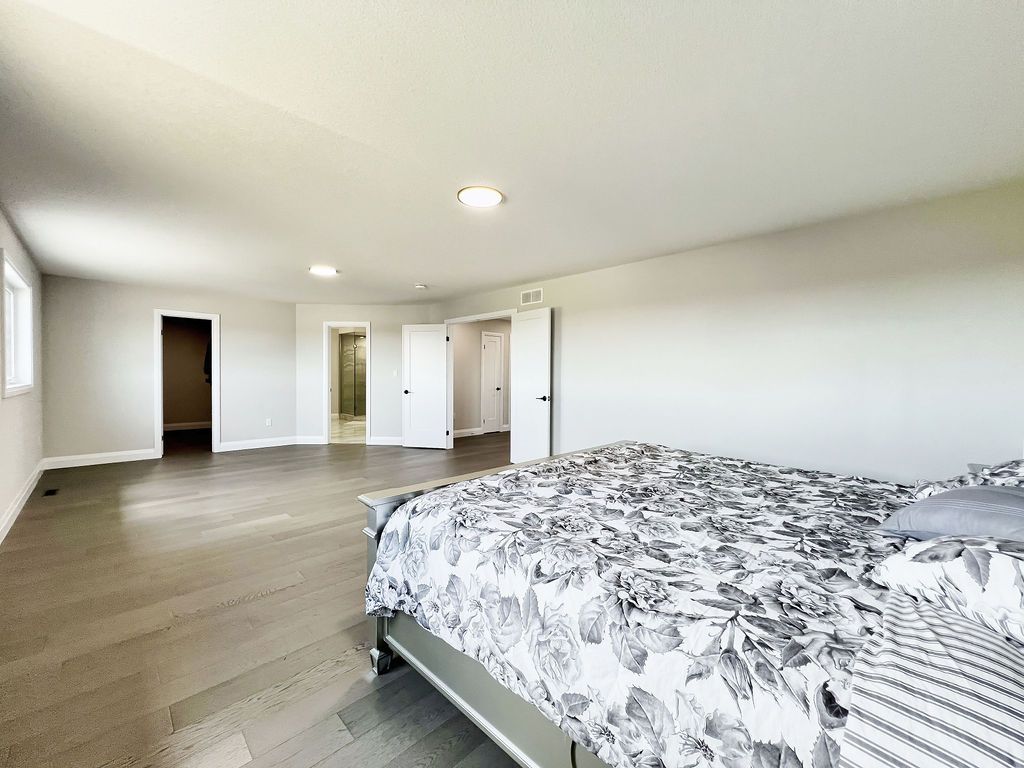 • Master bedroom features a walk-in closet and ensuite bathroom.