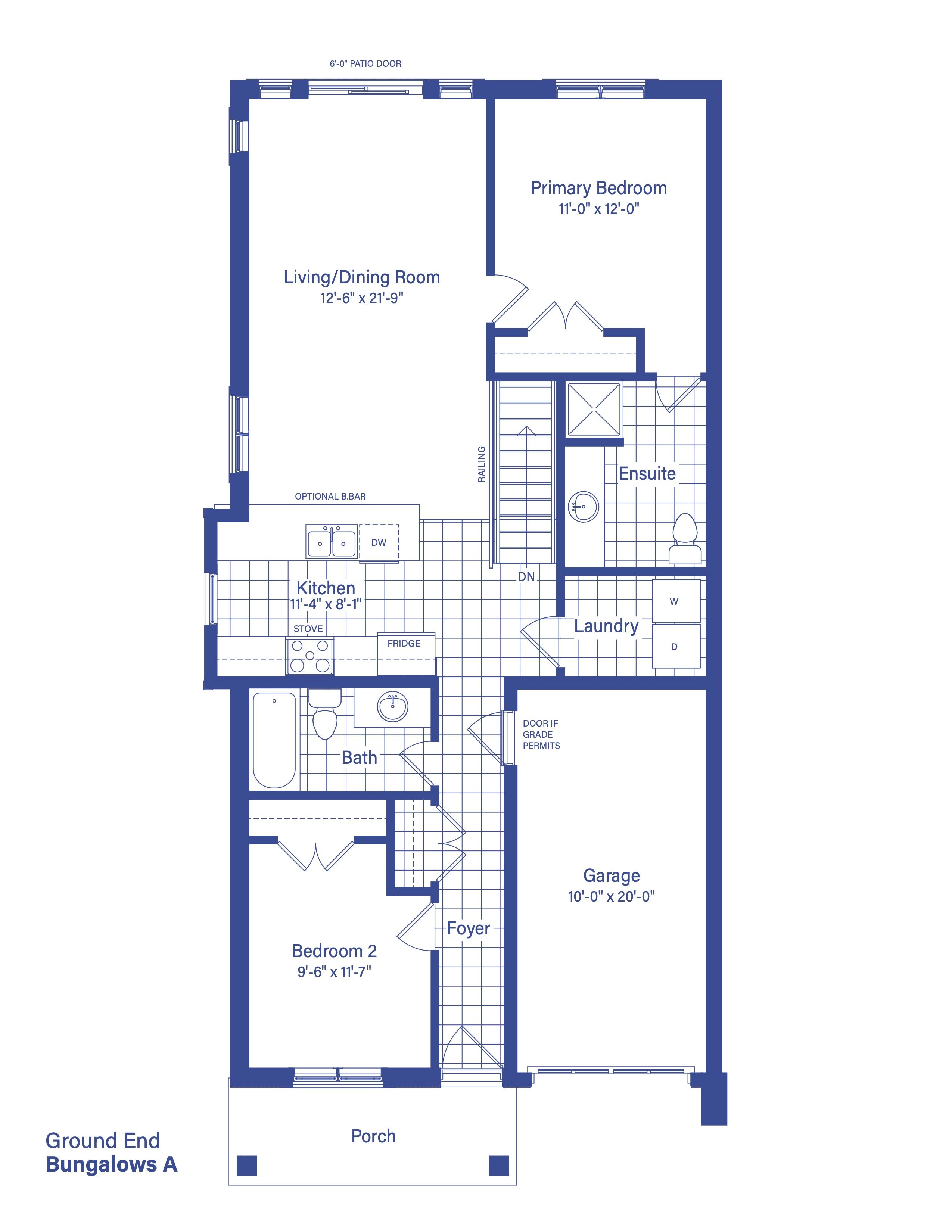 *new release* *available for purchase on a first come first serve basis* *the rest of this bungalow townhouse block is available also* no condo fees! Introducing the to-be-built freehold bungalow townhouses by the prestigious devonleigh homes. These stunning 2-bedroom, 2 full bathroom homes offer almost 1100 sq ft of exquisitely designed living space, with an opportunity to customize the unfinished walkout basements to suit your needs. Each home features a spacious deck adorned with elegant glass railings & wooden louvres for added privacy, perfect for relaxing & entertaining. Step inside & be greeted by the grandeur of 9-ft ceilings on the main floor, creating an airy & open atmosphere. The thoughtful layout includes a bedroom at the front of the house, ideal for guests or a home office, & a luxurious primary suite at the rear, complete with an ensuite bathroom. The heart of the home is the stylish peninsula-style kitchen, seamlessly flowing into the combined living/dining room, making it the perfect space for family gatherings & social events. The convenience of main floor laundry & inside entry from the single-car garage adds to the functionality of this well-designed home. The exterior is equally impressive, boasting a paved driveway, & muskoka stone steps & a charming covered front porch. The meticulously sodded front & rear yards provide a beautiful outdoor space. Modern amenities abound, including natural gas heating, municipal services, & high-speed internet availability, ensuring you have all the comforts of contemporary living. This exceptional property comes complete with a host of desirable standard features & is backed by a new home tarion warranty, giving you peace of mind & confidence in your investment. Embrace the opportunity to own one of these gorgeous homes, combining thoughtful design, & the reliability of devonleigh homes' craftsmanship.