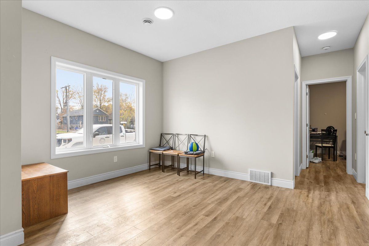 38 cobourg lane, stratford - a modern, thoughtfully designed 4-year-old duplex offering versatility and comfort. The upper unit is currently occupied, while the main floor is available to move-in. Perfect for homeowners who want extra income potential or room for extended family, this property features open-concept kitchens with large islands, stone countertops, vinyl plank flooring, ensuite bedrooms, walk-in closets, full baths with walk-in showers, and bright, airy living spaces. Each unit includes new appliances, full laundry, private entrances, porches, and dedicated parking. With no condo or common fees, you have full control over the property. Ideally located just steps from stratford's vibrant downtown, this duplex combines modern living, convenience, and flexibility - a must-see opportunity!