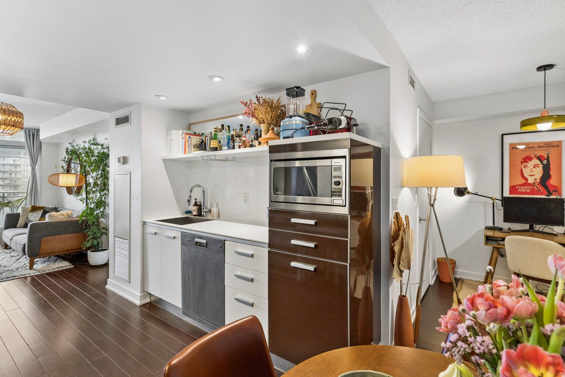 Located in a young, vibrant, downtown community, this 1+den condo is the perfect mix of function and location. Located next to canoe landing park and across the street from the flagship loblaws, everything you need is within walking distance. Stroll down the street to watch the blue jays, or stop for a drink at multiple bars and restaurants along the way. Prefer to be part of the action? Join in a soccer game on the turf pitch at canoe landing, or head barely minutes south for a pleasant walk along the waterfront. Large balcony with sunny lake views for a tranquil evening with a book or with a friend. Work from home? No problem with the den, or the included fold away desk in the bedroom. Have extra stuff? Unit comes with a locker too. Well run building with some of the lowest maintenance fees in the area. Amenities include lots of common outdoor space with bbqs, outdoor hot tub, bike storage, gym and that all-important concierge to receive those packages. Great location, functional design and your next home at panaroma condos!