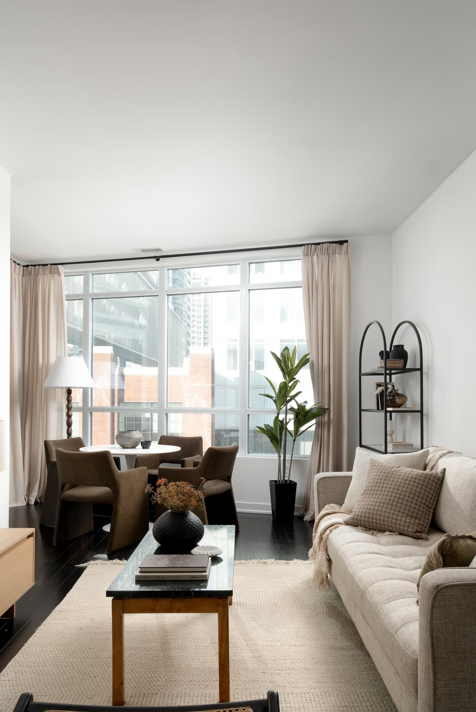 • Bright open-concept living area with floor-to-ceiling windows for natural light.