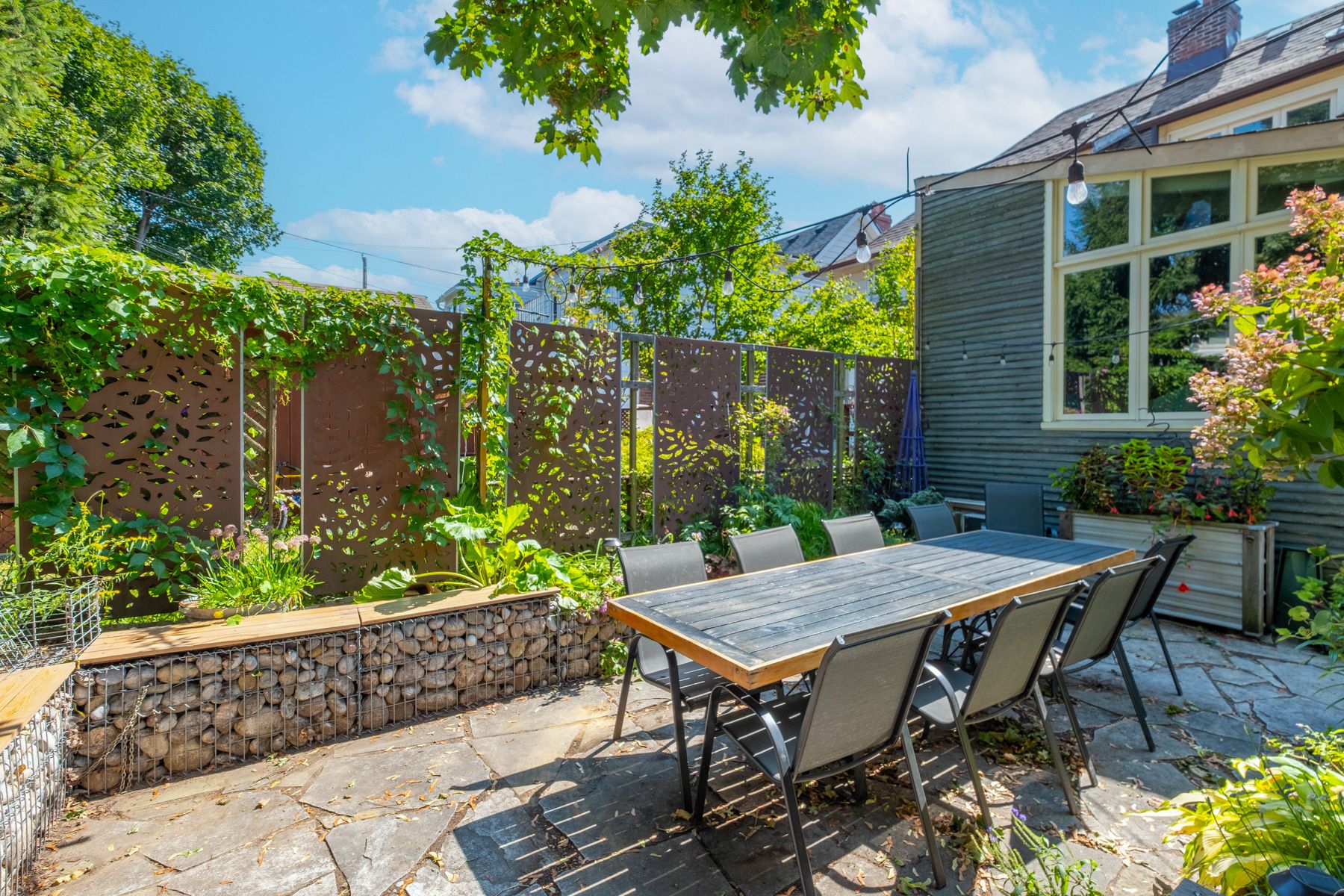 • Beautifully landscaped backyard with a shed for additional storage or projects.