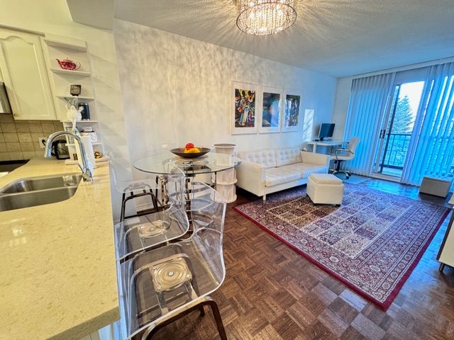 *****all inclusive!!! Furnished!!! Facing south! The unit comes fully furnished with newer hi-end modern furniture! Ideal opportunity to move into this highly desirable richview/edenbridge neighbourhood! Very bright open concept layout with beautiful hardwood flooring throughout &soaring 9' ceilings and no neighbours below! The unit features a fully stocked modern kitchen with a granite countertop, an office setup, a modern dining area, a smart tv, a queen-size bed, closets, a nice washroom with a shower & bathtub, and a sunny balcony. Quiet & meticulously kept condo building! Walk to james gardens park/ botanical garden, steps to ttc stops, close to grocery stores, cafes, golf, tennis courts, bike paths, and more. Short ttc ride to royal york & runnymede subway stations and go transit/ up express. 10-minute drive to the airport! ** short-term, not less than 6 months possible. Great place for work-from-home with quick access to toronto, mississauga & bike/walk park/river trails. No need to buy anything, just bring you suitcase and enjoy!