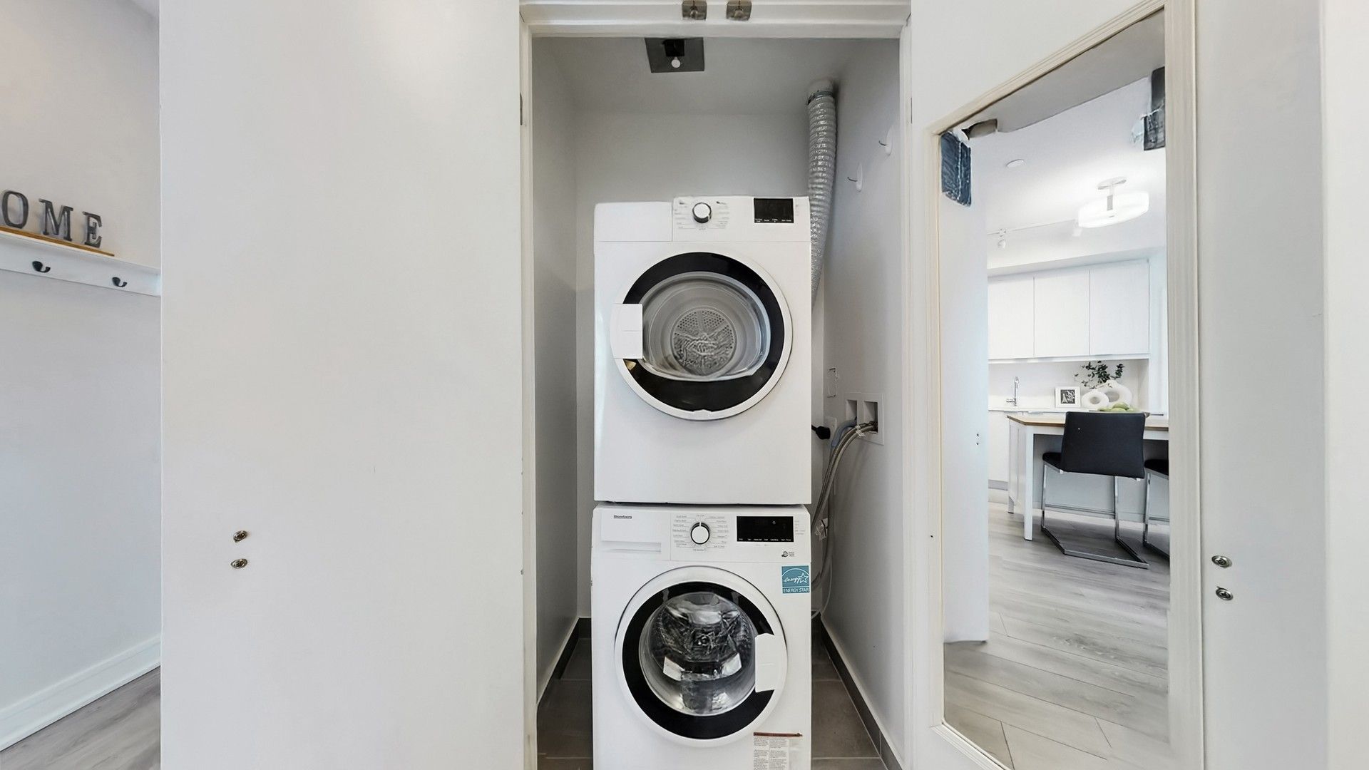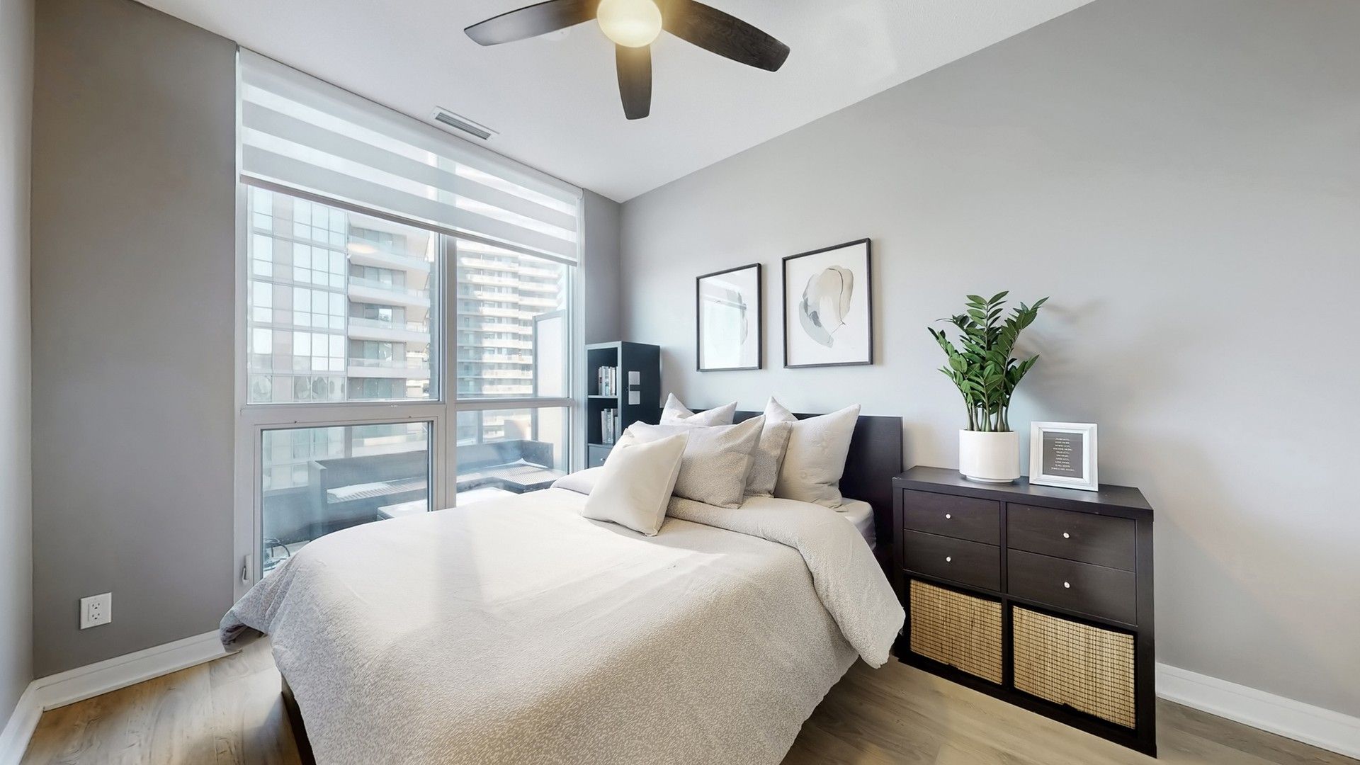 Welcome to elevated urban living in the heart of north york. This modern 2 bedroom 2 bathroom suite features a functional open concept layout with stainless steel appliances, updated blinds, and ceiling fans. The primary bedroom includes a 4 pc ensuite, large double closet, and floor to ceiling windows. Enjoy outdoor living on the 157 sqft balcony. Unbeatable location just minutes to highway 404/dvp and 401, steps fairview mall, shopping, restaurants, and convenient underground access to supermarket fresco. 1 parking included.