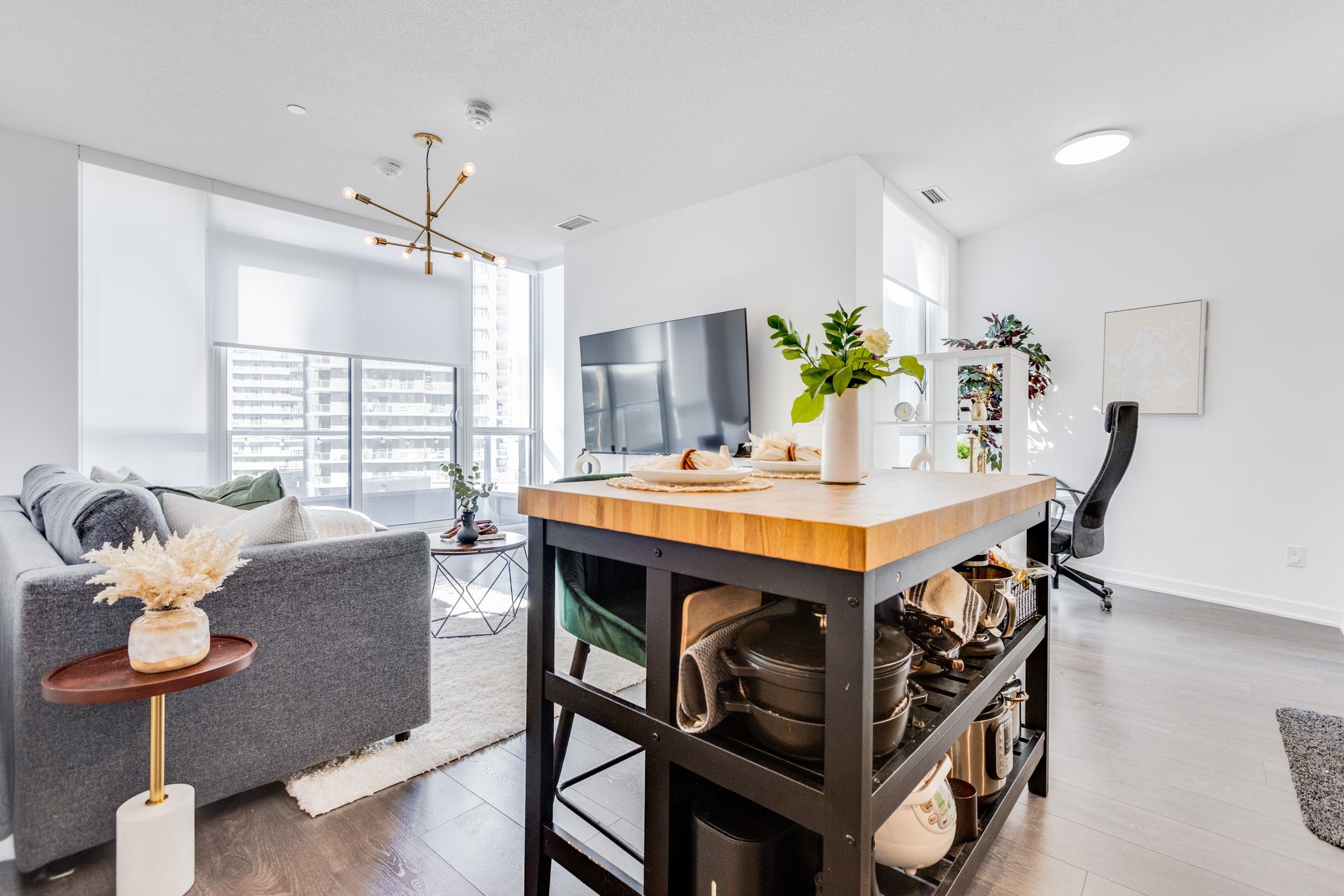 Welcome home! This beautifully maintained 2-bedroom plus den suite is located in the heart of north york's vibrant emerald city community. This bright and spacious layout offers open concept living and dining area ideal for entertaining, floor-to-ceiling windows that fill the home with natural light and and a large 100 sq ft balcony to unwind above the city. Enjoy a modern kitchen with sleek cabinetry and quality finishes. Residents of 38 forest manor road enjoy premium building amenities and unbeatable convenience: freshco grocery in the same building - directly downstairs, steps to don mills station, fairview mall, parks, dining, and easy highway access to 401, 404 and dvp. A perfect opportunity for professionals, families, or investors seeking comfort, style, and location all in one.