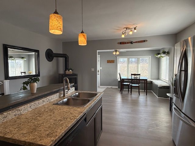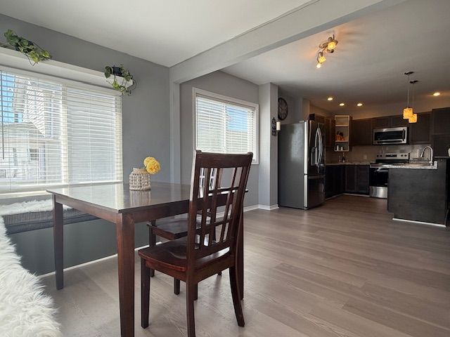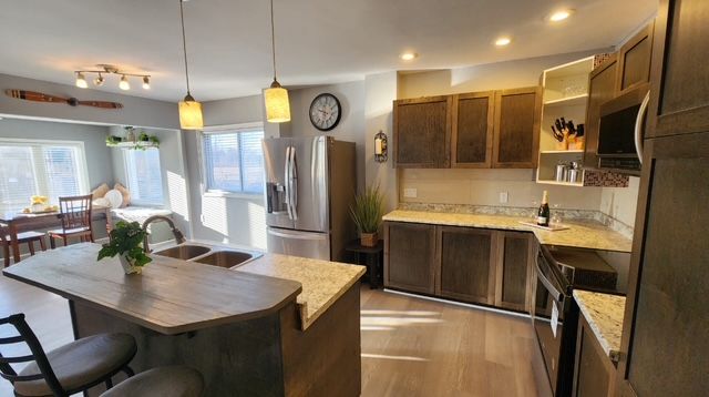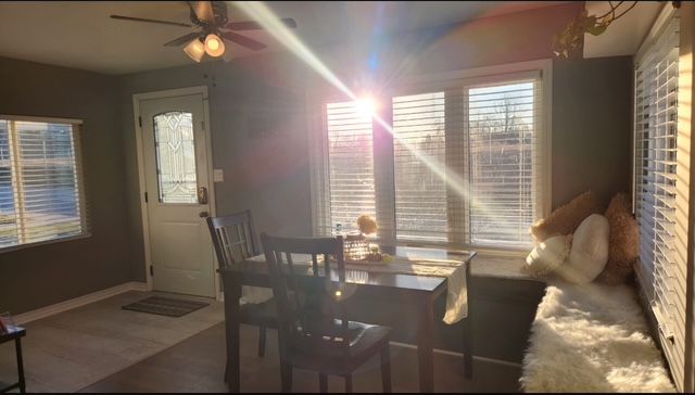 • Natural light fills the open concept dining and kitchen area.