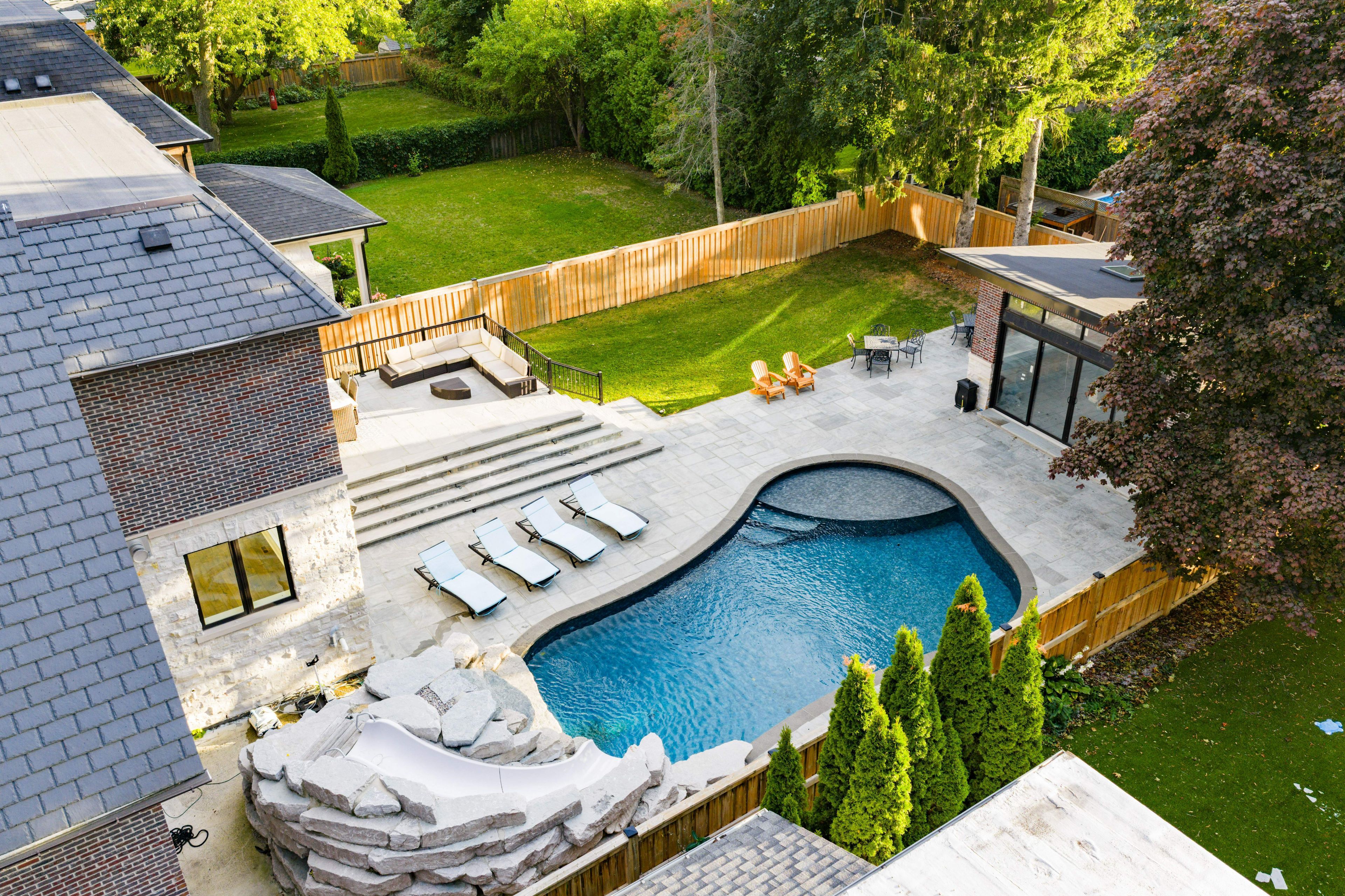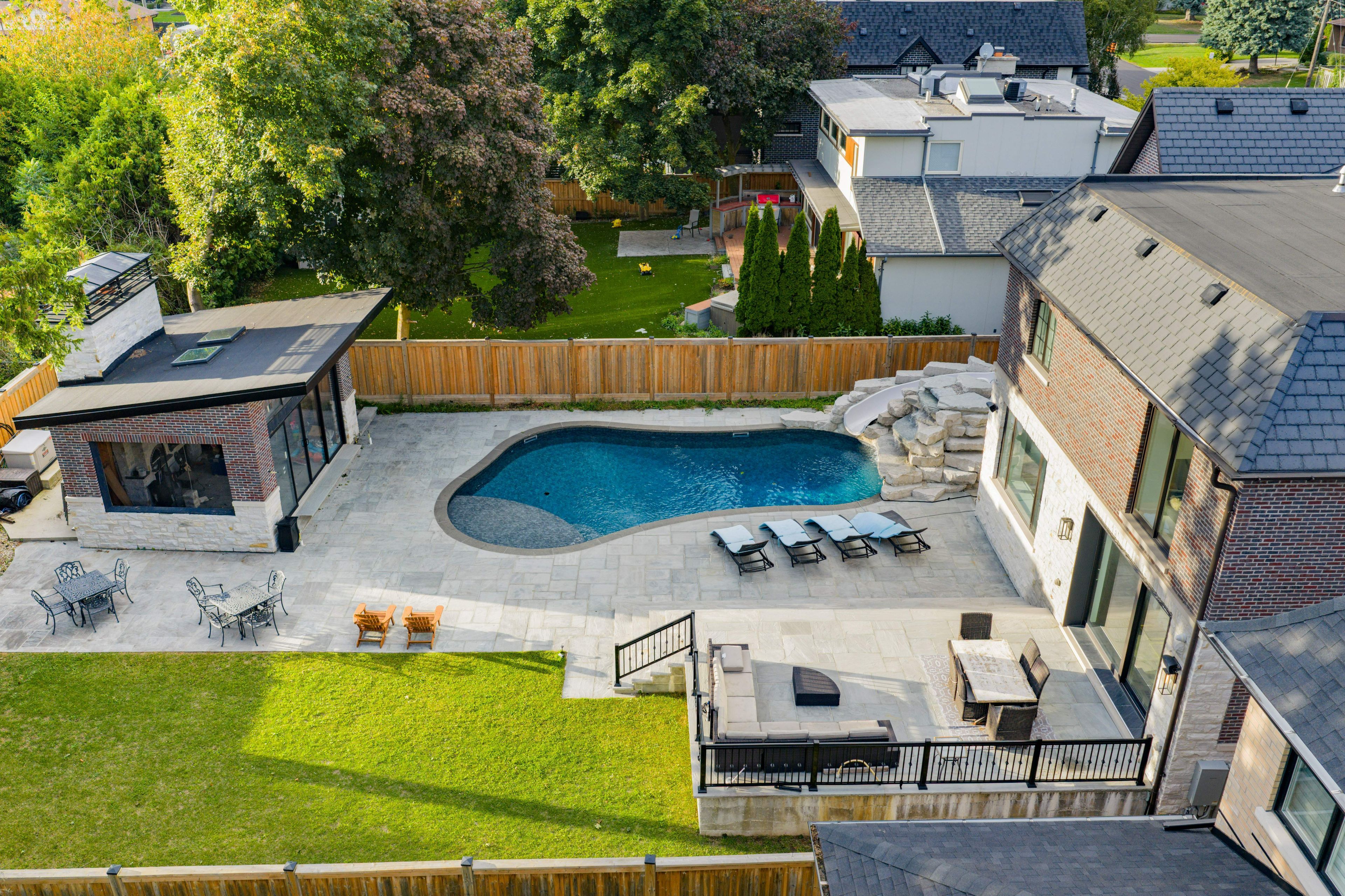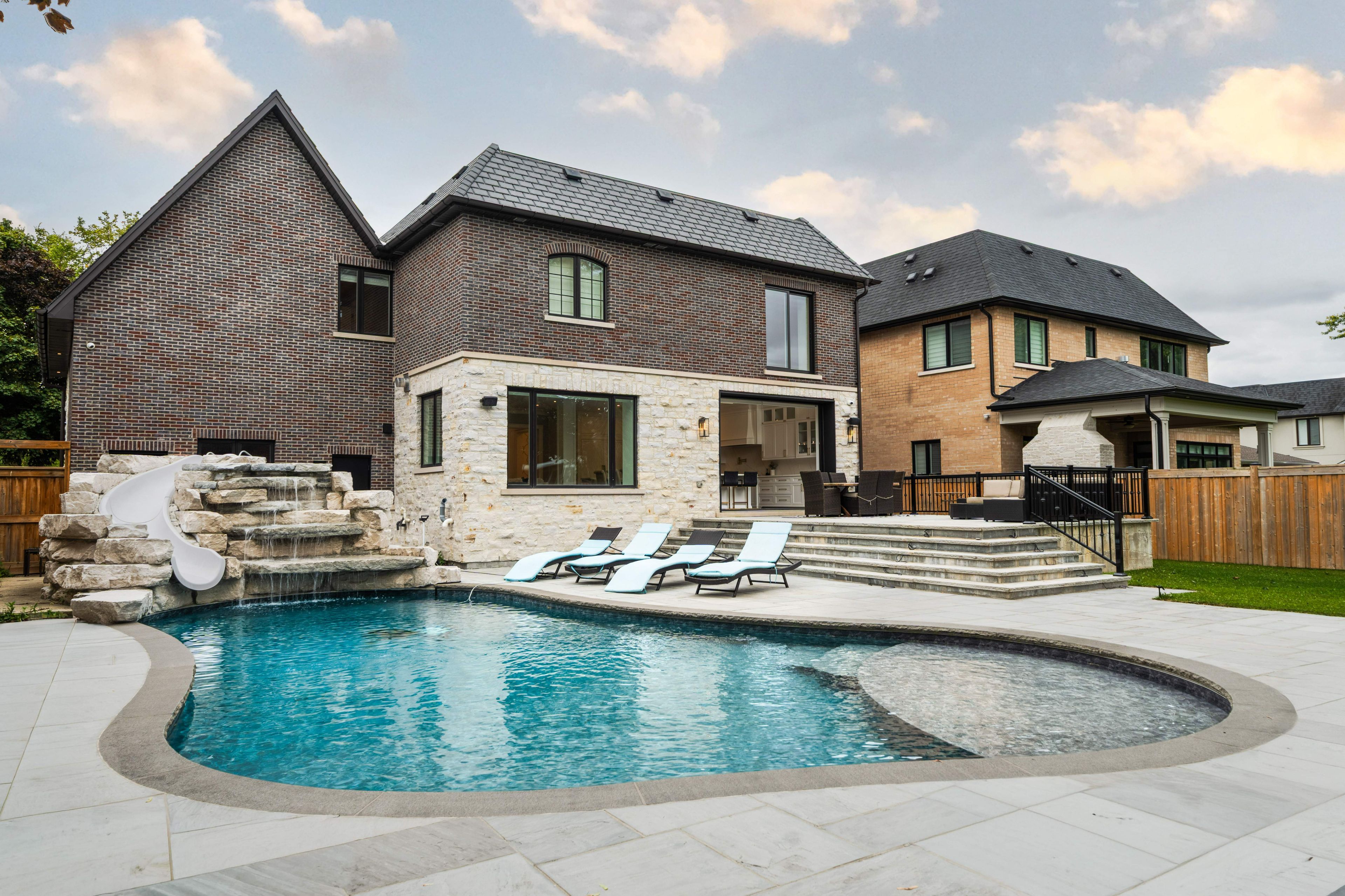 One-of-a-kind custom home with exquisite luxury finishes! With 6,300 sqf of total livable area, this property boasts a magnificent chefs gourmet kitchen, perfect for entertaining guests with its 12-person seating. You'll be captivated by the stunning hardwood flooring that runs seamlessly throughout the entire home. With 4 bedrooms total and 6 bathrooms, including 3 ensuites, every family member can enjoy their own private sanctuary. Basement and upper floors feature heated floors, providing ultimate comfort. Master bedroom, boasting 16 ft vaulted ceilings that create a grand and inviting atmosphere. The main level features 10 ft ceilings, with an impressive 18 ft open space that extends all the way to the upper level, creating an open and airy ambiance. Indulge in the ultimate movie-watching experience in the fully functioning 1930s-esque movie theater, complete with a concession stand, custom speakers, and tiered 2-level seating. Located in the sub-basement, this unique feature ensures complete soundproofing for uninterrupted enjoyment. Step outside and be transported to your own private oasis. A 12x10 window wall leads you to the breathtaking outdoor space, featuring a massive exotic lagoon-style saltwater pool. Complete with a built-in rock wall waterfall and slide, this pool is the epitome of luxury and relaxation. But the extravagance doesn't end there! This property also includes a secondary house with full heating and ac, allowing you to enjoy all seasons comfortably. The secondary house features a gorgeous built-in brick pizza oven and fireplace. With a heated driveway and rear yard walkway! Don't miss out on the opportunity to call this extraordinary custom home your own. Experience the epitome of luxury, craftsmanship, and unparalleled design.