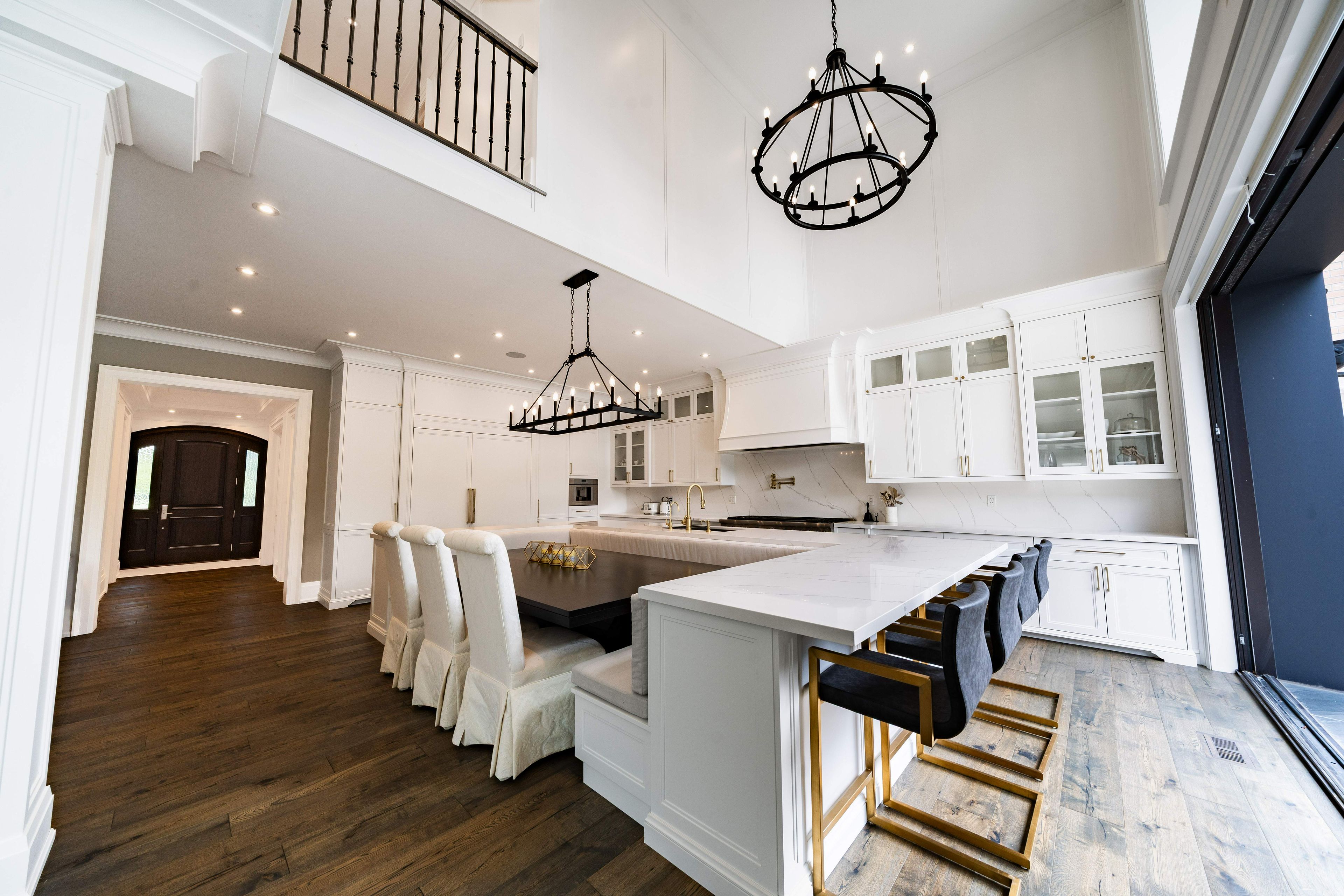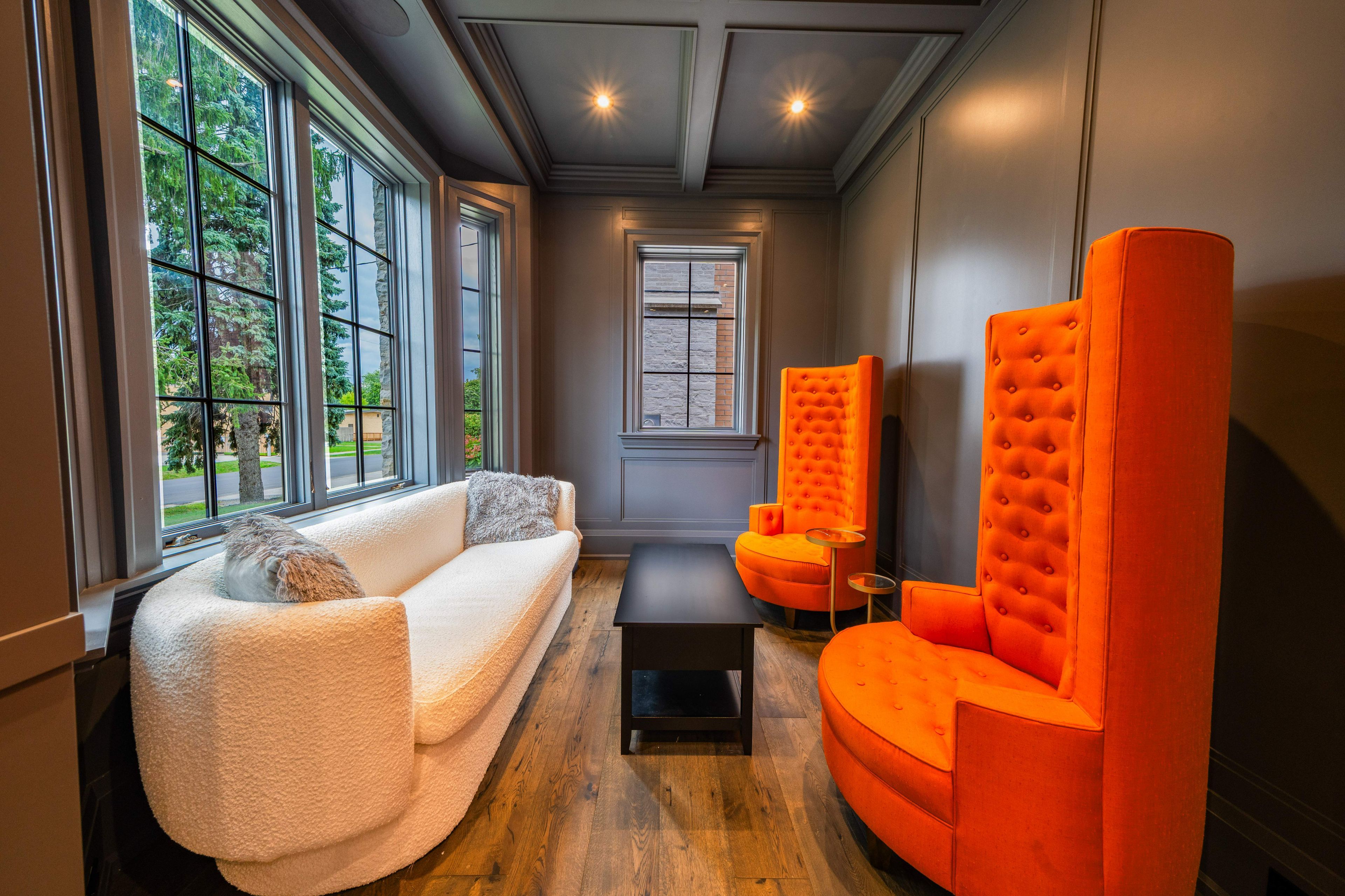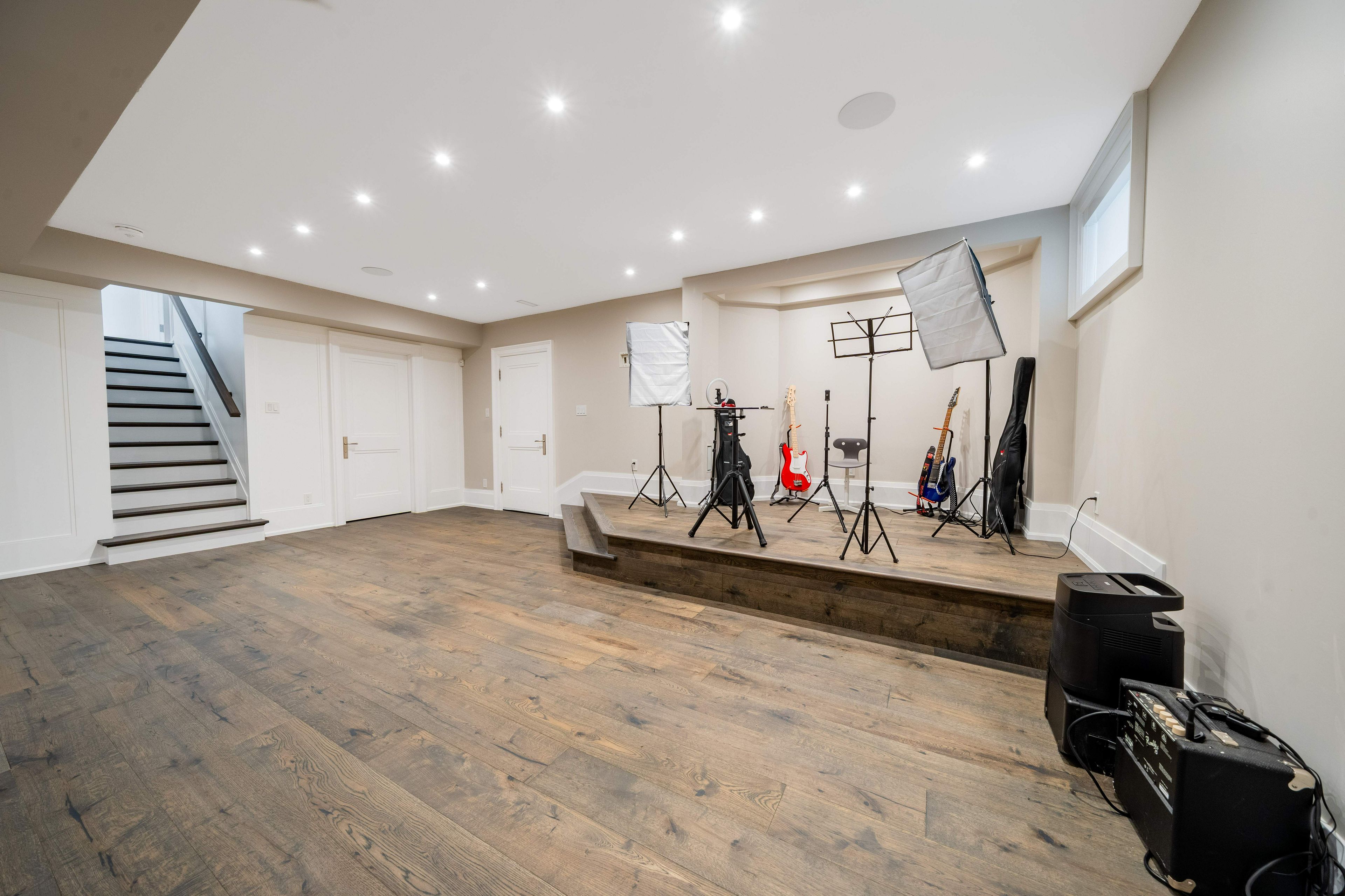 One-of-a-kind custom home with exquisite luxury finishes! With 6,300 sqf of total livable area, this property boasts a magnificent chefs gourmet kitchen, perfect for entertaining guests with its 12-person seating. You'll be captivated by the stunning hardwood flooring that runs seamlessly throughout the entire home. With 4 bedrooms total and 6 bathrooms, including 3 ensuites, every family member can enjoy their own private sanctuary. Basement and upper floors feature heated floors, providing ultimate comfort. Master bedroom, boasting 16 ft vaulted ceilings that create a grand and inviting atmosphere. The main level features 10 ft ceilings, with an impressive 18 ft open space that extends all the way to the upper level, creating an open and airy ambiance. Indulge in the ultimate movie-watching experience in the fully functioning 1930s-esque movie theater, complete with a concession stand, custom speakers, and tiered 2-level seating. Located in the sub-basement, this unique feature ensures complete soundproofing for uninterrupted enjoyment. Step outside and be transported to your own private oasis. A 12x10 window wall leads you to the breathtaking outdoor space, featuring a massive exotic lagoon-style saltwater pool. Complete with a built-in rock wall waterfall and slide, this pool is the epitome of luxury and relaxation. But the extravagance doesn't end there! This property also includes a secondary house with full heating and ac, allowing you to enjoy all seasons comfortably. The secondary house features a gorgeous built-in brick pizza oven and fireplace. With a heated driveway and rear yard walkway! Don't miss out on the opportunity to call this extraordinary custom home your own. Experience the epitome of luxury, craftsmanship, and unparalleled design.