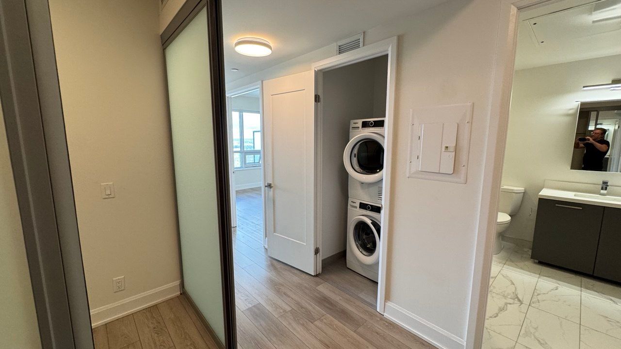Welcome to this stunning 1+den suite on the 26th floor, offering a bright and spacious 648 sq ft layout with stylish finishes and a highly functional floor plan. Enjoy unobstructed north-facing views that provide beautiful natural light throughout the day while keeping the home comfortably cool in the summer. Completed in 2022, this modern building offers contemporary design, top-tier amenities, and exceptional convenience. The open-concept living and dining area is ideal for both everyday comfort and entertaining, featuring a seamless flow that leads to the private balcony. The kitchen showcases sleek cabinetry, stainless steel appliances, and efficient use of space. The bedroom offers excellent proportions and a large window, making it both bright and relaxing. A standout feature of this unit is the enclosed den-complete with two sliding doors-providing privacy and versatility rarely found in newer condos. The den can easily function as a second bedroom or office/quiet study space, making this home suitable for professionals, small families, or anyone seeking extra room. Additional features include in-suite laundry, a modern bathroom, quality finishes, and a welcoming foyer area. Residents enjoy access to excellent building amenities such as a fitness center, party room, concierge, visitor parking, and more-perfect for today's urban lifestyle. Located in a highly desirable area, you're minutes from transit, shopping, restaurants, parks, and daily conveniences. Whether you're a first-time buyer, investor, or downsizer seeking comfort and modern living, this 1+den suite offers outstanding value, a smart layout, and a prime location in one of the city's most vibrant communities.