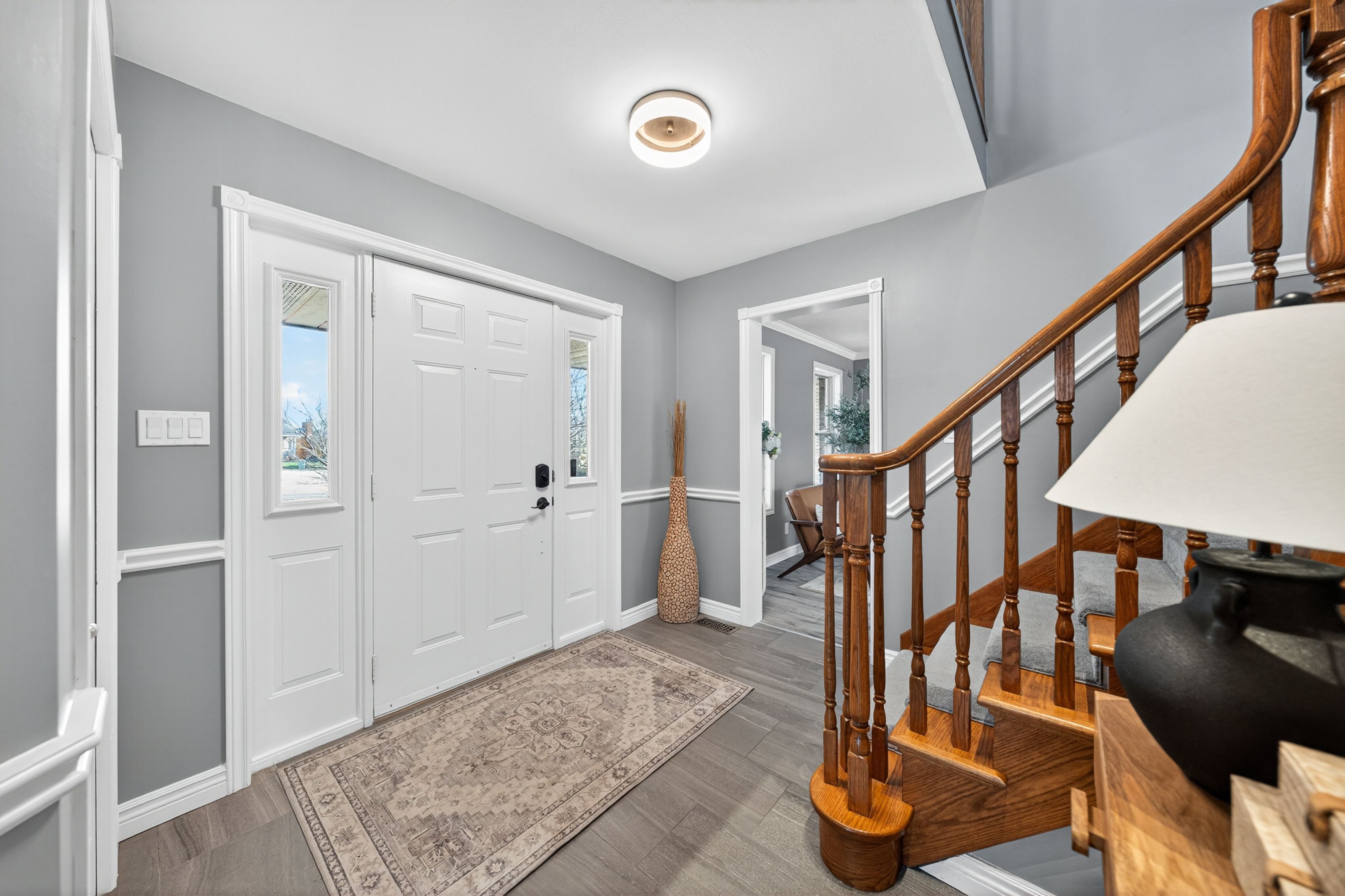 Beautiful 2-storey home that sits on just under . 25 acres in a quiet court! Step into a warm and inviting foyer that immediately makes you feel at home. The living room flows into the dining room, creating an open and inviting space. Large windows fill the area with natural light, enhancing the bright and airy feel, while offering a warm and comfortable atmosphere you'll love coming home to. The eat-in kitchen features a gas stove and stainless steel appliances while opening seamlessly to the family room. The family room features a cozy gas fireplace-perfect for relaxing evenings-and offers direct access to the backyard, making indoor-outdoor living effortless. Additional main floor features include a convenient powder room and a functional laundry/mudroom with direct access to the double garage. Upstairs, you'll find three generously sized bedrooms, offering plenty of space for the whole family. Indulge in the comfort of this spacious main bathroom, while the primary ensuite is a true retreat, complete with a large soaker tub-perfect for unwinding at the end of the day. The finished basement offers excellent in-law suite potential, providing both comfort and versatility. A spacious room-currently used as a bedroom-adds flexible living options, while the large washroom features heated floors and a walk-in shower. The fully finished rec room offers the perfect space to relax and entertain. With plenty of room for a large seating area, games, or even a home theatre setup, this versatile space can easily adapt to your lifestyle. The backyard is your own private retreat that features an inground pool and plenty of green space for kids to play, entertaining guests, or simply relaxing outdoors. With room to host, unwind, and enjoy, it's the perfect extension of the home for making lasting memories. Located minutes from hwy 401, downtown, and amenities. Don't miss your chance to make this incredible home yours-book your private showing today!