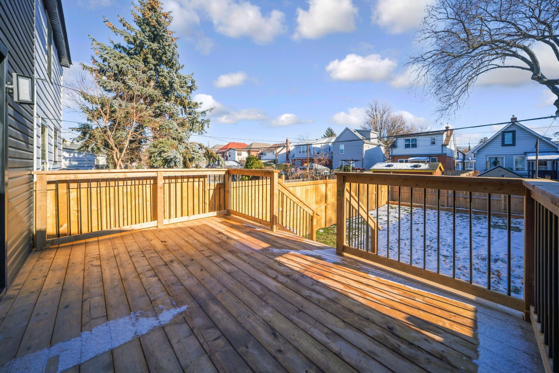 Gage park family-friendly neighbourhood. Fully renovated, custom-designed home - move-in ready! This impeccably renovated property showcases top-to-bottom upgrades completed with city permits, blending modern luxury with functional design. Enjoy a stunning custom kitchen with a waterfall countertop and stainless steel appliances, complemented by brand-new flooring, doors, stairs, railings, and fresh designer paint throughout. The home features a fully upgraded main bathroom with contemporary finishes and an added new powder room. All new plumbing throughout the entire house and completely new electrical wiring with an upgraded 200-amp panel with esa certificate. Exterior enhancements include new siding on both the front and back, a new rear deck, fence, inviting front porch, and refreshed landscaping that elevates curb appeal. Additional features include a new ac unit, improved insulation for energy efficiency, and a dedicated ev charger receptacle, offering the perfect blend of comfort, style, and modern living. Within walking distance to king street (lrt), parks, schools, library, community centre, and much more.