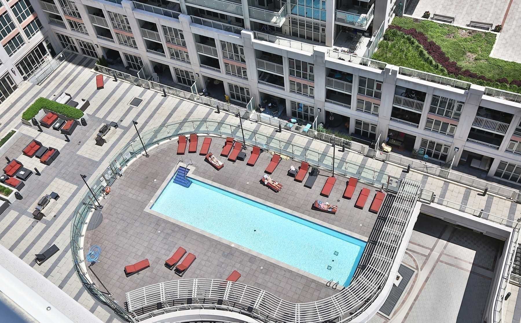 Welcome to 38 grand magazine - where city living meets a resort-style vibe! This bright and spacious 1+den (den can be 2nd bedroom), 2 full bathroom suite features an incredible layout and a massive terrace looking out onto the outdoor pool - perfect for morning coffee or relaxing summer evenings. Even better, the terrace offers direct access to the outdoor pool and bbq area, making it feel like your own private getaway right at home. The versatile den easily works as a second bedroom or a stylish home office, giving you great flexibility. Enjoy a modern kitchen with granite countertops and stainless steel appliances. Residents enjoy fantastic amenities including a fitness centre, party room, concierge, and visitor parking - everything you need for easy, elevated urban living. Set in one of the city's most vibrant neighbourhoods, you're just minutes to parks, shopping, restaurants, and everyday essentials plus the convenience of a streetcar right outside your door with direct access to union station. A perfect blend of comfort, convenience, and lifestyle!