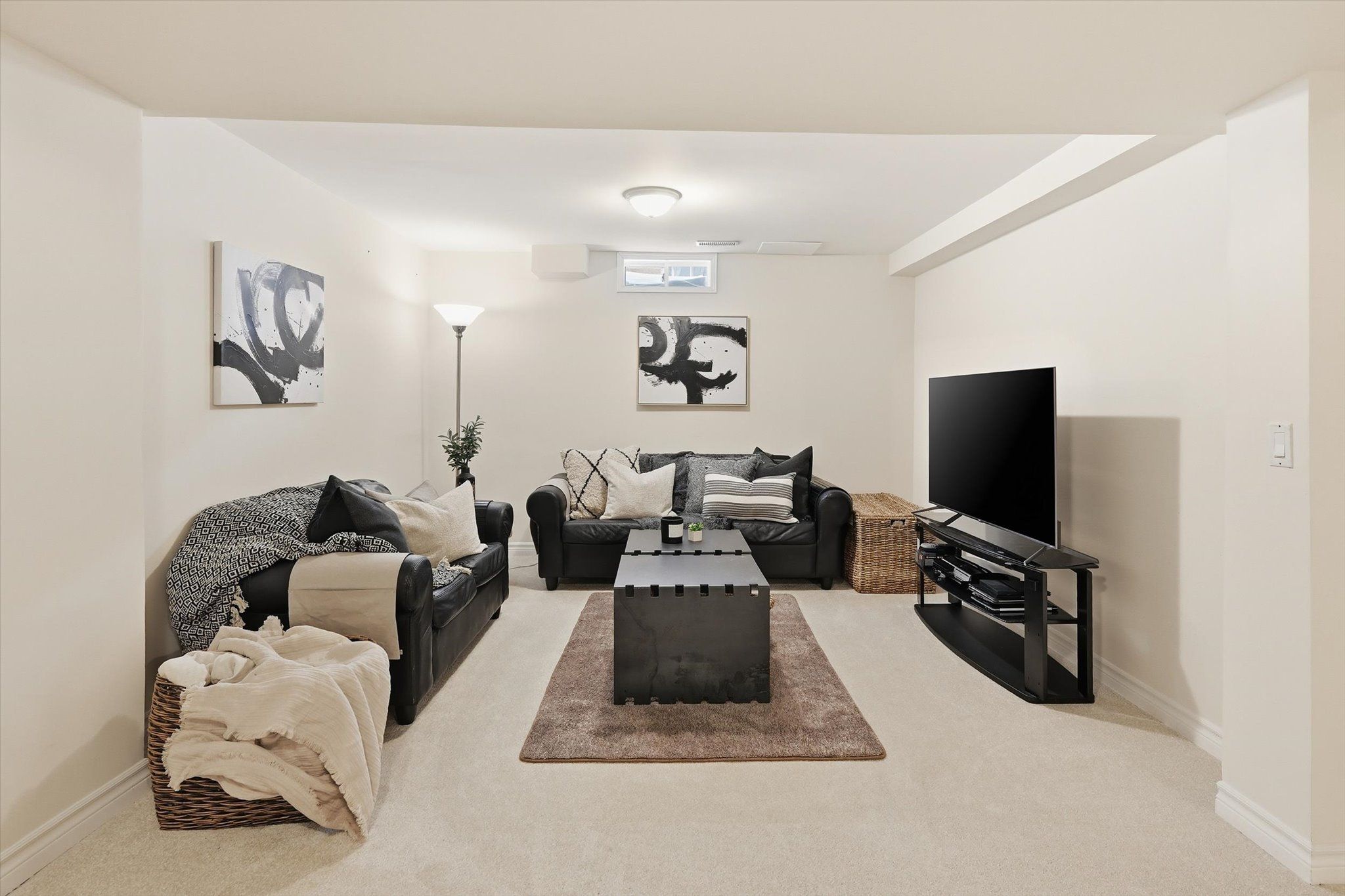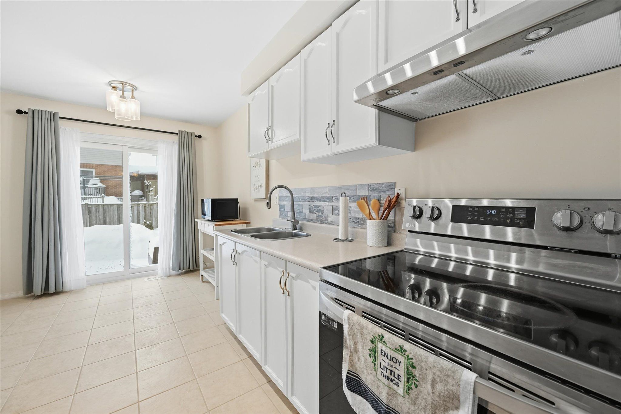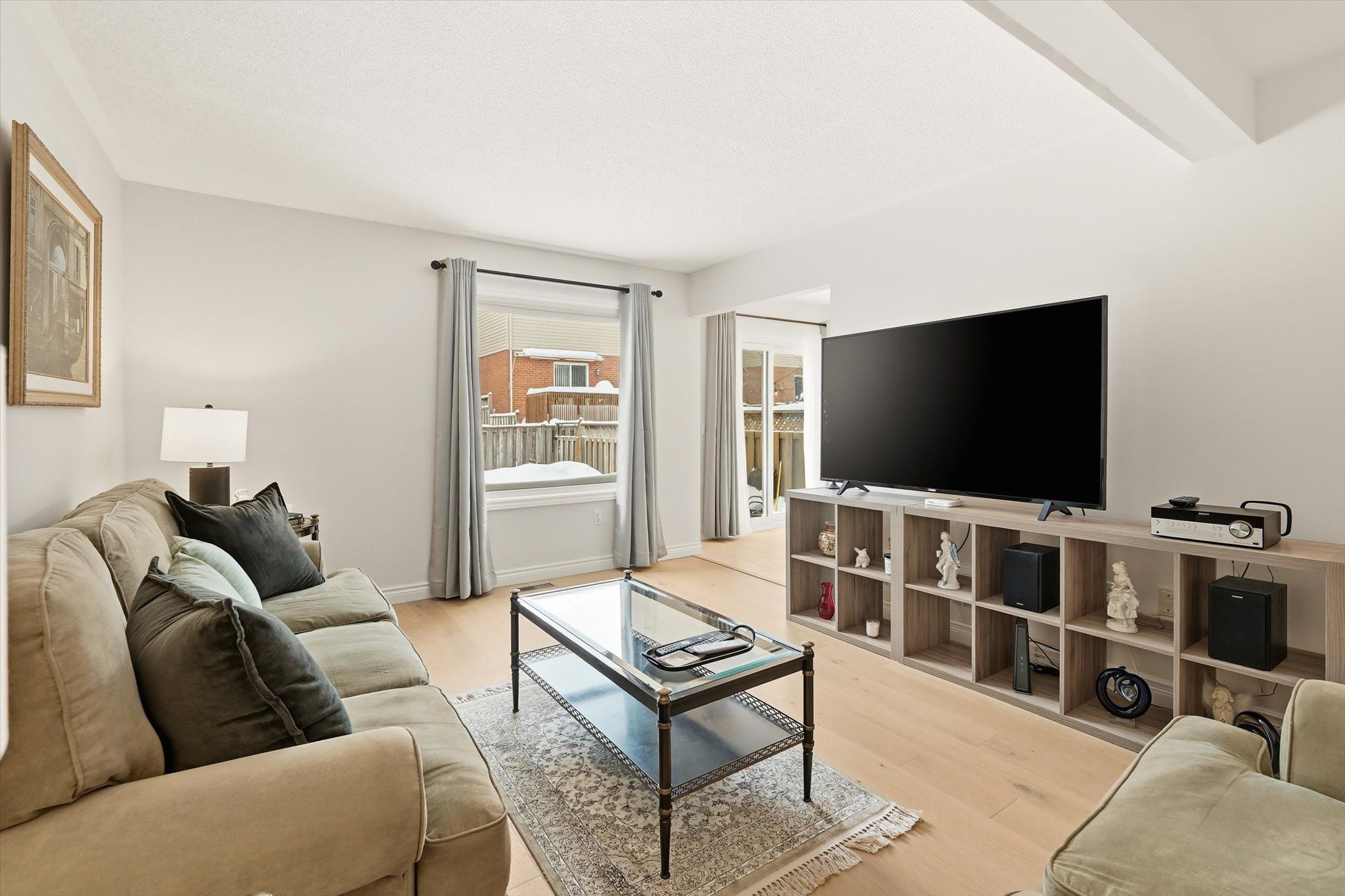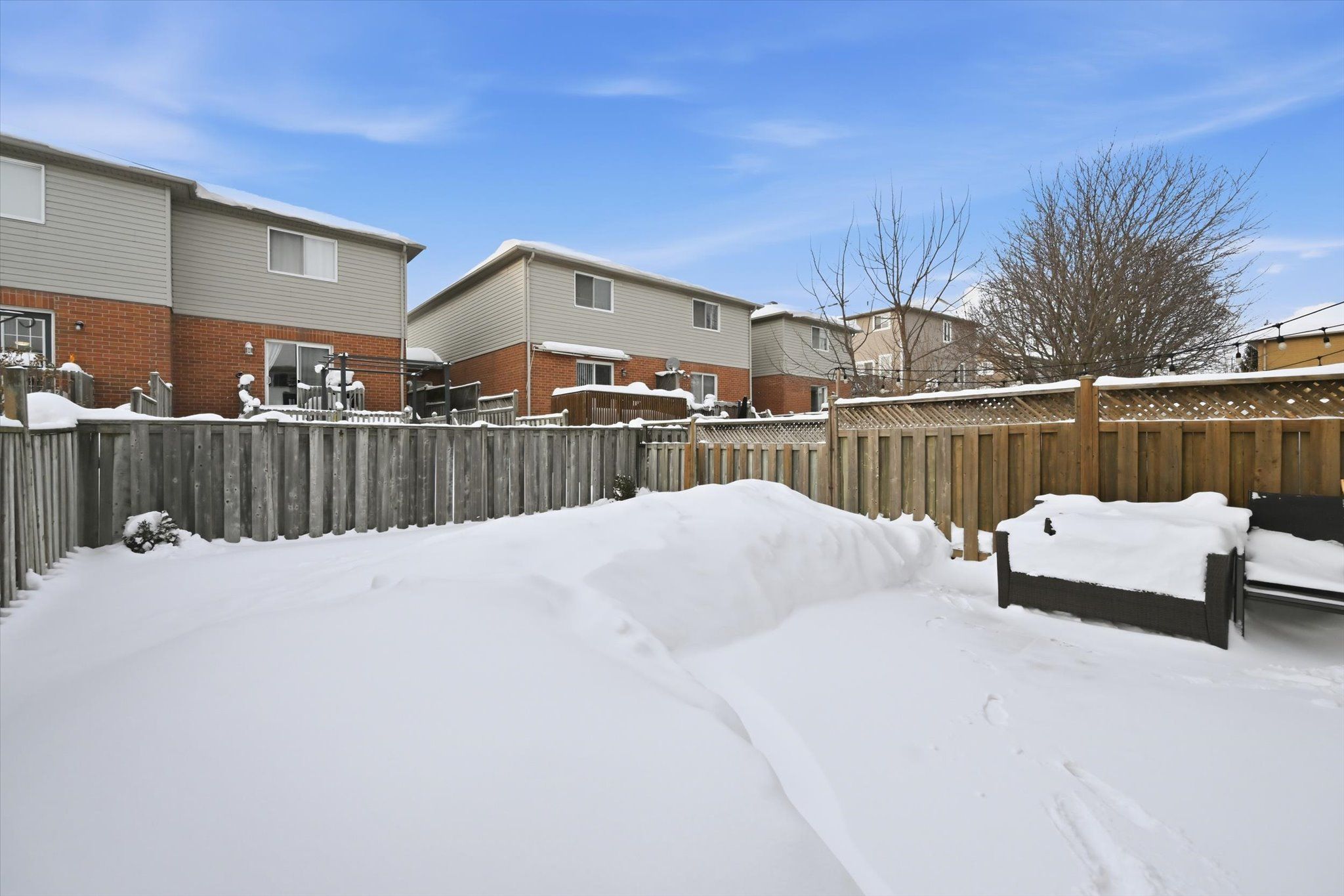 Welcome to this beautiful two-storey, 3+1 freehold townhome with over 2100 sq ft of living space, in this sought-after waterdown west neighbourhood. Step into a welcoming foyer with double closet, convenient inside garage access, and a main-floor powder room designed for everyday ease. A separate dining room flows seamlessly into the generous living room, both showcasing new engineered hardwood flooring and creating a warm and inviting space. The refreshed eat-in kitchen is equipped with a new fridge and stove and features a sliding-door walkout to the patio, ideal for indoor/outdoor living. Upstairs, you will find three bedrooms, two bathrooms, and a linen closet for added storage. The spacious primary bedroom offers an oversized closet and a private two-piece ensuite. The finished lower level adds impressive versatility with a large, cozy recreation room, a three-piece bathroom, and a separate flex room (or fourth bedroom) with closet -perfect for a teenage retreat or guest space. Outside, enjoy a fully fenced backyard with an attractive stone patio, ideal for relaxing or entertaining. Additional updates include a freshly painted interior, new windows in 2023 (excluding basement), and updated lighting and front door. Ideally located, this home invites you to truly enjoy life. Steps from the neighbourhood park and playground, scenic rockcliffe trail walks, and close to everyday shopping. Convenient access to transport links, highway 403, and school bus routes. A perfect balance of comfort, convenience, and lifestyle.
