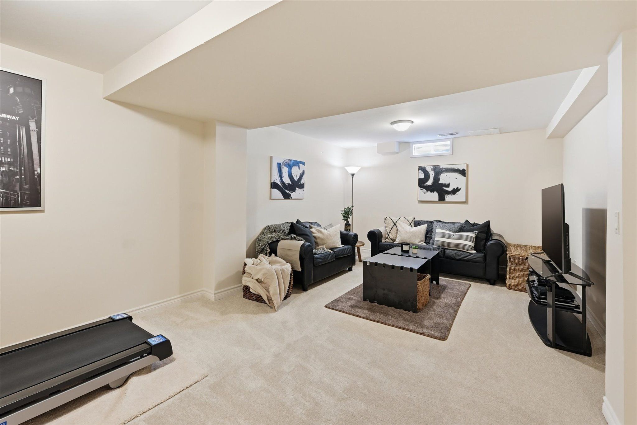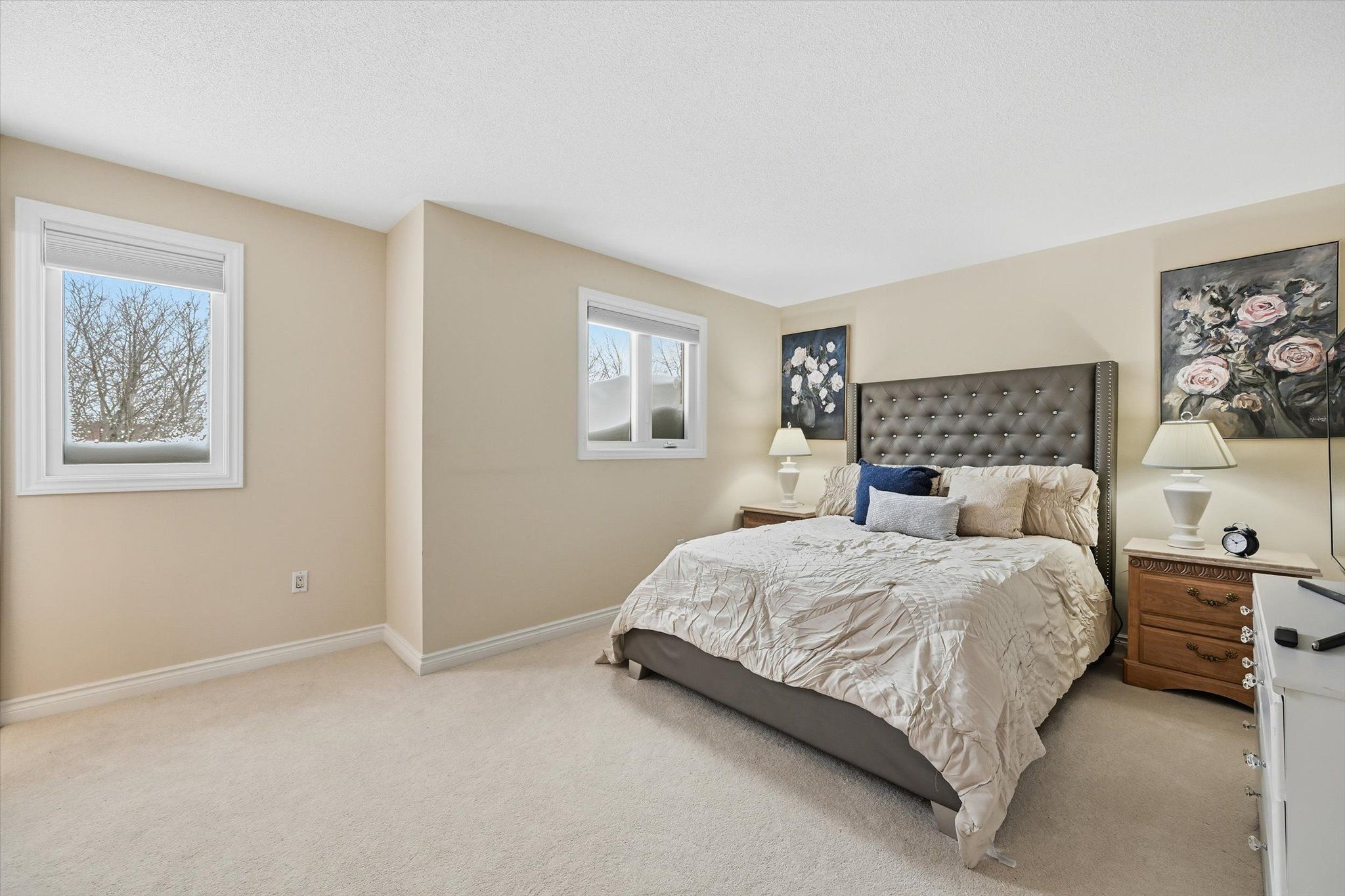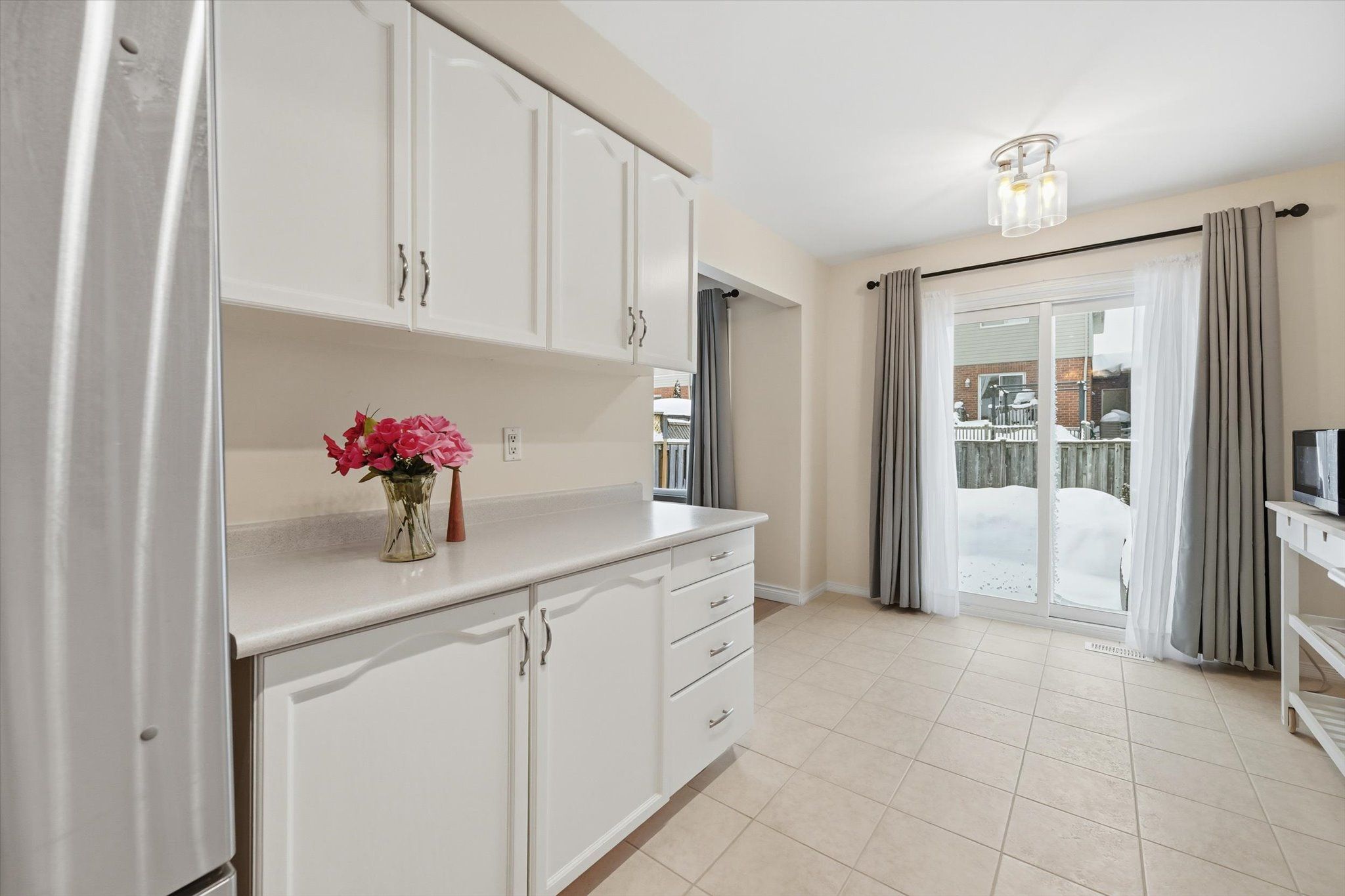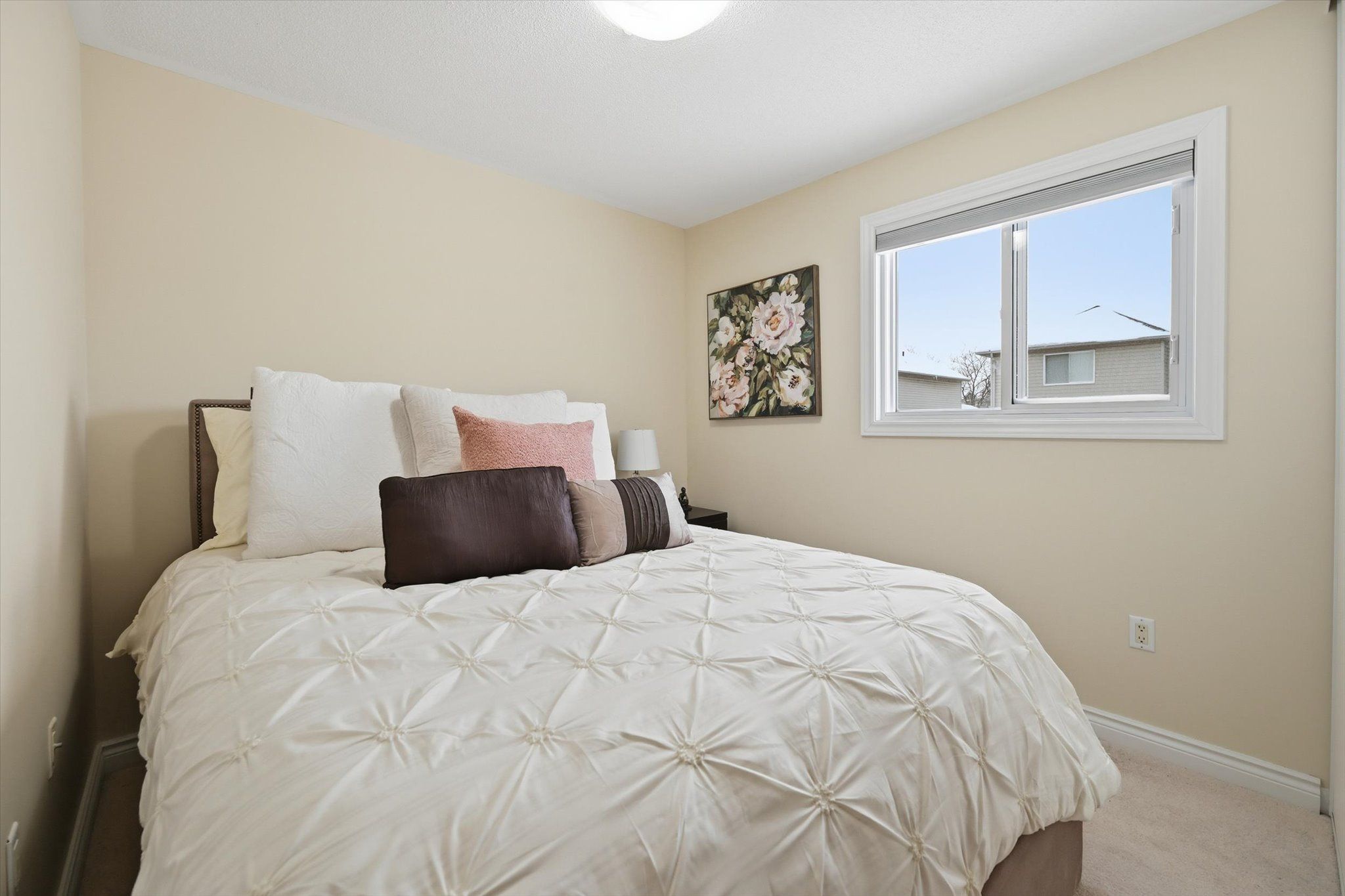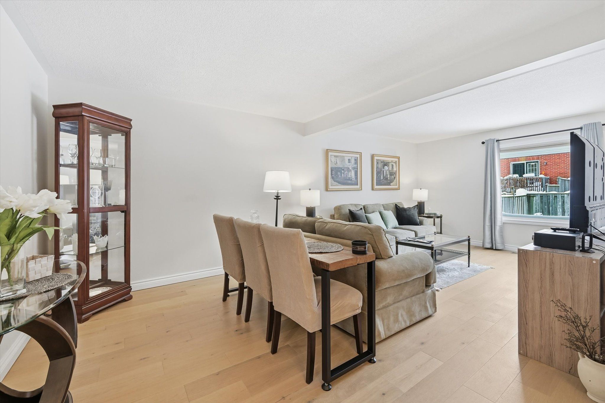 Welcome to this beautiful two-storey, 3+1 freehold townhome with over 2100 sq ft of living space, in this sought-after waterdown west neighbourhood. Step into a welcoming foyer with double closet, convenient inside garage access, and a main-floor powder room designed for everyday ease. A separate dining room flows seamlessly into the generous living room, both showcasing new engineered hardwood flooring and creating a warm and inviting space. The refreshed eat-in kitchen is equipped with a new fridge and stove and features a sliding-door walkout to the patio, ideal for indoor/outdoor living. Upstairs, you will find three bedrooms, two bathrooms, and a linen closet for added storage. The spacious primary bedroom offers an oversized closet and a private two-piece ensuite. The finished lower level adds impressive versatility with a large, cozy recreation room, a three-piece bathroom, and a separate flex room (or fourth bedroom) with closet -perfect for a teenage retreat or guest space. Outside, enjoy a fully fenced backyard with an attractive stone patio, ideal for relaxing or entertaining. Additional updates include a freshly painted interior, new windows in 2023 (excluding basement), and updated lighting and front door. Ideally located, this home invites you to truly enjoy life. Steps from the neighbourhood park and playground, scenic rockcliffe trail walks, and close to everyday shopping. Convenient access to transport links, highway 403, and school bus routes. A perfect balance of comfort, convenience, and lifestyle.