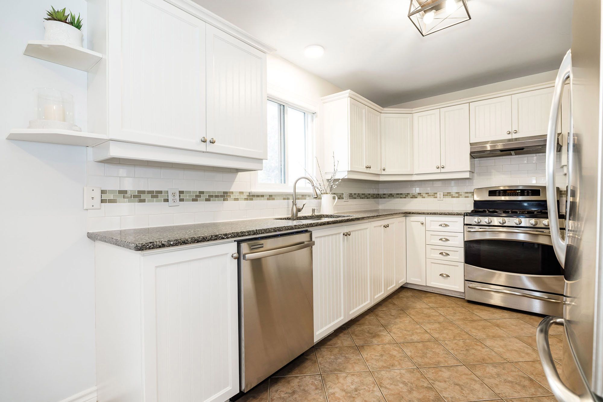 • Bright kitchen with stainless steel appliances and direct yard access.