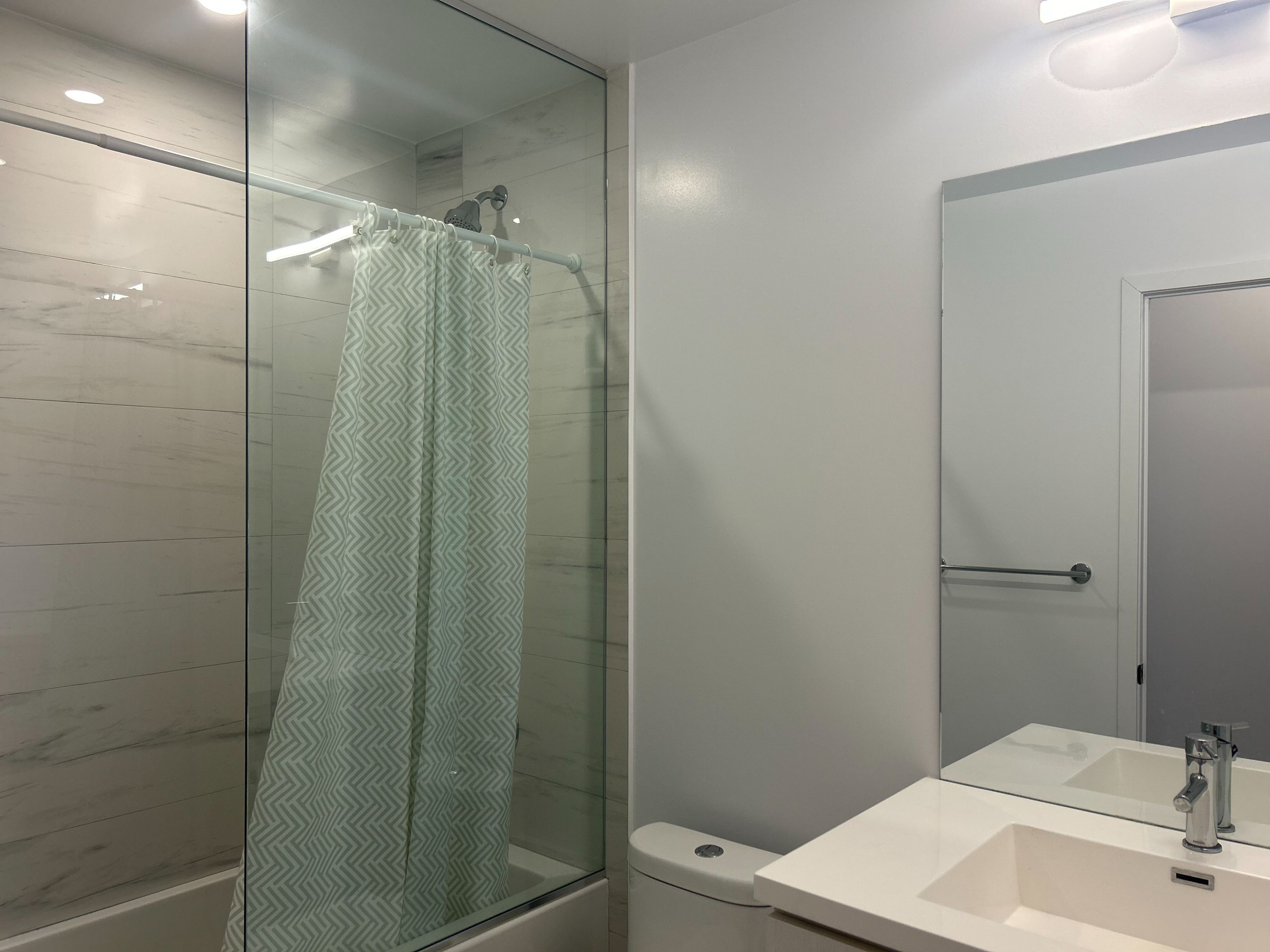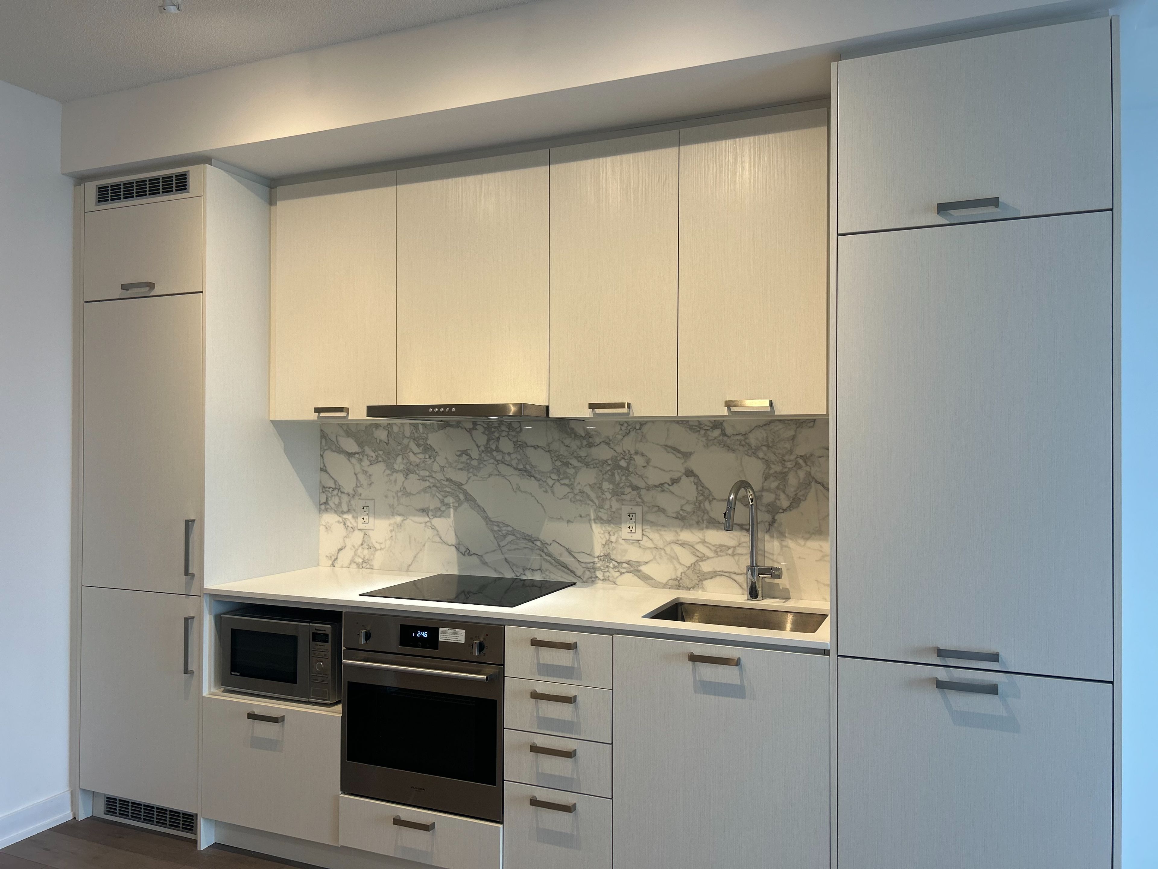 Bright 2 bed & 2 bath condo at mobilio condos available for lease. Clean and well maintained open concept unit with south views from the balcony. Modern kitchen features quartz countertop and backsplash with s/s appliances. Two full baths with glass panels. Laminate flooring throughout all living spaces. Building amenities include theatre, fitness centre, lounges , party room , terrace with bbq area , and more. Great for public transit (viva/ ttc station / go station ) & commuting (hwy 7 , 400 , and 407) . 1 parking and 1 locker included.