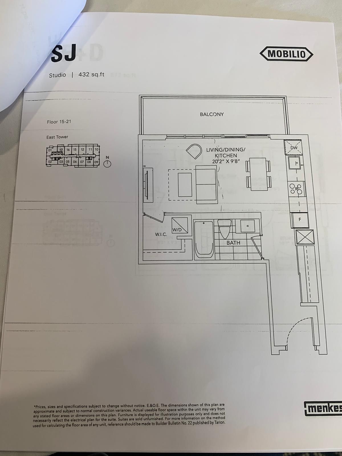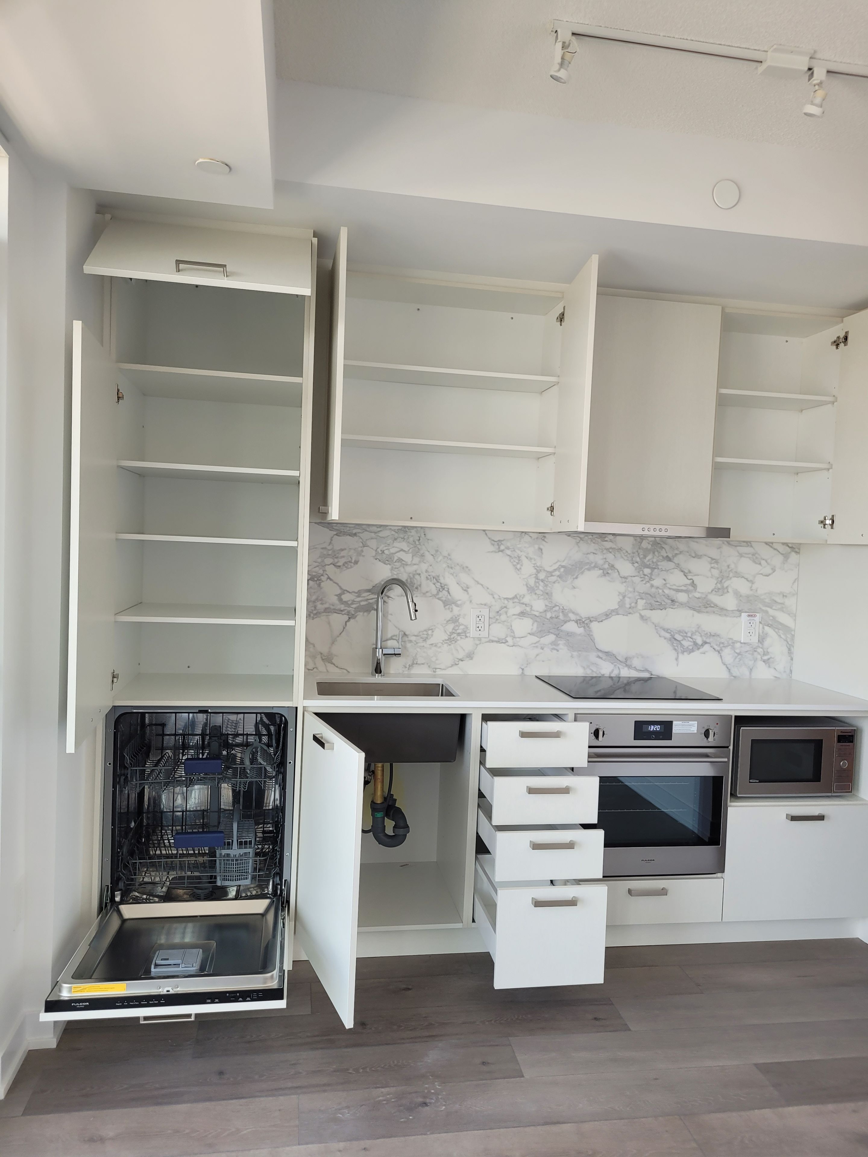 Newer 432 sg ft studio apartment in mobilio east tower by menkes. Modern kitchen, engineered floor, built in appliances, big balcony, and lots of storage space and closet. Excellent location with access to ttc subway, yrt, viva. Easy access to highway 400 and 407. Close to york university, walmart, ikea, restaurants etc. Built in fridge, dishwasher, stove, microwave, front loading washer-dryer.