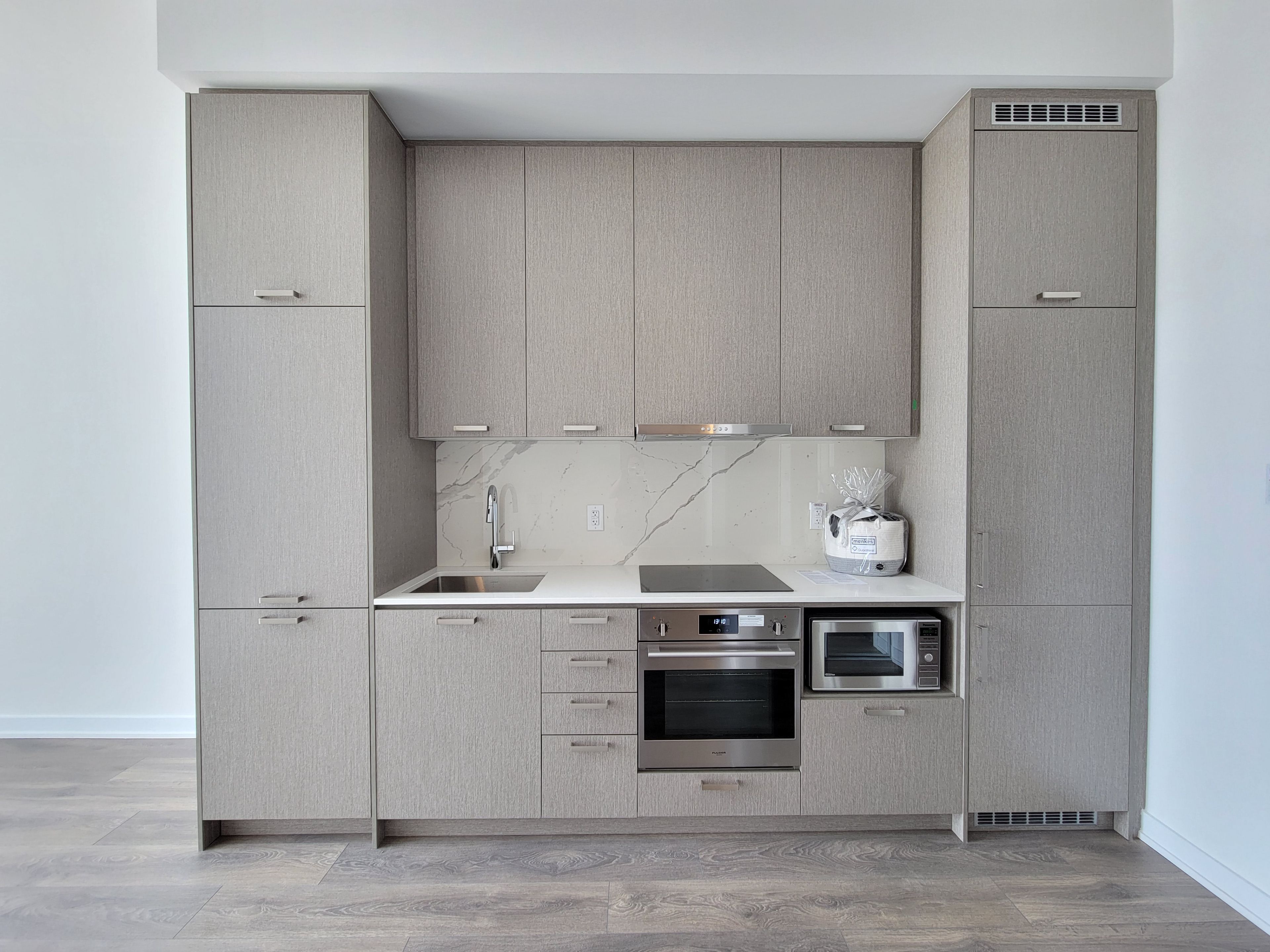 One bedroom + den unit at mobilio east tower condo developed by menkes. Functional layout design. Large bedroom w/closet & large window. Large size den in a separate area can be used for a second bedroom or office. Model design kitchen w/luxury b/i appliances & cabinet w/lots of storages. Excellent location close to anywhere at vmc, viva, subway, york university, seneca college, ikea, restaurants, cinema & much more. One parking included.