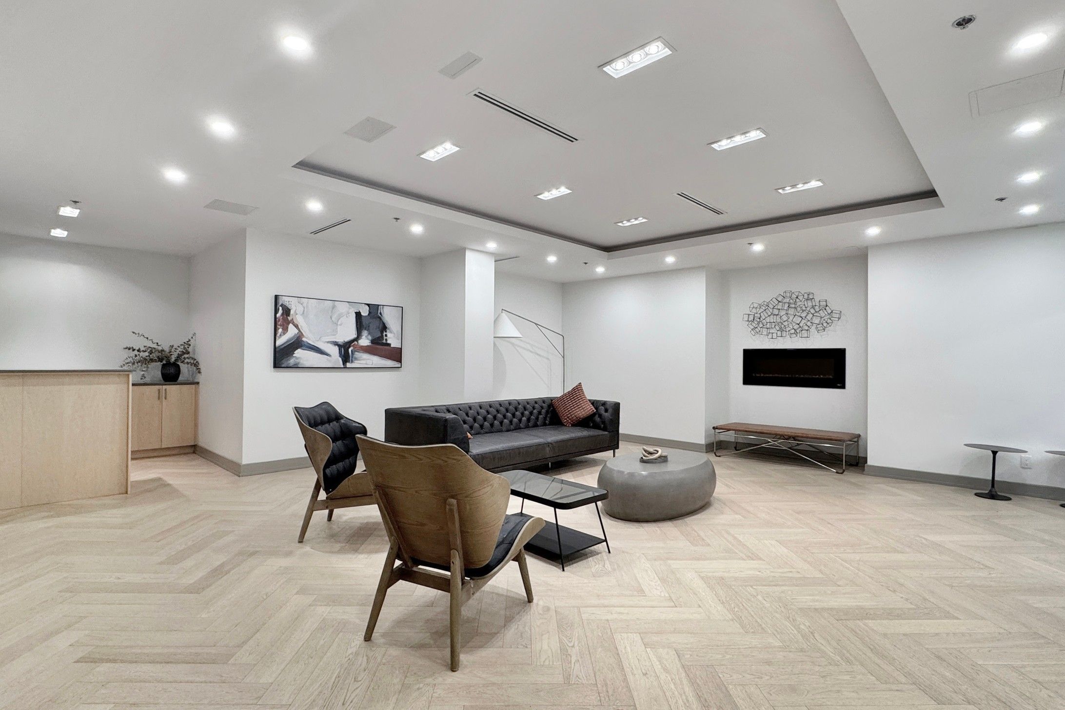 • Floor-to-ceiling windows provide abundant natural light throughout.