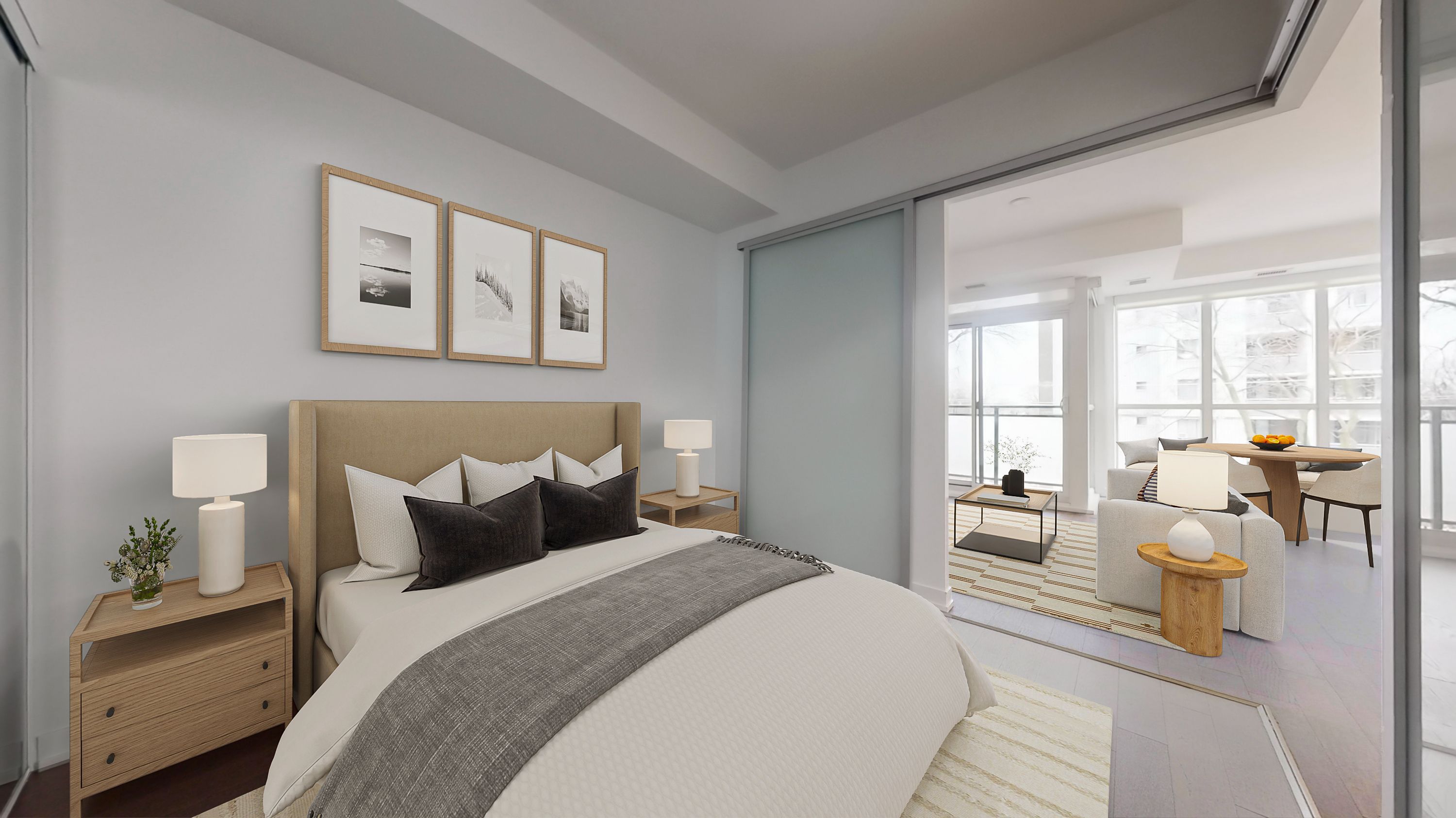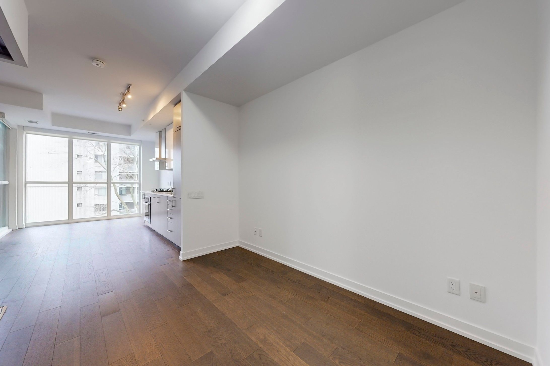 Bright, private, and vacant! Move in immediately to this thoughtfully designed 1 bedroom plus den offering a rare clear, open view in the heart of roncesvalles village. Floor-to-ceiling windows flood the space with natural light, while the open-concept layout is anchored by a generous den alcove-ideally suited for a built-in desk and shelving, creating a dedicated and highly functional home office. Start your day with a quiet cup of coffee, watching the neighbourhood come to life from the privacy of your own home without the close proximity of facing windows. Steps to roncesvalles' cafés, boutiques, and dining, with high park close by and easy access to ttc streetcar and subway lines. Includes one parking space, one locker, and secured bike storage. Bring your favourite pieces, settle in, and make this place your own. Welcome home!